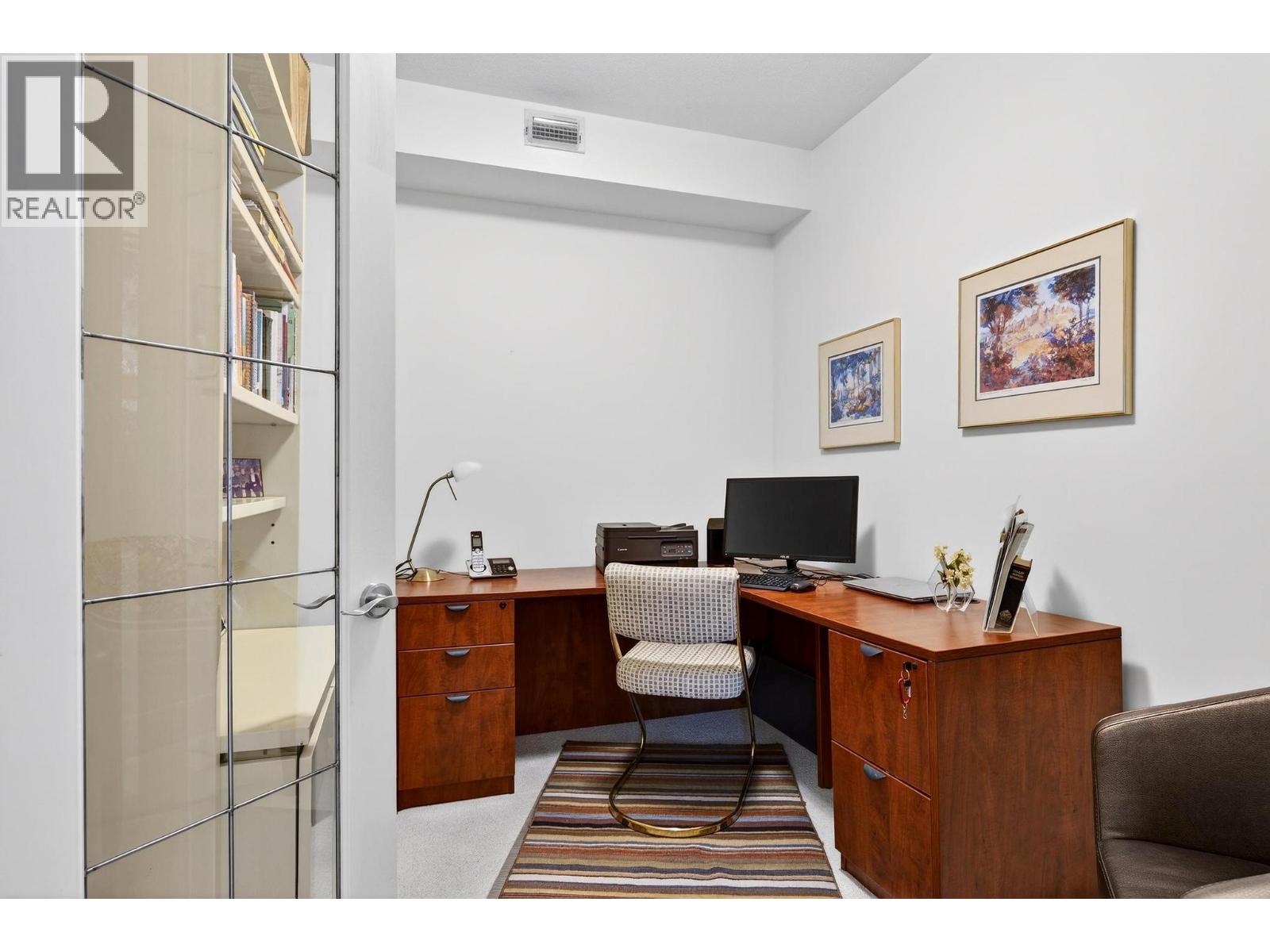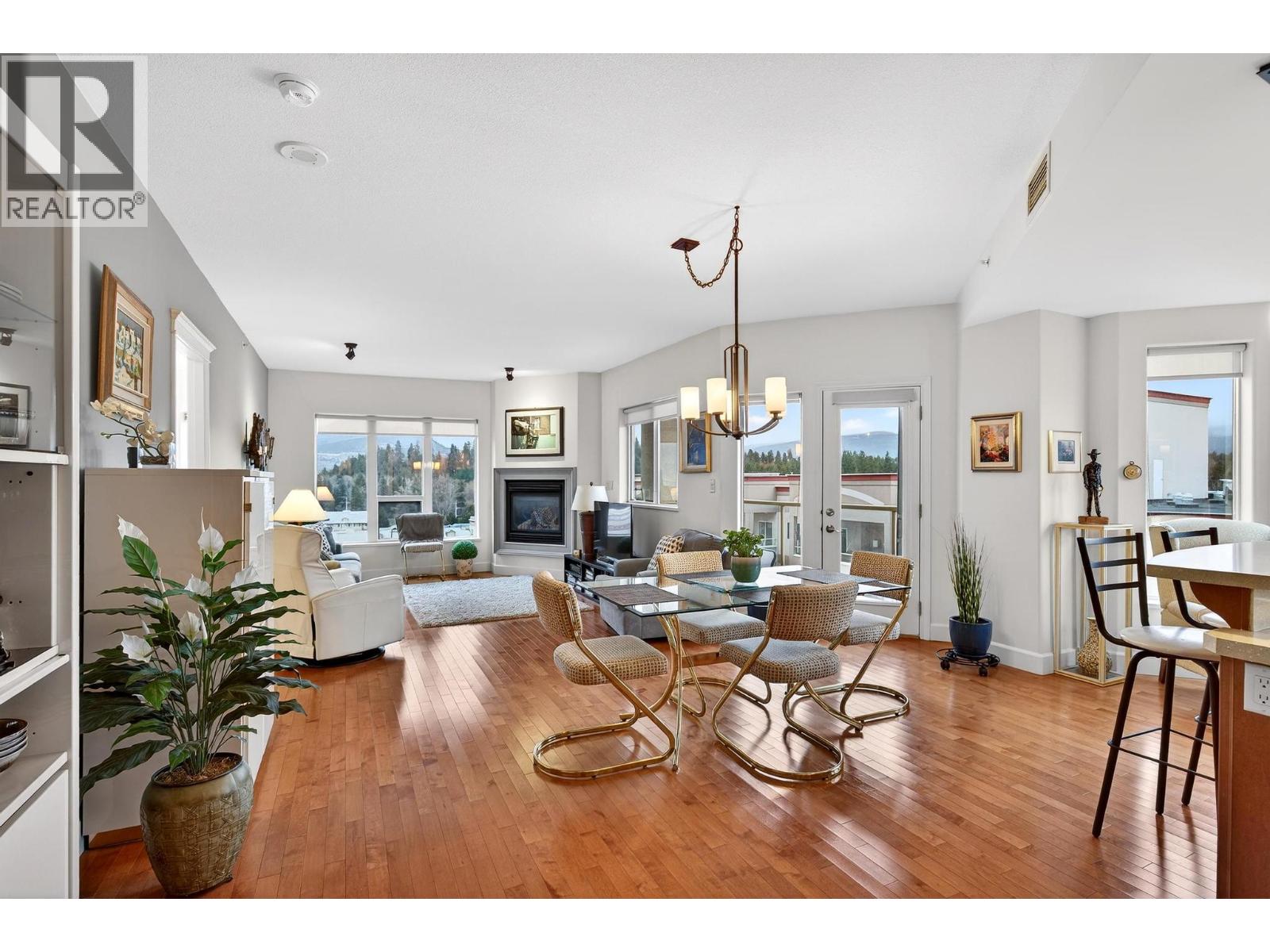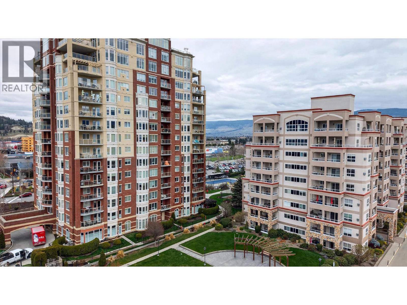 Elevated above it all, this exceptional corner residence at Park Place offers a level of space, light, and views that is rarely found in Kelowna condo living. Perched on the 10th floor south east corner of Park Place, this 1,335 sq ft 2 bed 2 bath plus den suite captures sweeping lake and valley views through walls of windows that flood the home with natural light, while staying cool and comfortable through Kelowna’s long summers with central heating and cooling throughout. 2 side by side underground parking stalls and 3 oversized storage lockers, including one conveniently located on the same floor. Inside, the open concept layout is finished with maple hardwood, a granite island, stainless steel appliances, upgraded lighting, and a gas fireplace that anchors the living space. The spacious primary bedroom features a walk in closet and a well appointed ensuite with a double vanity and soaker tub, offering a comfortable retreat at the end of the day. Park Place elevates the lifestyle with resort style amenities including a pool, hot tub, fitness centre, theatre room, library, pool table, woodworking shop, tennis court, car wash, and guest suite, all within a solid concrete and steel building. The location completes the package. Steps to Costco, a short walk to Mission Creek Greenway, minutes to Orchard Park Shopping Centre, and a quick drive to downtown Kelowna’s beaches, restaurants, and cultural district. (id:62999)