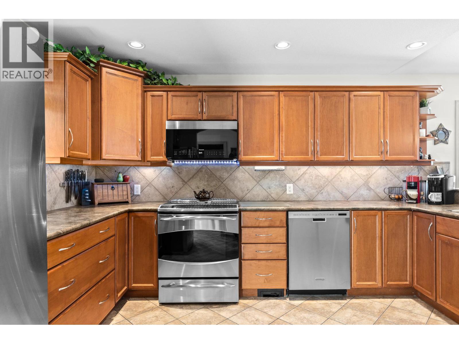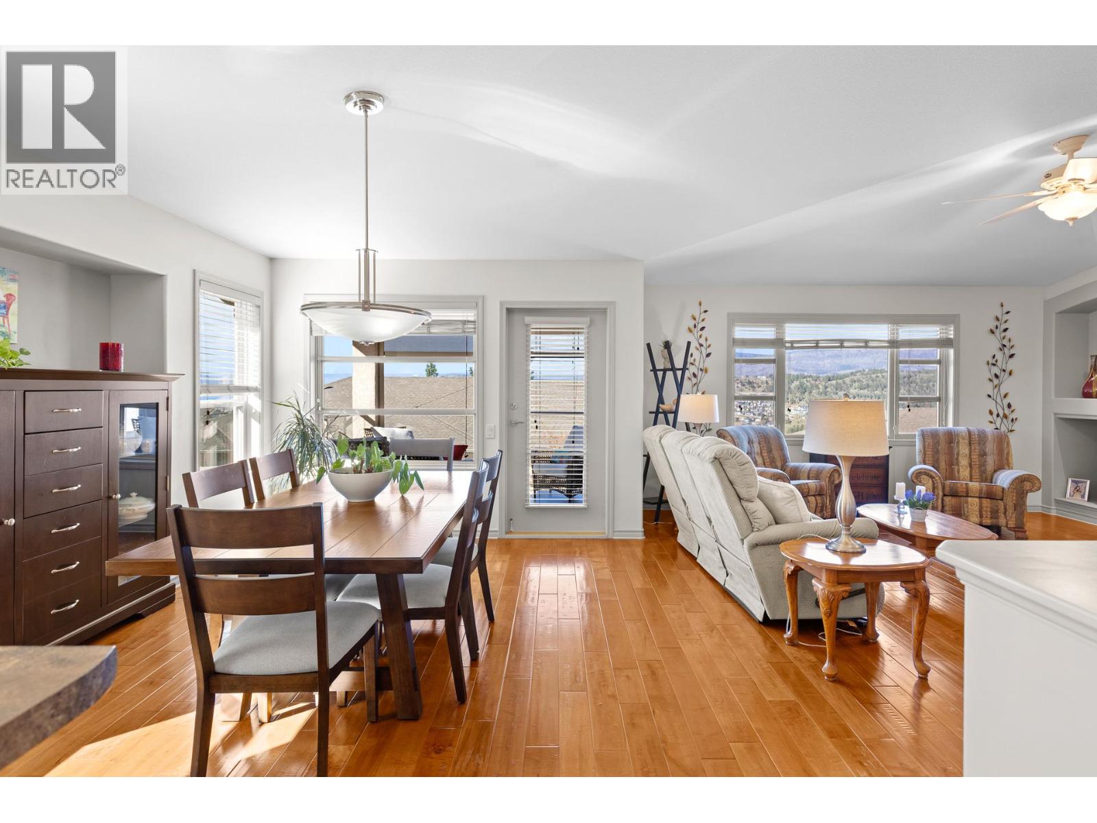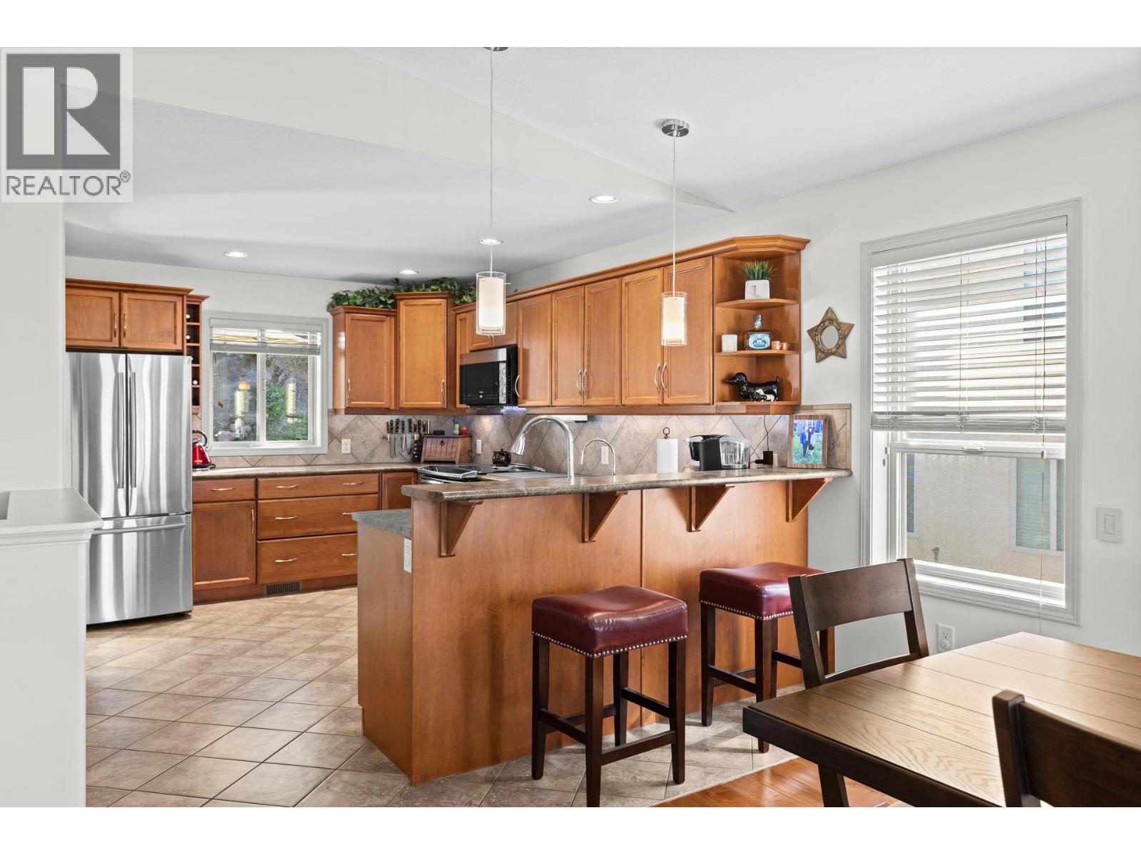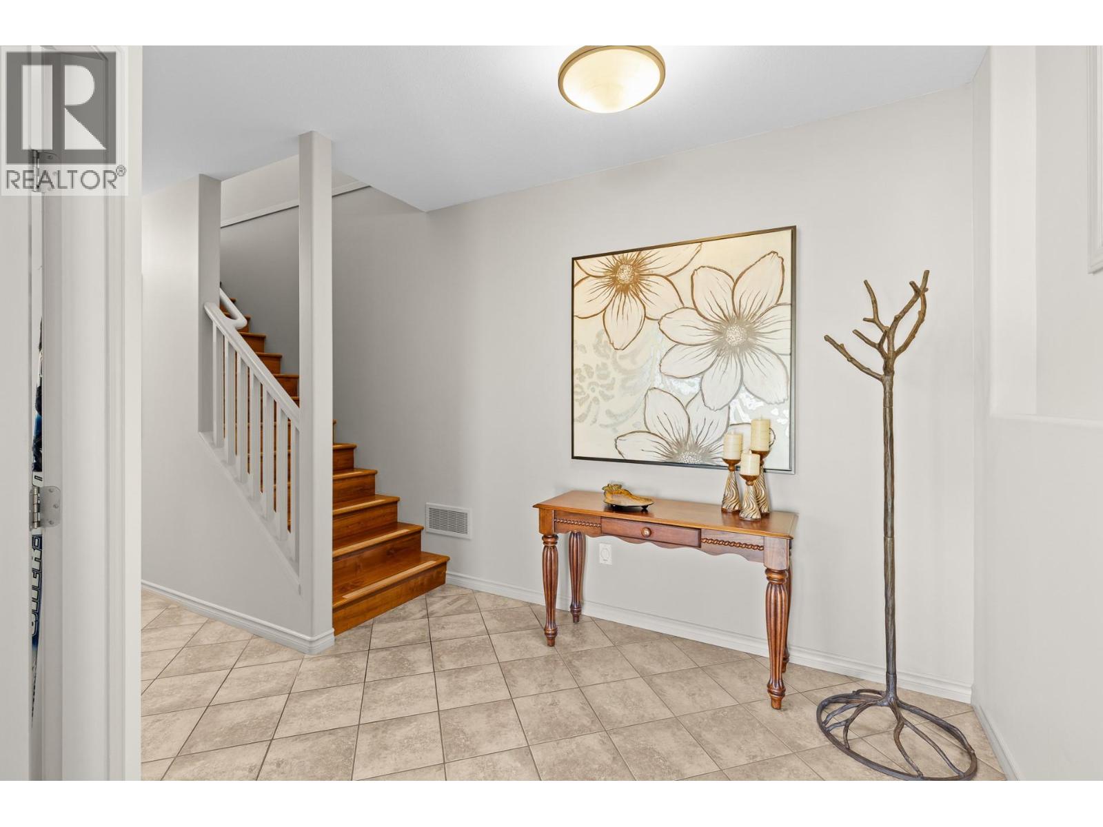 This beautifully maintained townhome in the sought-after Dilworth Mountain area offers a spacious upper level featuring an open-concept living, dining, and kitchen area with a vaulted ceiling. Step out onto the sundeck from the dining area to enjoy stunning mountain views and a glimpse of the lake. The upper level also includes a primary bedroom with a walk-in closet and a 3-piece ensuite, a second bedroom, a full bath, and a laundry area. The kitchen offers a walk-in pantry and provides access to a stunning private backyard and patio. The ground level has a large double garage, family room, guest bedroom, full bath, and plenty of storage space and workshop. Retractable solar blind on the front deck. The sellers have priced the home competitively for the market with quick possession available. Pet restriction:2 dogs or 1 dog 1 cat, no vicious breed (id:62999)