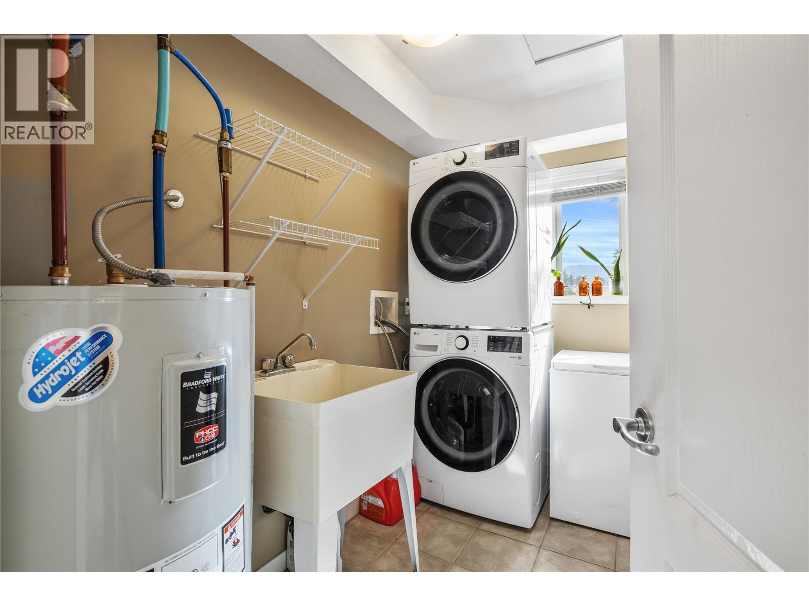 Welcome to Franklyn Central — a TOP FLOOR, corner two-bedroom suite with 2 SIDE BY SIDE PARKING STALLS & storage locker, that pairs affordability with standout practicality in one of Kelowna’s most central pockets. Enter from the foyer into a bright, inviting living room that opens onto a generous balcony accessible from both the living room and the primary bedroom — a calm spot for morning coffee overlooking peaceful green space. The kitchen is a pleasure to cook in, fitted with stainless steel appliances, shaker cabinetry and a smart layout that makes meal prep easy, sociable and enjoyable. The primary suite offers a large walk-in closet, and en suite. Practical living is elevated by a well-designed laundry/utility mudroom complete with a utility sink, stacked washer/dryer— an ideal workspace for laundry and outdoor gear. Corner exposure and top-floor placement deliver extra natural light, added privacy and a quieter outlook. The building welcomes residents of all ages, and 1 pet permitted with restrictions. Steps to Ben Lee Park, neighbourhood shopping, transit and everyday conveniences, all comfortably within walking distance make this budget-friendly unit perfect for buyers who prize effortless, walkable living, while prioritizing top-floor corner privacy and the tangible advantage of two parking stalls. (id:62999)