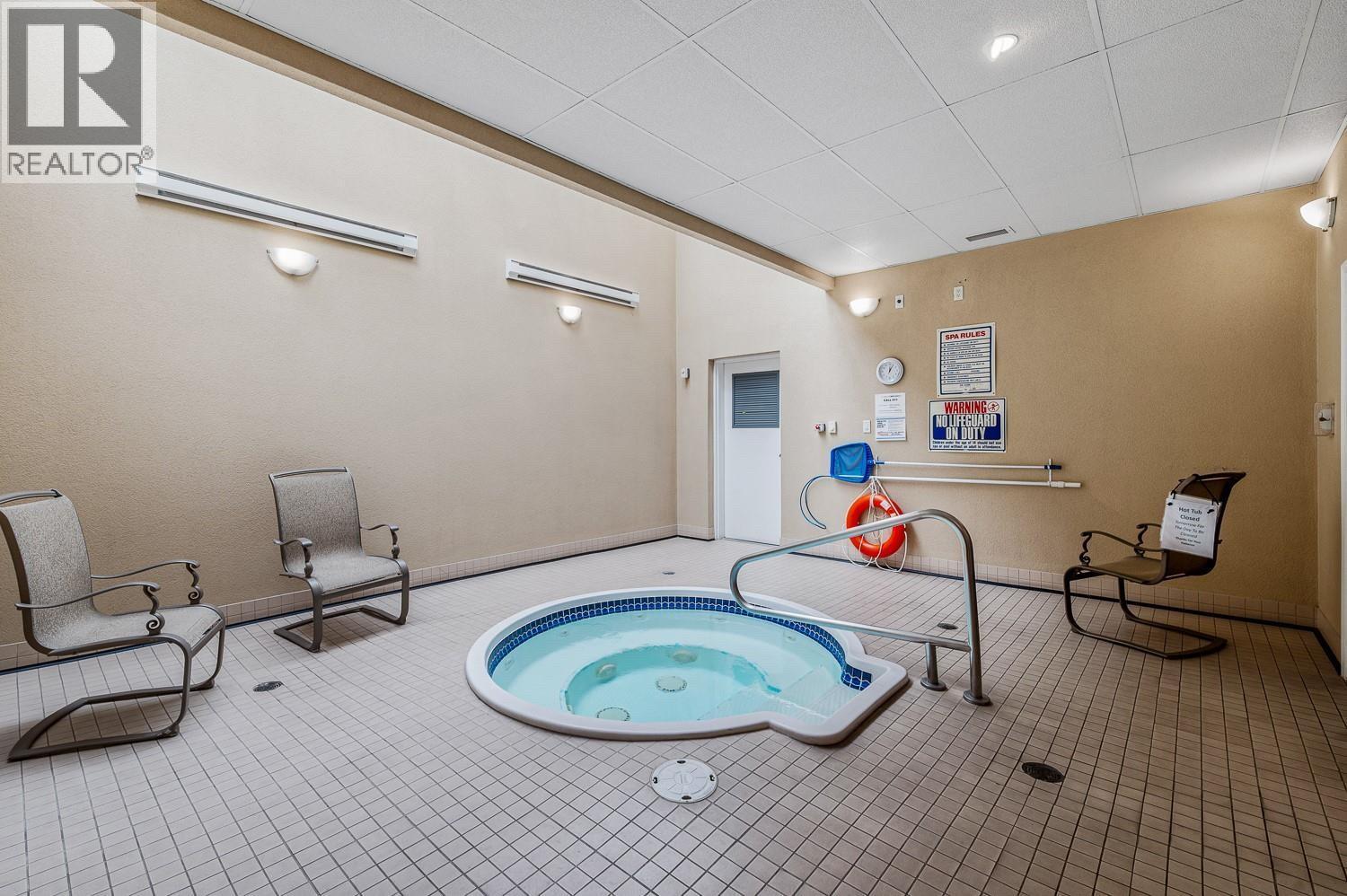 Spacious and contemporary 2 bed + den, 2 bath condo at Mission Creek Towers! Bedrooms strategically placed for privacy and an open kitchen with shaker-style cabinets, stainless steel appliances, ample storage, and a breakfast counter flowing into the dining area. Large windows fill the space with natural light, while a corner gas fireplace adds cozy charm. A convenient laundry room with side-by-side washer and dryer completes the home. Relax on the covered deck overlooking Mission Creek Park. Concrete construction ensures quiet, durable living. Enjoy amenities including a heated indoor pool, hot tub, and a kitchen-equipped event room. Includes 1 secure underground parking space and a storage unit on your floor. Forced air heating and A/C keep you comfortable year-round. Steps from hiking trails, parks, shopping, Costco, and the Farmers Market. One pet allowed, up to 14""! THIS ONE IS AVAILABLE AND EASY TO SHOW! (id:62999)
