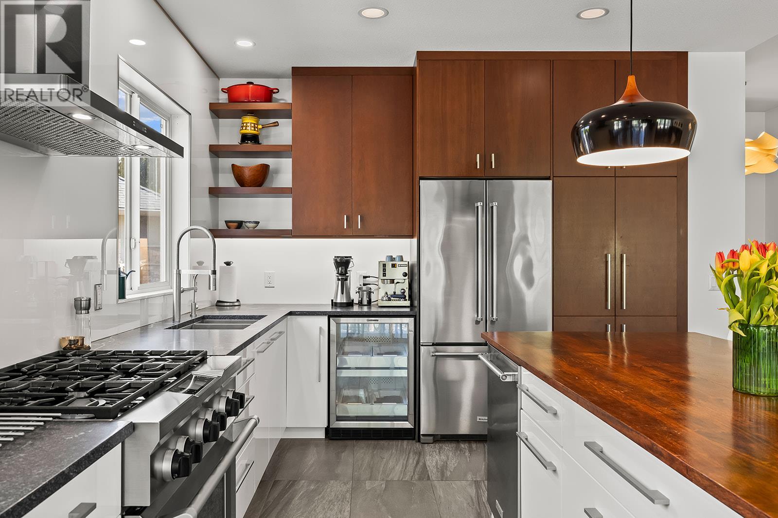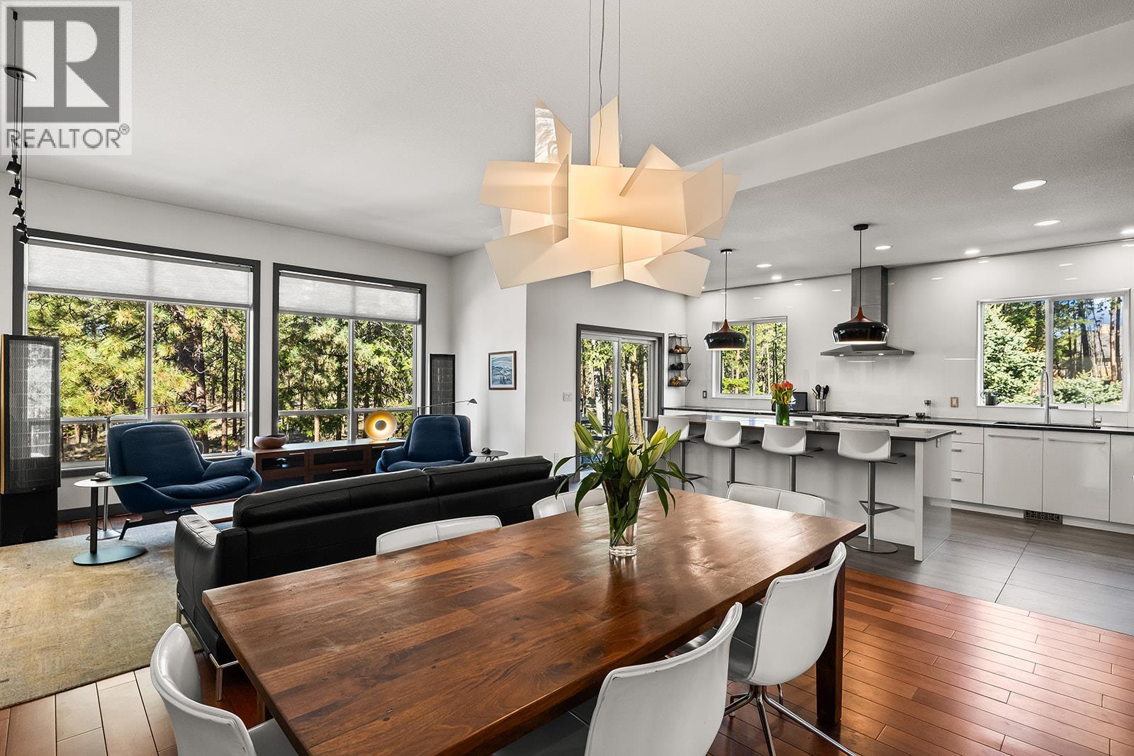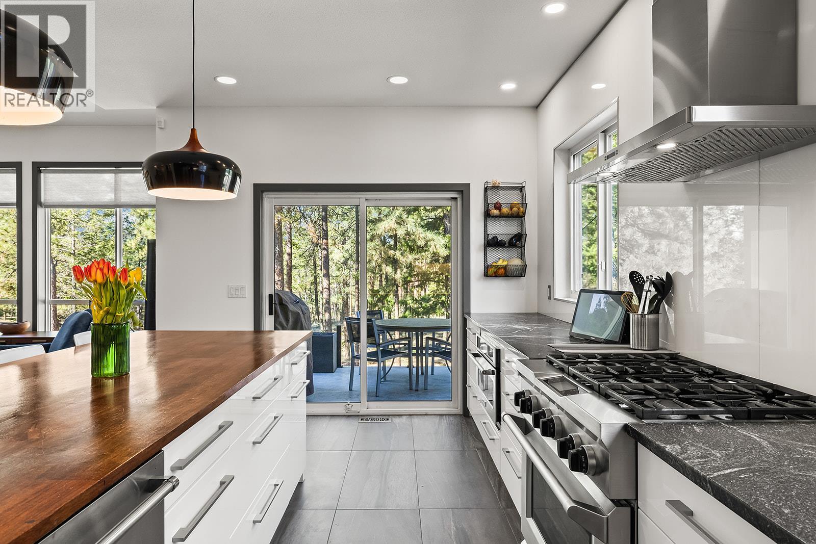 Nestled in a tranquil setting in the heart of Gallaghers Canyon where nature is truly at your doorstep, this beautifully updated home features Japanese cherry flooring, modern lighting, and spa-inspired bathrooms. The main floor boasts a bright open-concept layout with oversized windows. A linear gas fireplace adds warmth and character to the spacious living area. The designer kitchen, with oversized island and high-end stainless appliances including a steam oven and gas cooktop, is perfect for the home chef. There are 2 bedrooms including the lovely primary suite with walk-in closet and 3-piece ensuite, plus a stylish 4-piece main bath on this level, as well as a thoughtfully designed mudroom with laundry, hanging space, storage, and direct garage access. The lower level offers a generous rec room with gas fireplace, summer kitchen, and access into the incredible outdoor living space. Two additional bedrooms, a 3-piece bath with sauna, separate toilet/shower room, and ample storage space. The expansive backyard provides the perfect space to relax and enjoy the Okanagan lifestyle. Extensive network of nature trails right out your back gate connecting to KLO Regional Park and the Mission Park Greenway. Gallaghers Canyon offers unparalleled resort-style lifestyle with access to two championship golf courses, tennis courts, indoor pool, fitness centre, hot tub, games room, art studios, and miles of scenic walking trails. All of this just 15 minutes from downtown Kelowna. (id:62999)