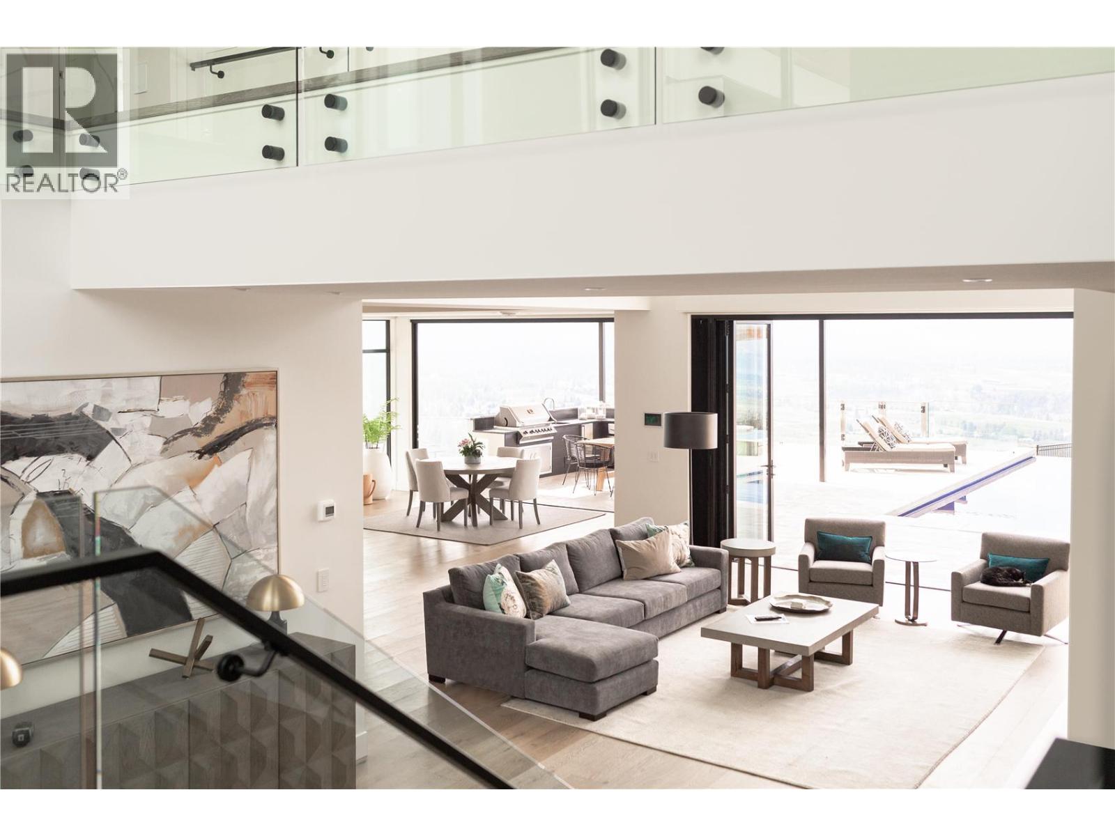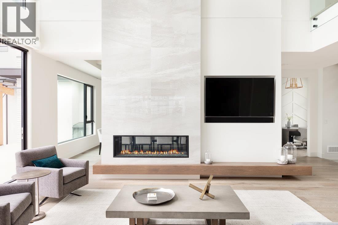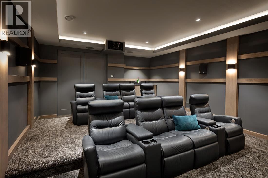 Perched gracefully atop an expansive double lot, this extraordinary seven-bedroom, six-bathroom estate captures breathtaking 270-degree vistas of shimmering lake waters, twinkling city lights, and rolling hills beyond. From the moment you enter, soaring ceilings and walls of windows bathe the home in natural light, creating an atmosphere of elegance and warmth. The open-concept main level is designed for both grand entertaining and intimate living, anchored by a spectacular great room that flows seamlessly into a chef-inspired gourmet kitchen complete with a fully appointed butler’s pantry. A refined dining room, enhanced by a striking two-way fireplace and custom built-ins, sets the stage for unforgettable gatherings. Outdoors, a private resort awaits. An infinity-edge pool and hot tub overlook the sweeping views, surrounded by generous lounging areas and a covered outdoor kitchen—perfect for hosting or unwinding in total serenity. Upstairs, three spacious bedrooms include a lavish primary retreat featuring its own private patio and dedicated laundry, offering both comfort and seclusion. The lower level transforms into the ultimate entertainment haven, with a games area, pool table, expansive lounge, and a fully equipped wet bar ready for any occasion. Additional highlights include a private cinema and a full indoor sports court. Two triple garages provide exceptional space, while the expansive backyard invites endless possibilities. Completing this remarkable property is a beautifully finished legal suite above the garage, offering luxury and flexibility. With unmatched scale, design, and lifestyle amenities, this is a truly irreplaceable residence. (id:62999)