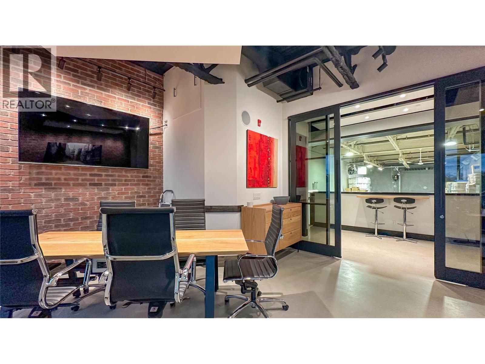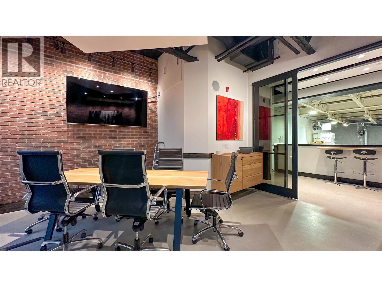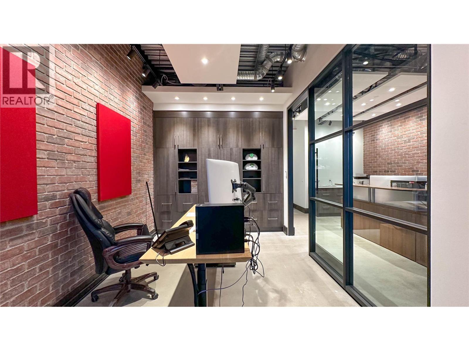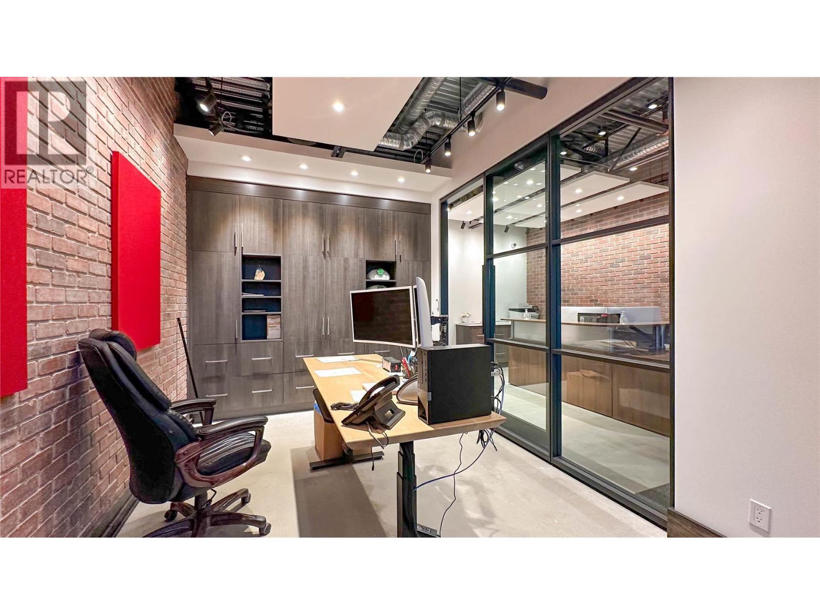 Rare opportunity to lease a beautifully improved 2,032 sq. ft. commercial space in the heart of Downtown Kelowna. Located on highly sought-after Clement Avenue, this two-storey unit offers exceptional street presence with a garage-style storefront entry, prominent street-front signage, and three assigned parking stalls included. Situated within industrial zoning that allows for a wide variety of business and office uses, this is an ideal opportunity for professional offices, creative studios, design firms, tech companies, consulting groups, wellness businesses, showrooms, and many other permitted uses. Fully built-out and move-in ready, spaces of this size and quality in Downtown Kelowna are exceptionally hard to find. The main floor features extensive tenant improvements throughout, including built-in office areas, a stunning glass boardroom, a finished bar area with plumbing, a small kitchen, and two full bathrooms, including one with a shower. The beautifully finished loft creates an impressive second-level workspace or lounge area and adds to the unique character of the space. Designed for both functionality and comfort, the unit is fully soundproofed and serviced by three separate heating and cooling systems, allowing for excellent climate control throughout both levels. The flexible layout offers a combination of private offices, open workspace, meeting areas, and client-facing space, making it suitable for a variety of business operations. (id:62999)