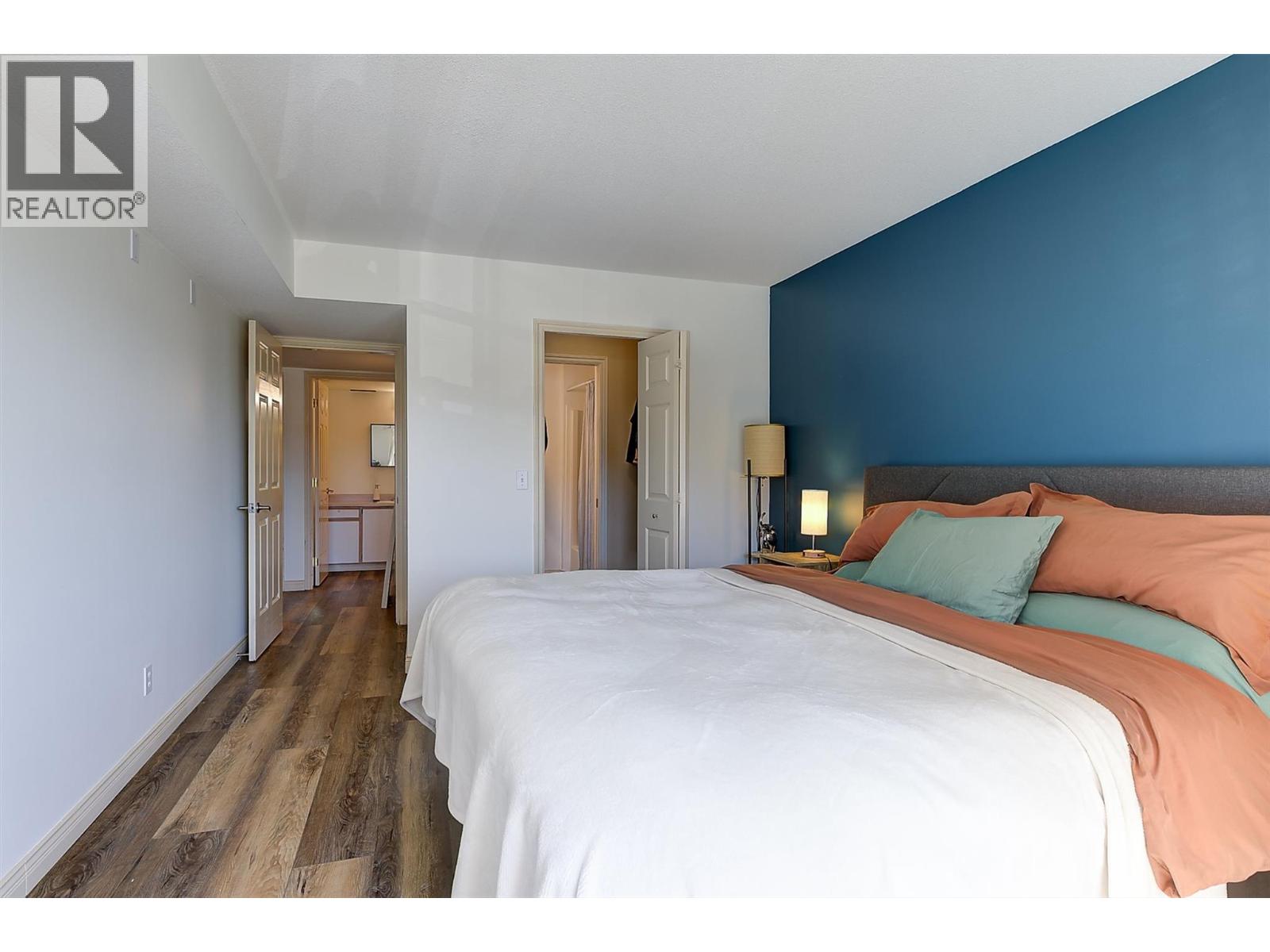 Welcome to this bright and spacious top-floor 2 bed, 2 bath apartment in the heart of desirable North Glenmore; a fantastic family-friendly neighborhood. This 1,148 sq ft home features modern vinyl plank flooring and fresh paint throughout, creating a clean, contemporary feel. Oversized windows flood the living spaces with natural light, making the home warm and inviting year-round. The kitchen stands out with abundant cabinetry and countertop space, STS appliances, and a generous pass-through window that creates a more open-concept feel with the dining and living areas. The generously sized dining and living rooms are perfect for entertaining or relaxing with family. The living room includes a cozy gas fireplace, while the covered patio offers a lovely southwestern exposure; ideal for morning coffee or evening sunsets. Both bedrooms are well-sized, with the primary bedroom featuring a large WIC and a full 4-piece ensuite. Additional conveniences include an in-unit storage room plus extra storage in the underground parking. Large dogs are welcome (breed restricted). Building amenities include a common room and a basic gym. Located in North Glenmore, you’re just an 8-minute drive to UBCO, with bus stops (#6, #18, #19) right outside your door on Glenmore Rd. The area offers excellent shops, restaurants, parks, elementary and middle schools—making this an ideal home for families, students, or professionals seeking comfort and community. Make this beautiful home yours today! (id:62999)