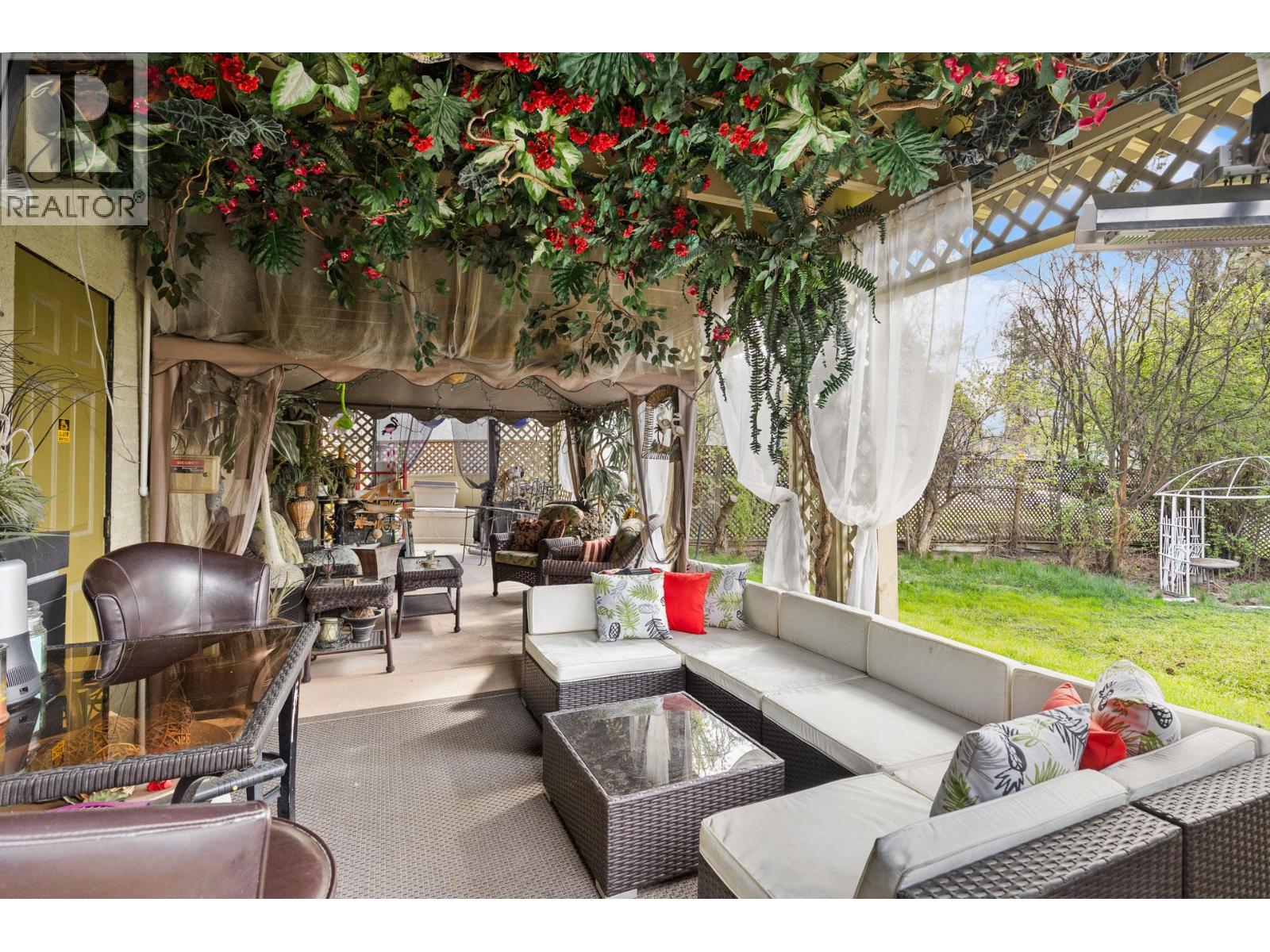 Exceptional 9,975 sq ft corner lot in one of Kelowna’s most sought-after urban areas, offering space, privacy, and versatility. This beautifully updated split-level home is thoughtfully positioned on one portion of the lot, creating a sense of openness with mature landscaping and room to enjoy both indoor and outdoor living, while also allowing for future development or the opportunity to redevelop the entire site. Move-in ready, the home features 3 bedrooms, 3 bathrooms, and a beautifully renovated kitchen with wood cabinetry and high-end appliances. The main level opens to a spacious living and dining area with seamless access to a private patio—ideal for indoor-outdoor living. Upstairs includes three large bedrooms, including a primary suite with walk-in closet and ensuite. The lower level has a cozy family room with a custom stone wood-burning fireplace and access to a covered wraparound patio. A rec room, built-in office, laundry, and storage room complete the basement—perfect for guests, workspace, or relaxing and so much storage space.. Parking is ample with a double attached garage, single garage converted to storage room, and circular driveway for RVs or recreational vehicles. The landscaped yard features mature trees and lush gardens, creating a private outdoor retreat. Zoned MF1, the property also offers future flexibility and long-term potential in a prime central location. (id:62999)