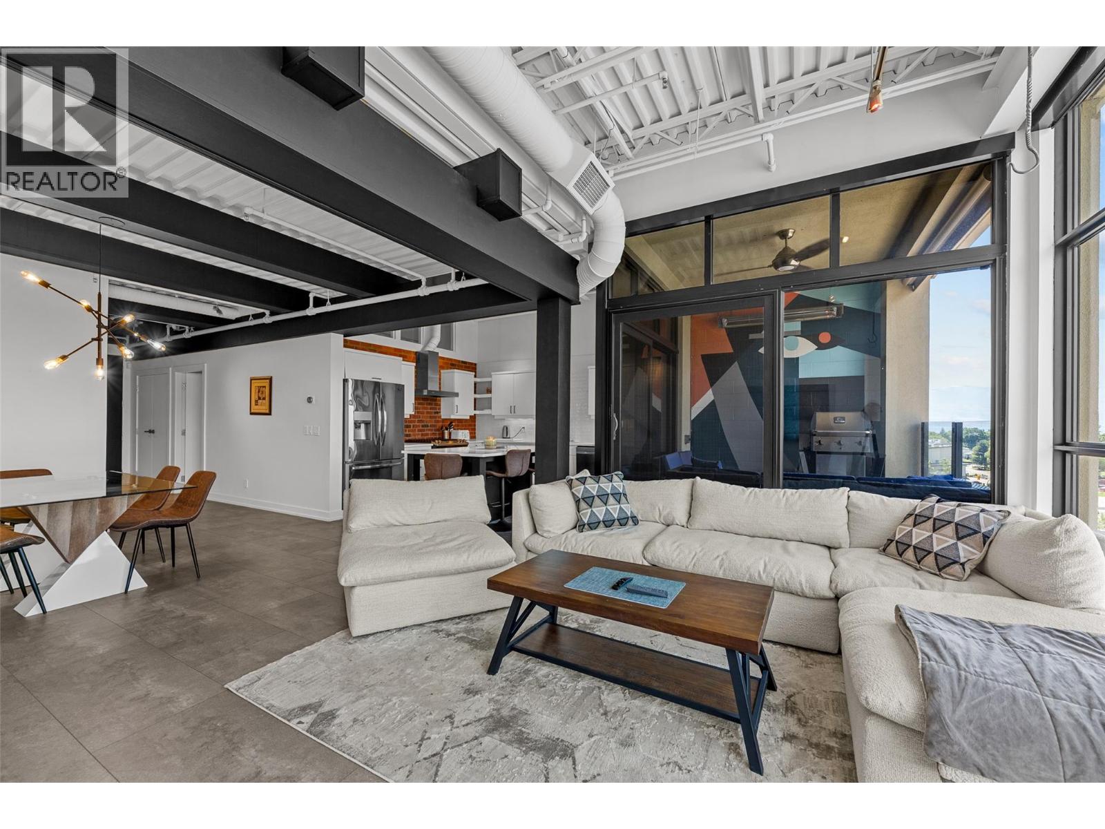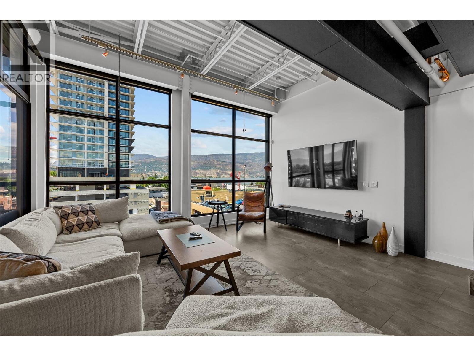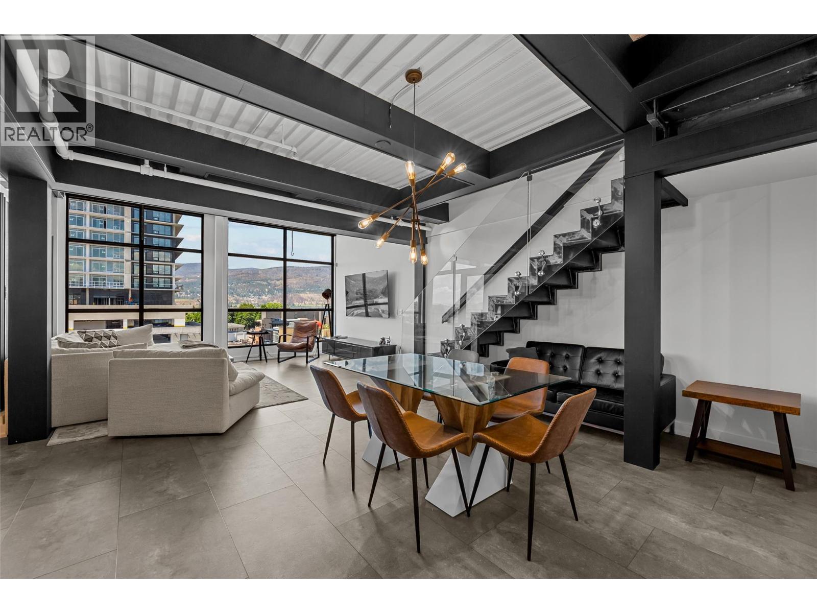 Discover Kelowna's most unique and luxurious condo—a fully renovated, lofted industrial-style masterpiece with unparalleled lake and city views. Perched atop a professional building with just five exclusive residences, this property promises an extraordinary living experience. The main floor boasts an expansive open-concept design featuring soaring high ceilings and dramatic floor-to-ceiling windows that flood the space with natural light. The stunning kitchen, equipped with top-of-the-line appliances opens to a heated, covered patio—perfect for year-round alfresco dining. Ascend to the primary retreat, where you'll be captivated by sweeping lake and city vistas. Every inch of this home has been meticulously updated with new flooring, a modern kitchen, state-of-the-art appliances, fresh paint, and elegant baseboards. This pet- and rental-friendly building offers the convenience of two large indoor parking stall. A property of this caliber must be seen to be truly appreciated. Don’t miss the opportunity to own this exceptional downtown loft and experience its unparalleled luxury and uniqueness firsthand. (id:62999)