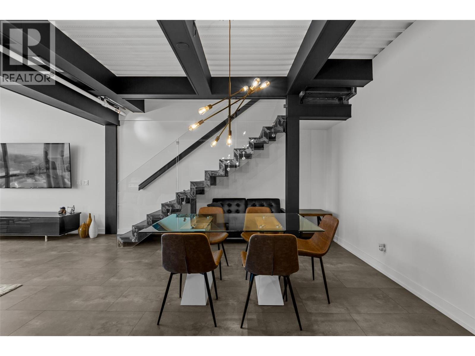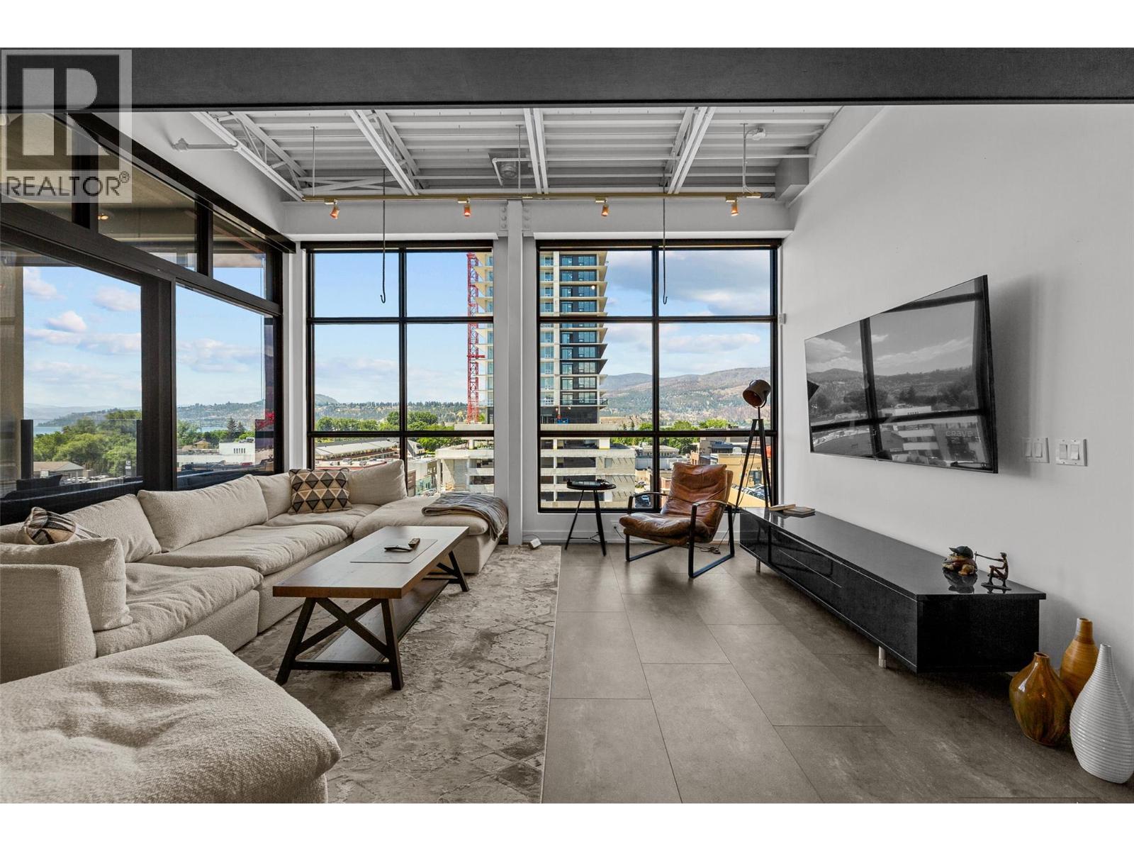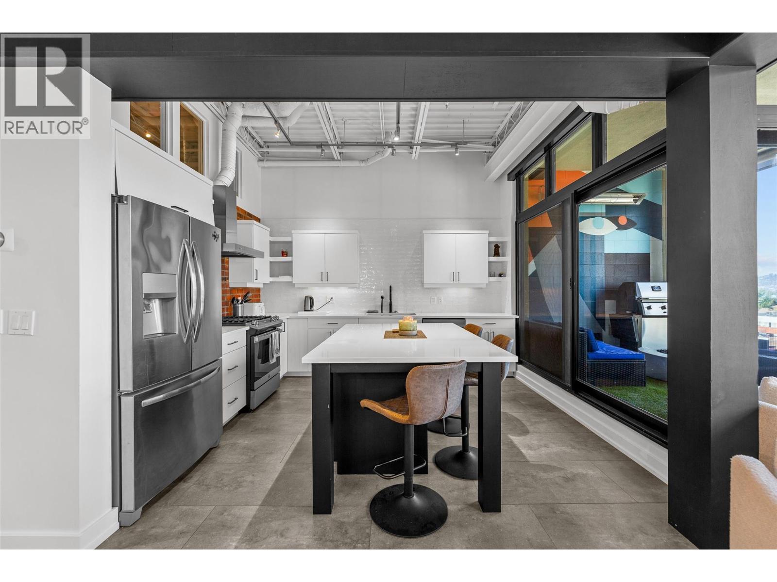 Discover Kelowna's most unique and luxurious condo—a fully renovated, lofted industrial-style masterpiece with unparalleled lake and city views. Perched atop a professional building with just five exclusive residences, this property promises an extraordinary living experience. The main floor boasts an expansive open-concept design featuring soaring high ceilings and dramatic floor-to-ceiling windows that flood the space with natural light. The stunning kitchen, equipped with top-of-the-line appliances opens to a heated, covered patio—perfect for year-round alfresco dining. Ascend to the primary retreat, where you'll be captivated by sweeping lake and city vistas. Every inch of this home has been meticulously updated with new flooring, a modern kitchen, state-of-the-art appliances, fresh paint, and elegant baseboards. This pet- and rental-friendly building offers the convenience of two large indoor parking stall. A property of this caliber must be seen to be truly appreciated. Don’t miss the opportunity to own this exceptional downtown loft and experience its unparalleled luxury and uniqueness firsthand. (id:62999)