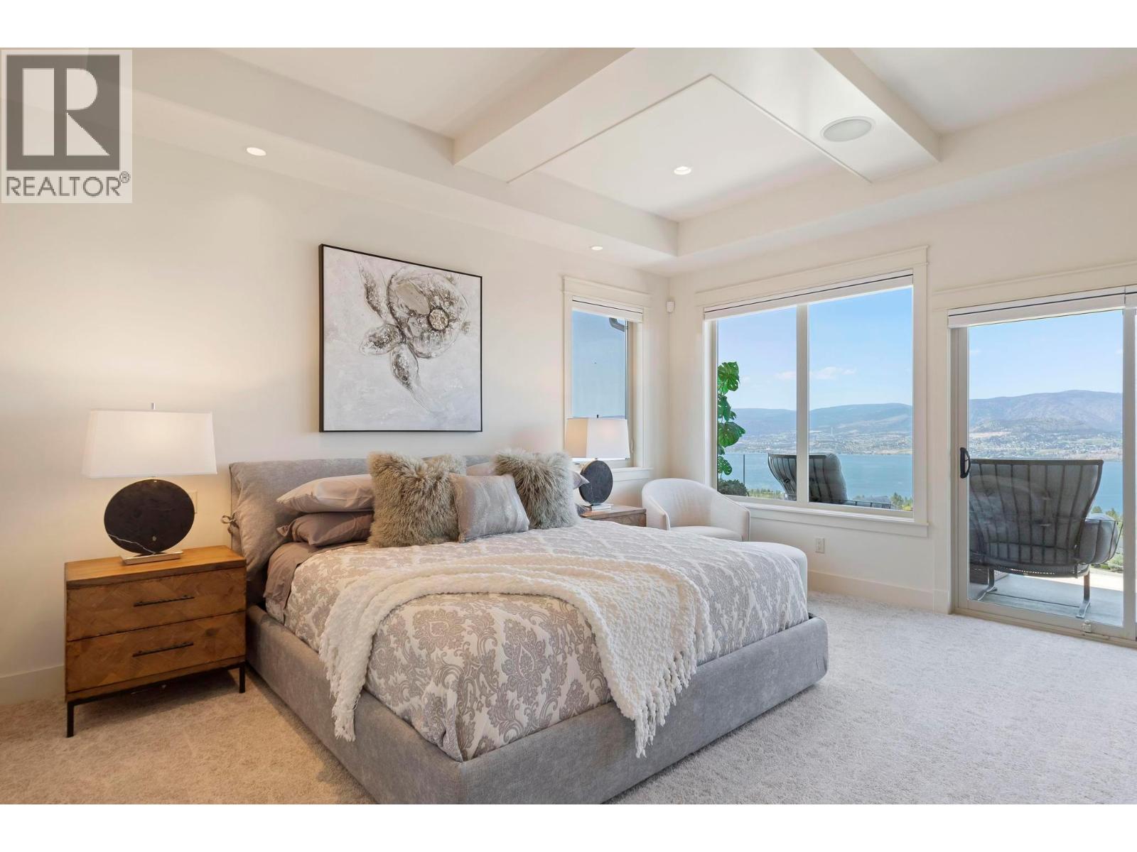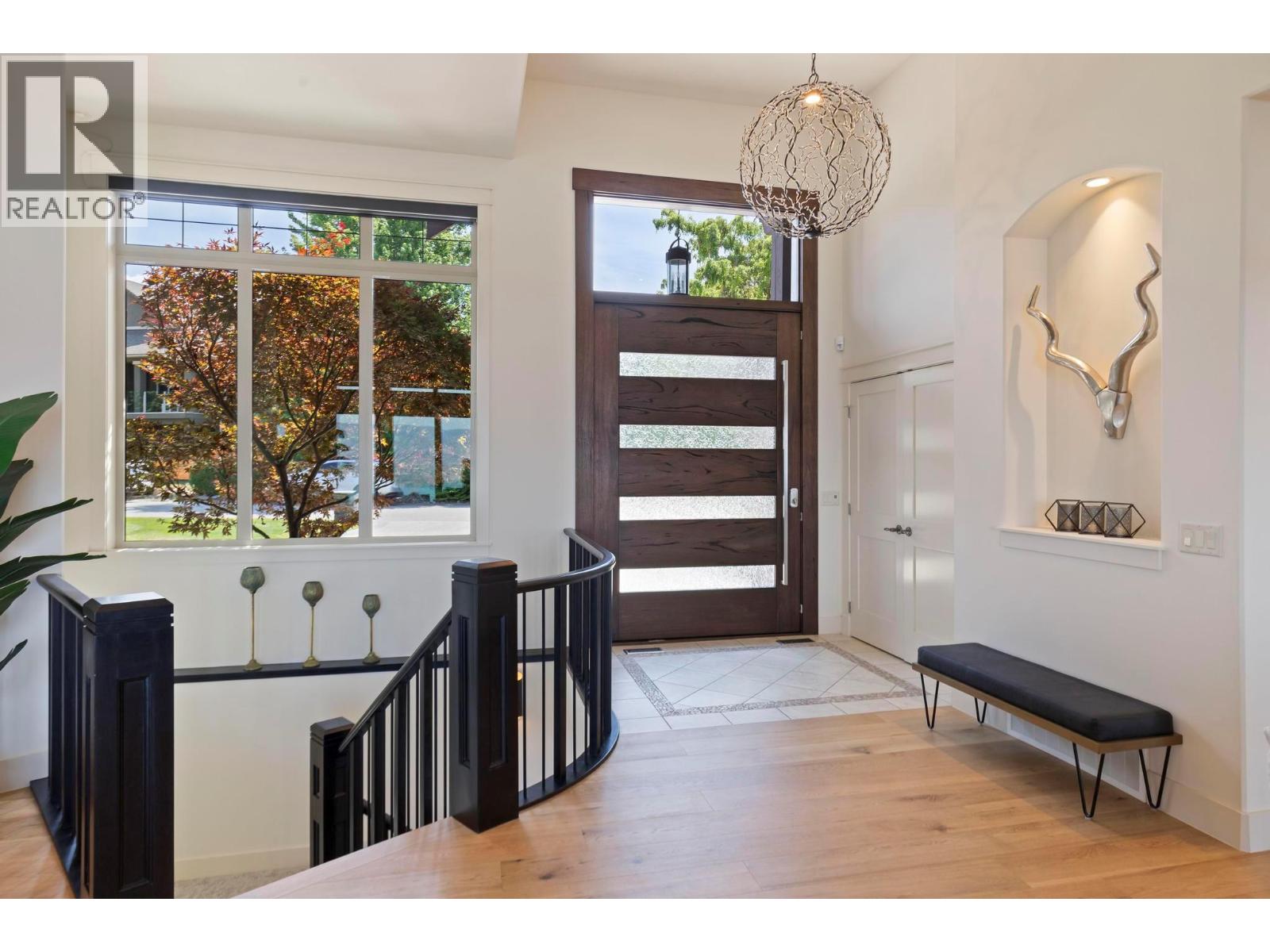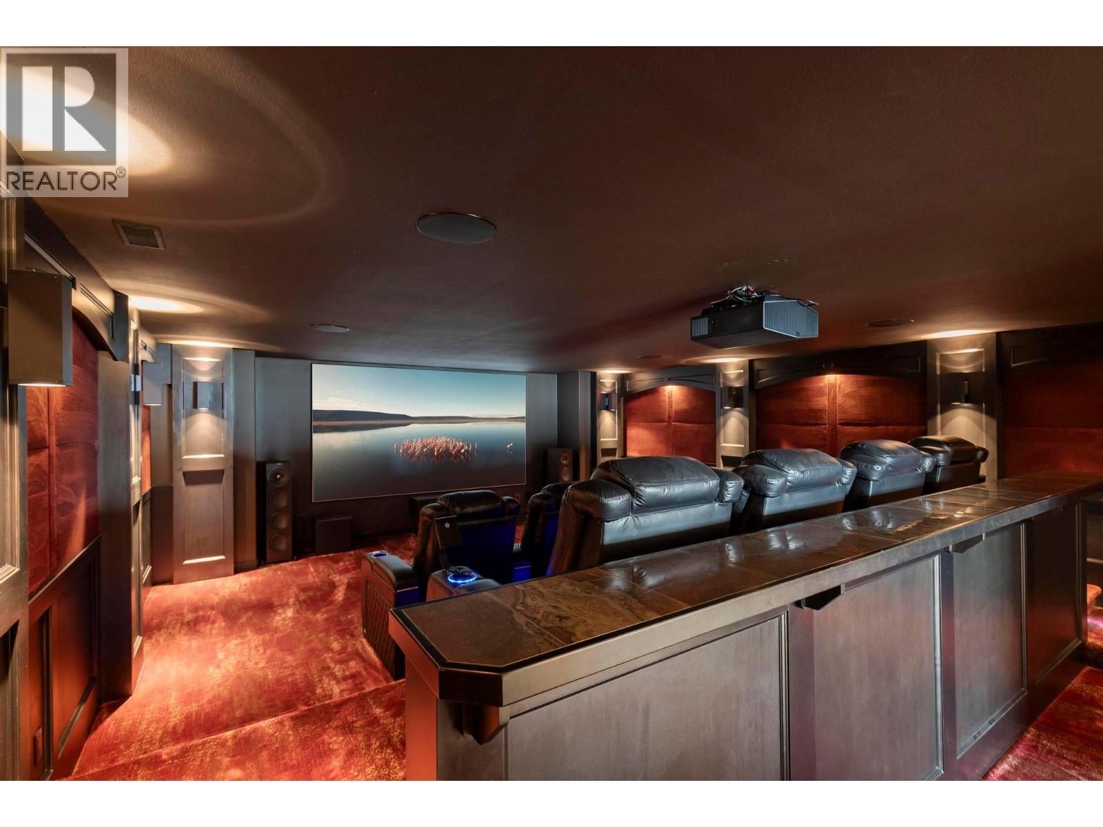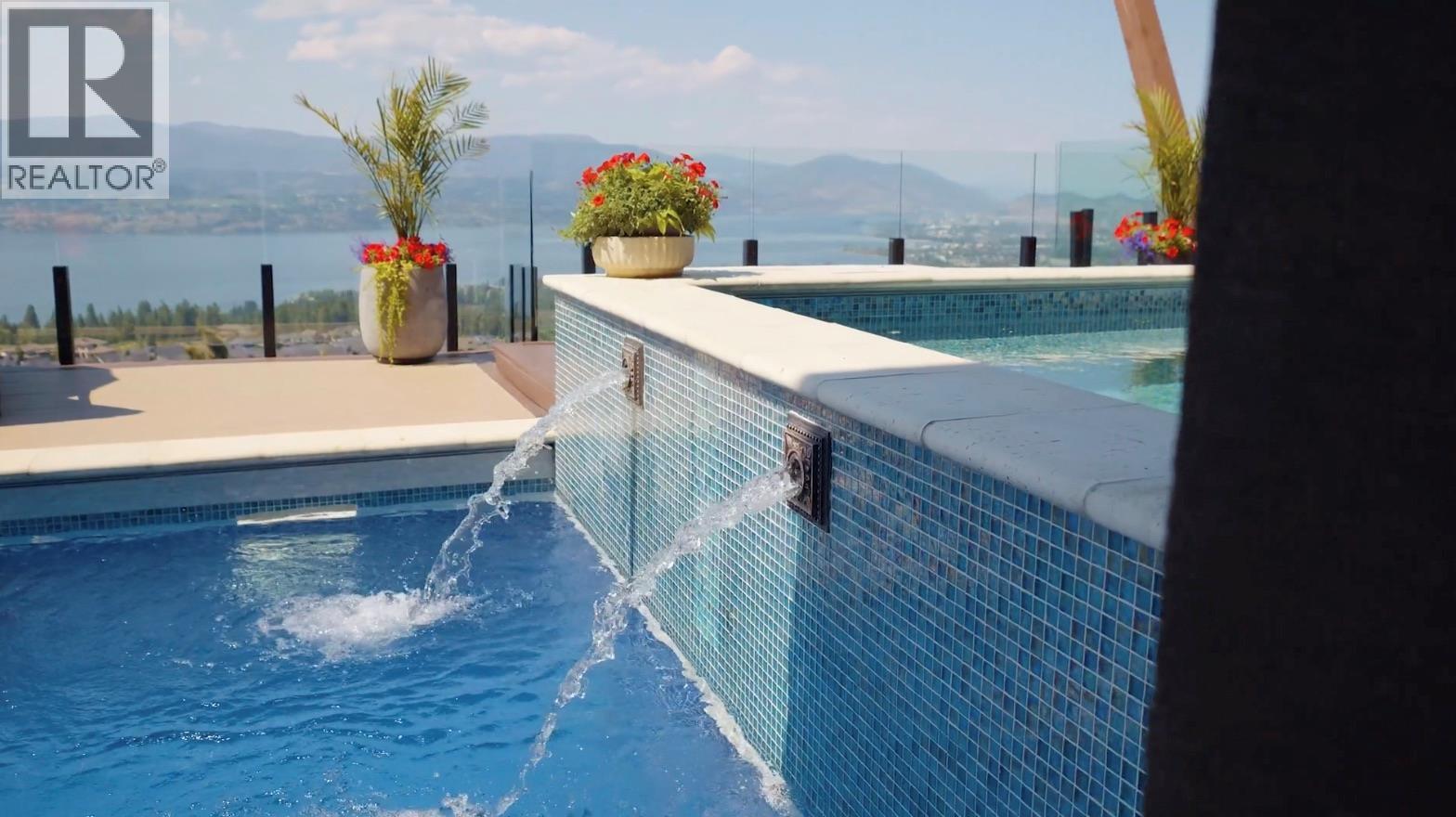 Perched in the prestigious Upper Mission this exceptional luxury residence showcases breathtaking panoramic views of Okanagan Lake, the city, and surrounding mountains. Offering over 5,100 sq.ft. of curated living space, this four-bedroom, five-bathroom residence seamlessly blends technology and lifestyle. Entry through the stunning oversized Walnut pivot door leads to the main level, featuring soaring coffered ceilings, rich hardwood flooring, and expansive windows that frame stunning views and lead to a deck spanning the entire main level. The gourmet kitchen is equipped with new professional appliances, a large island, and 2 walk-in pantries—perfect for both everyday living and entertaining. Another amazing standout feature of this home is a custom built primary closet that will take your breath away. The lower level is designed for recreation and relaxation, complete with; a full wet bar and featuring an amazing; two-tiered theatre room that has been professionally developed. To add to your ultimate comfort, the home is equipped with 2 indoor fireplaces and 3 steam showers, one in each of the ensuites. Outdoors, the showstopper awaits. The backyard featuring a dramatic cantilevered deck with tiled pool and spa, outdoor pool shower, extended fireplace deck & waterfall wall create a striking architectural focal point that complete the nearly 2000 sf of outdoor living space . For ease of maintenance and storage of pool equipment, there is a fully enclosed equipment room containing a newly upgraded Hayward control system managing the pool, spa, water features & lighting. Extensively updated, this home features new flooring, refreshed interior paint, lighting, water softener system, motorized Hunter Douglas blinds; two motorized Phantom sun screens; new glass panel garage door; epoxy garage floors; hardwired EV charger and a fully integrated security system with cameras. Please inquire for a list of comprehensive upgrades. (id:62999)