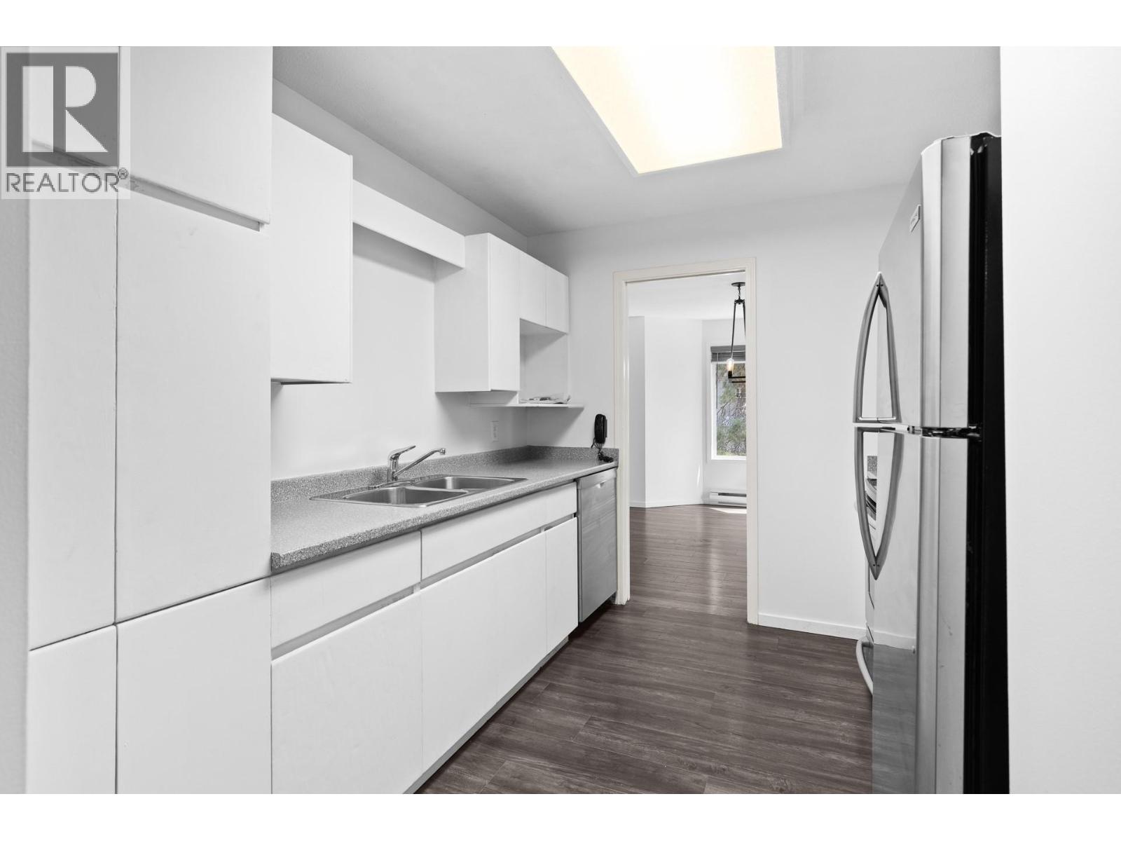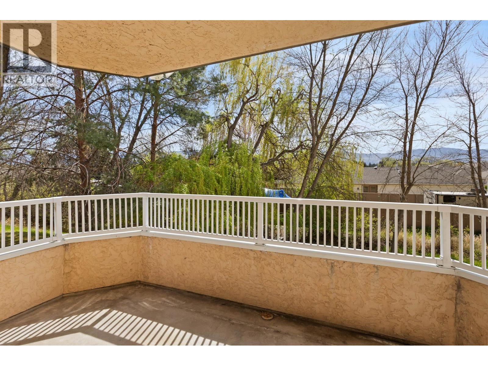 The Oxford – This 2 bedroom, 2 bath condo is ideally situated on a quiet back corner of the building, overlooking the creek and green space. Enjoy peaceful surroundings with mountain views, plenty of natural light, and a front-row seat to local birdlife. Offering over 1,200 sq. ft., this is a rare opportunity to own a spacious condo in a highly walkable location—just steps to the college, Mission Creek shopping, and Okanagan Lake. The unit has been freshly painted and had minor repairs completed, providing a clean and functional starting point. There’s also excellent potential here for future updates, including the option to redesign the kitchen and add value over time. (Kitchen needs updating and has been priced accordingly) Strata fees are $432.58/month and include one parking stall and one storage locker. Pet restrictions allow for one cat or two birds (no dogs). (id:62999)