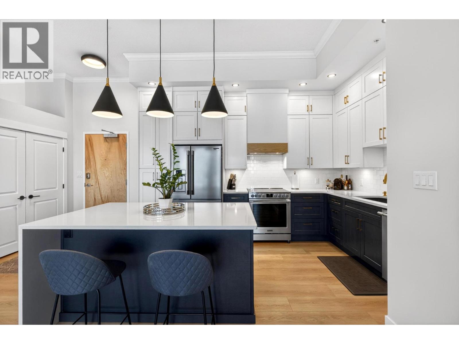 Welcome to #502, an elevated take on downtown living in one of Kelowna’s iconic concrete residences, The Lofts, set in the heart of the Cultural District. This fully renovated 5th-floor residence offers over 1,300 sq. ft. of bright, open living with lake and city views that reflect the Okanagan lifestyle. With only five homes per floor, enjoy a quiet, boutique feel within a vibrant urban setting. Over $160,000 in renovations have transformed this home into a refined, move-in ready space. The redesigned kitchen features new cabinetry, updated appliances, and a quartz island with matching countertops—blending function with a clean, modern aesthetic. New lighting, paint, baseboards, and fully redone bathrooms—including the main and ensuite—carry a consistent level of finish throughout. The primary suite is complemented by a custom walk-through closet with built-ins. Soaring 11-foot ceilings, exposed concrete, and expansive windows create a bright, airy space that feels both modern and timeless. The layout offers flexibility for both everyday living and entertaining. Step outside and enjoy walkable access to beaches, restaurants, cafes, and the waterfront. Residents of The Lofts enjoy a fitness centre and social room, along with secure parking, a storage locker, and generous in-unit storage. A rare opportunity in a building known for its design, scale, and location. Book your showing today! (id:62999)