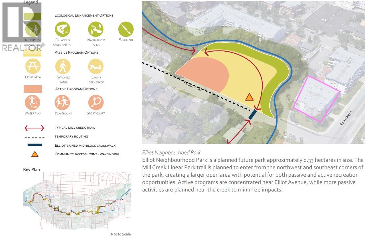 This is not your average condo! Soaring ceilings, spacious and situated minutes from Kelowna's amenity-rich Downtown. This 2 bedroom, 2 bathroom corner suite offers incredible natural light, comfort, and convenience in one of Kelowna’s most desirable locations, steps from the Off-leash dog park at Rowcliffe Park. Freshly painted, with new flooring throughout, the home features a functional kitchen with ample counter and cupboard space, a bright living and dining area complete with a gas fireplace, abundant windows with views of mature trees and crown mouldings. Enjoy year-round outdoor living on the covered and enclosed patio. The primary bedroom features two windows, a walk-in closet, and a full 4 piece ensuite bath with soaker tub. The second bedroom, positioned on opposite end of unit for added privacy, offers excellent light and space. A large laundry and storage room adds to the functionality. Additional features include secure parking, a storage locker, central heating and cooling, and Strata Fees that pay for your HEAT, HOT WATER, Natural gas, and Fireplace use. Located in the Kelowna General Hospital district and right beside the planned future 81 Acre Elliot Park, this building is dog and cat friendly, allows rentals and provides easy access to downtown, shops, restaurants, beaches, and parks - close to everything you need. (id:62999)