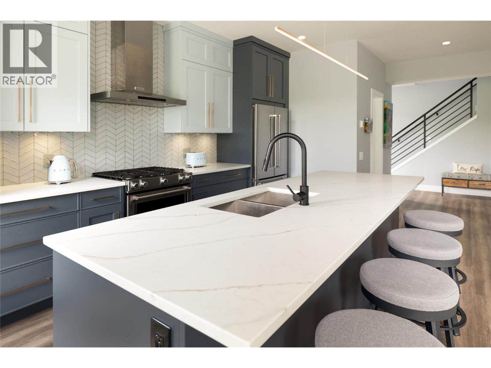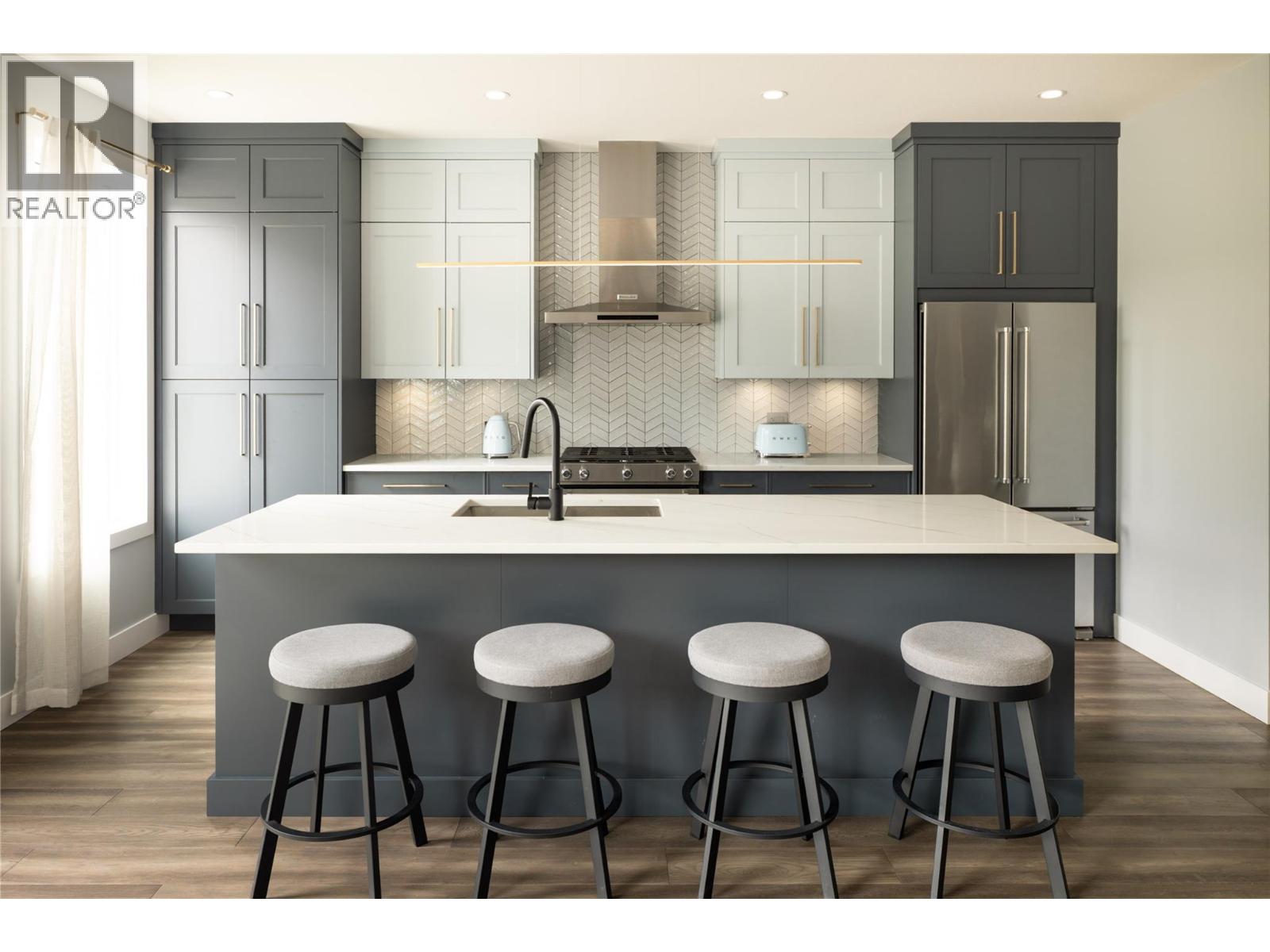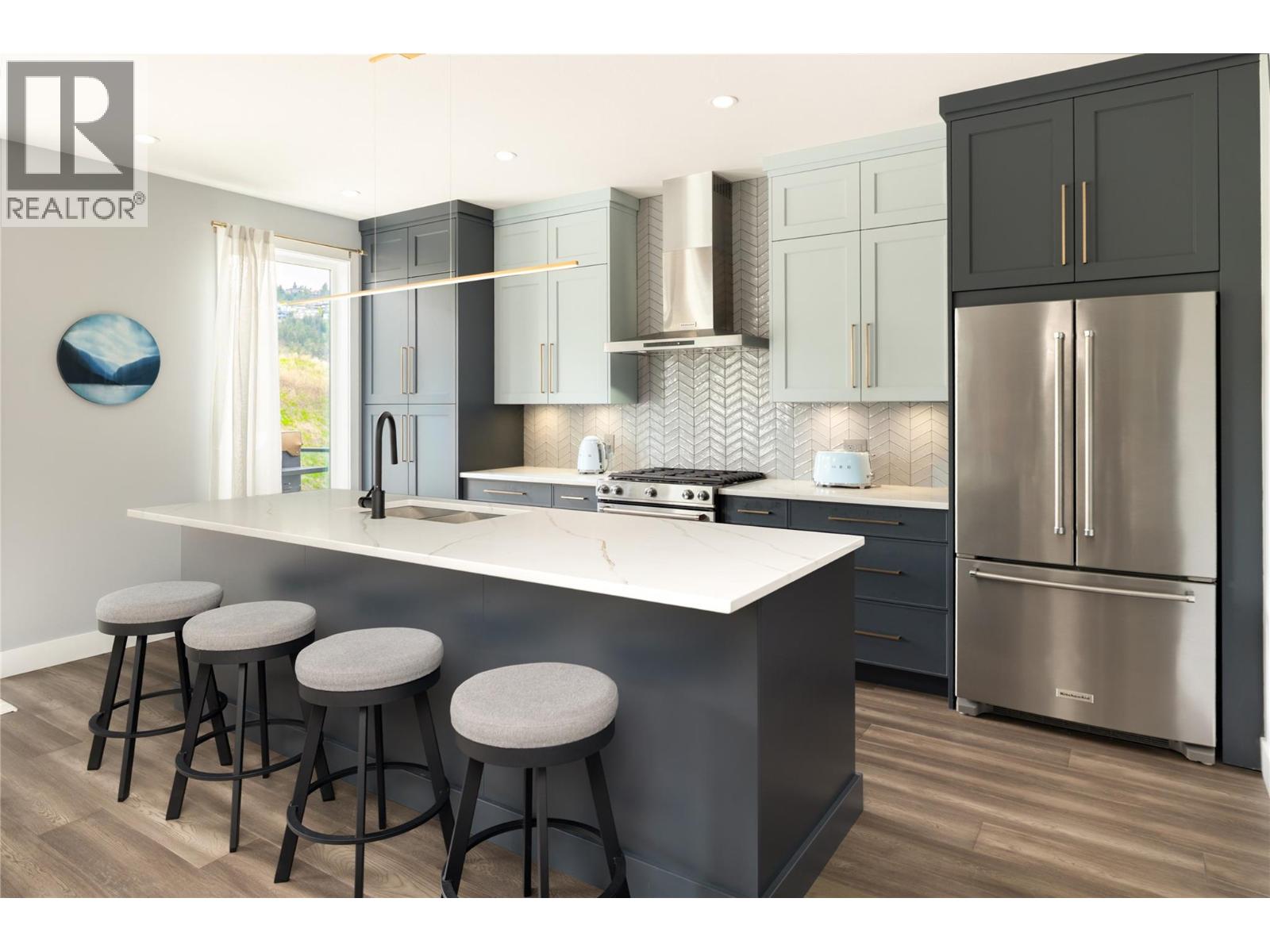 One of the largest floor plans in sought-after West Harbour, this upgraded residence offers exceptional space, privacy, peek a boo lakeviews and the ultimate Okanagan lifestyle within a gated waterfront community just minutes to Downtown Kelowna. Private beach access, a marina, boatslip included, outdoor pool, hot tub, fitness centre, clubhouse, sports courts, playground, and vibrant social atmosphere create a setting that feels like a year-round resort. Inside, the main level is bright, open, and beautifully connected. The kitchen is designed for both daily living and entertaining with a 5-burner gas range, oversized island with storage, custom lighting, and seamless flow to the dining and living areas. Step onto the expanded upper deck to take in mountain and valley views, host summer dinners, or unwind at the end of the day. Stairs lead directly to the lower patio and fenced, irrigated yard. Upstairs, three spacious bedrooms include a serene primary retreat with a walk-in closet and a well-appointed ensuite featuring heated floors and under-cabinet lighting. A generous family room and second view deck provide the ideal bonus space for movie nights, a play area, or quiet retreat. The walk-out lower level adds incredible flexibility with a large recreation room, fourth bedroom, full bathroom, and direct outdoor access—perfect for guests, teens, or multigenerational living. A double garage, upgraded metal railings, hot tub readiness, built-in vac rough-in, and extended outdoor living spaces complete this rare opportunity in one of West Kelowna’s most desirable lakefront communities. (id:62999)