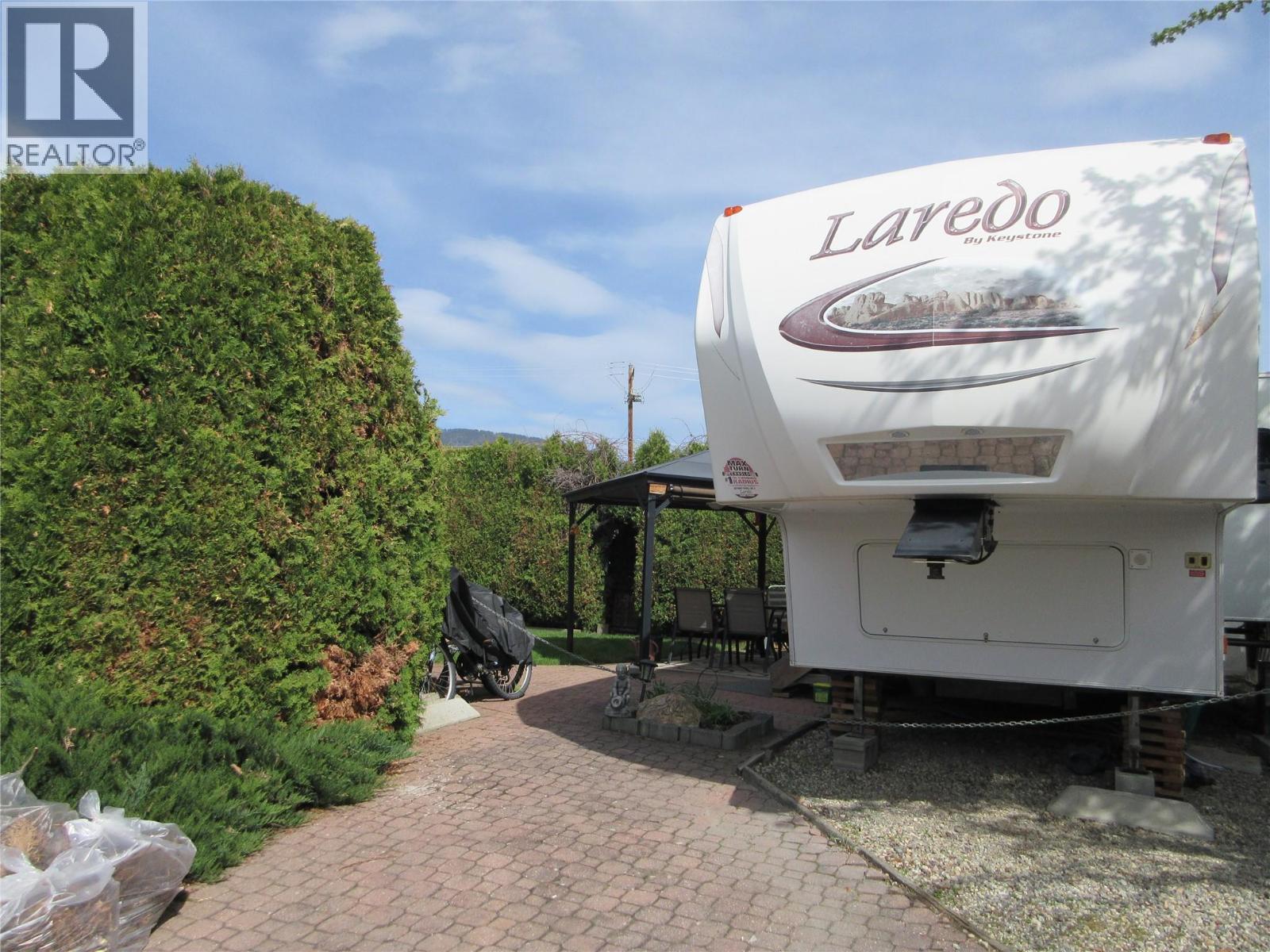 Welcome home to the gated community of Holiday Park Resort. Private and secluded Standard lot is near the front gates. This is a beautiful pie shaped lot surrounded by healthy and manicured cedars with each tree individually irrigated. Relax in your private yard that features timed irrigation to keep your lawn green. A trellis archway that is covered in grapevines, will lead you through the cedars to the walkway. The outdoor lap pool is a few minutes away where you can participate in a game of water volleyball on a hot summer day. Enjoy all the amenities that Holiday Park Resort has to offer - golf course, pools, hot tubs, pickleball court, gym, library, games room, coin laundry, hair salon, plus so much more. The Rail Trail is easily accessible for long bike rides or walking. The lease goes to 2046. The lease is registered with the Federal Government. The Annual Maintenance Fee for 2026 is $5185, includes security, water, sewer, use of the amenities, maintenance of the common areas and roads, snow removal and garbage disposal area. Property Taxes are payable to the City of Kelowna. There is no Property Transfer Tax. Long and short term rentals allowed. (id:62999)