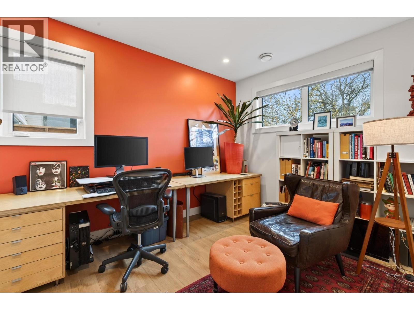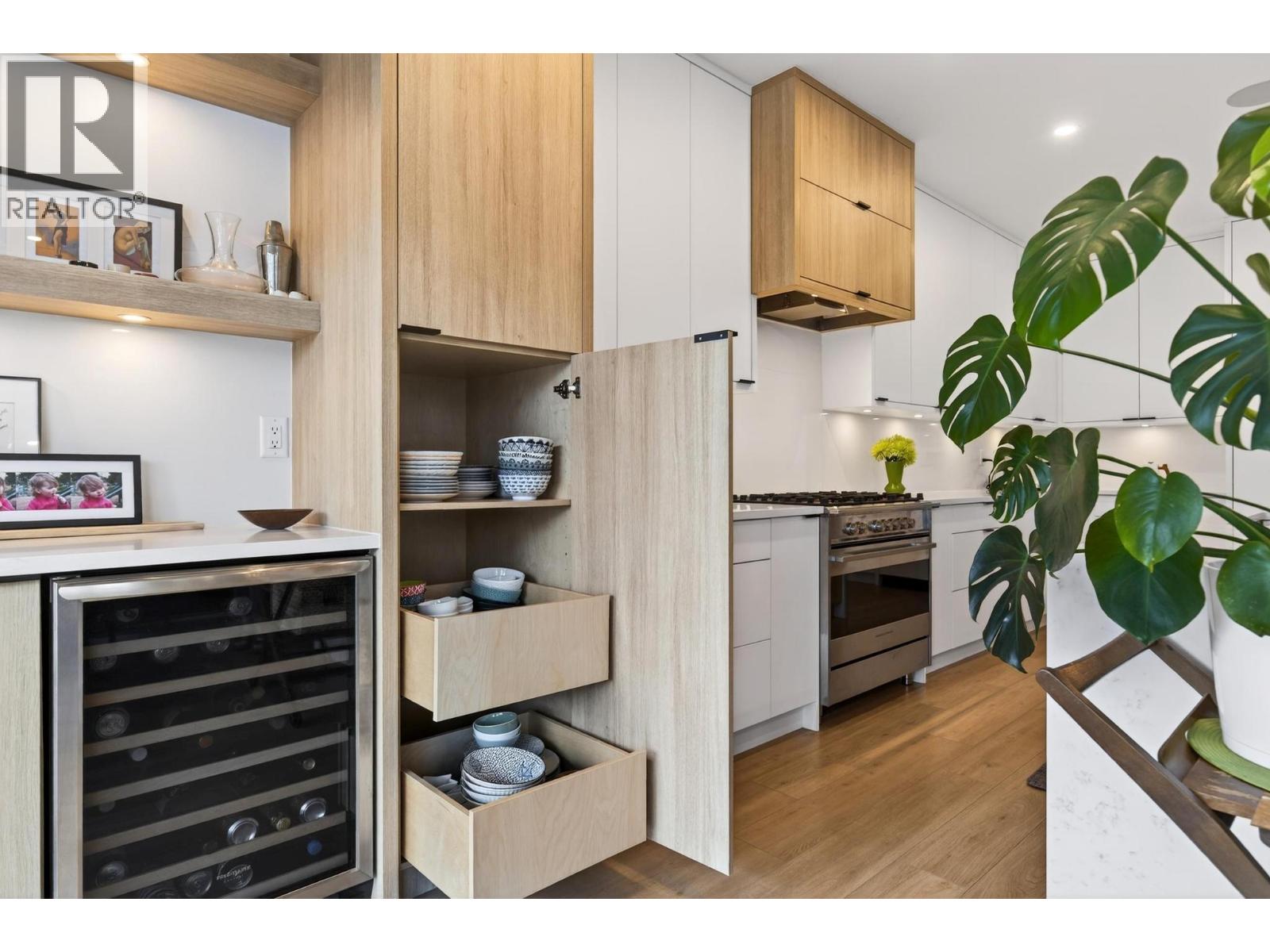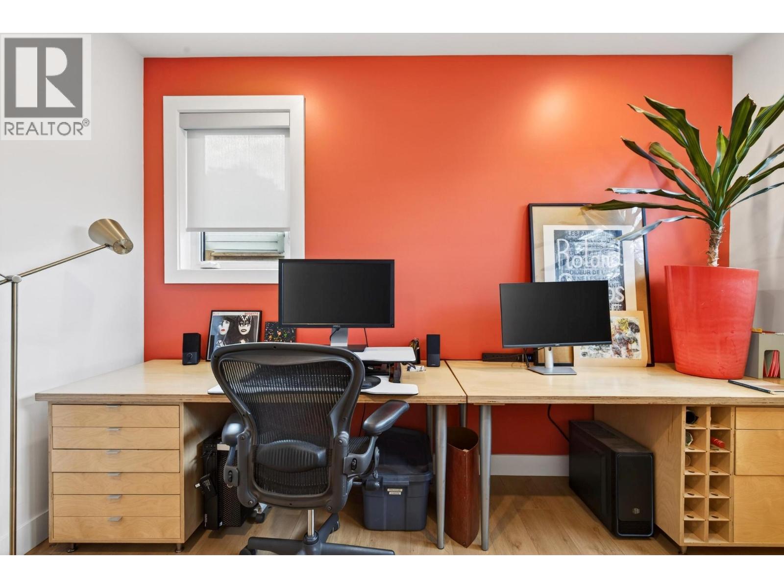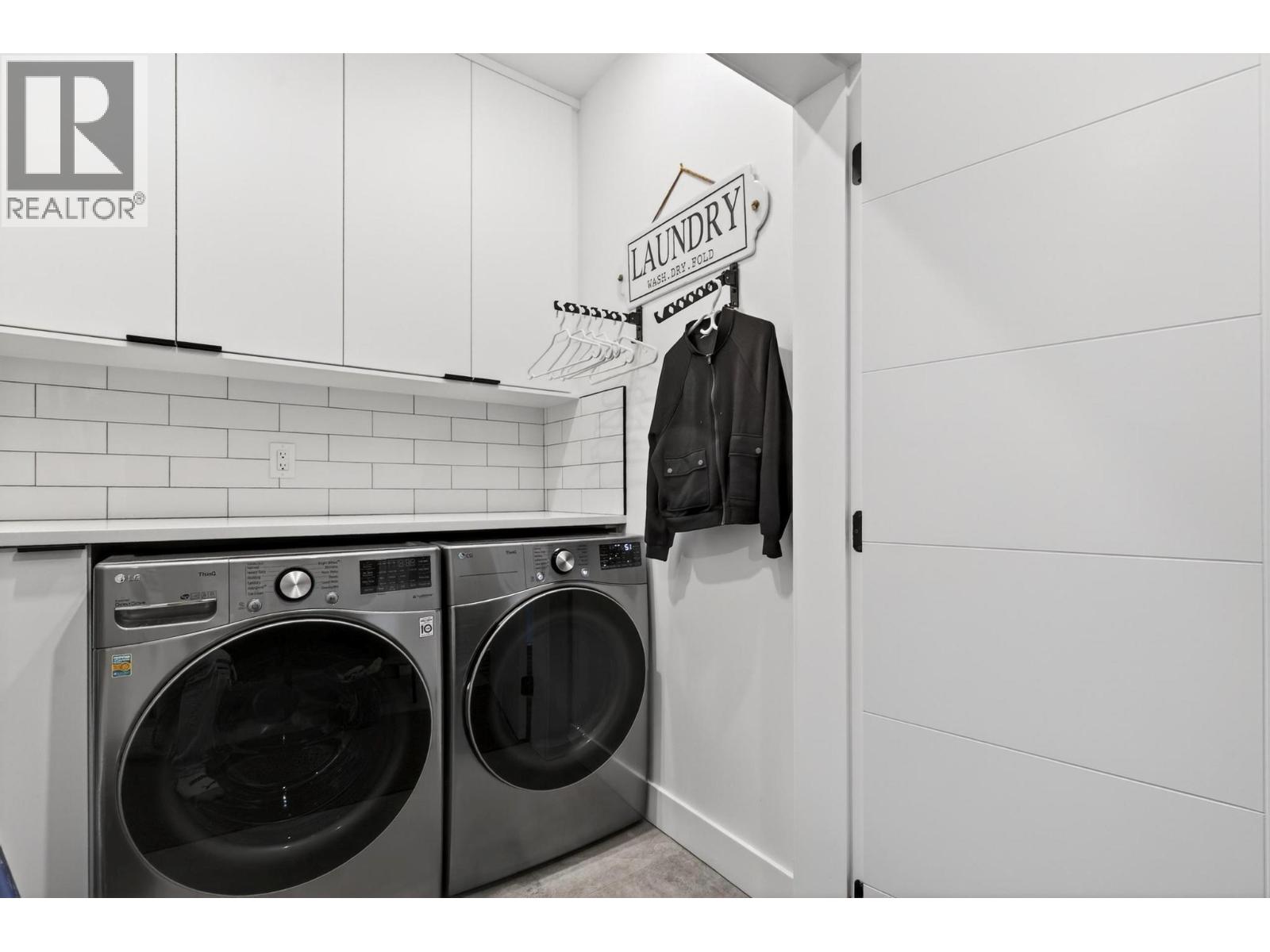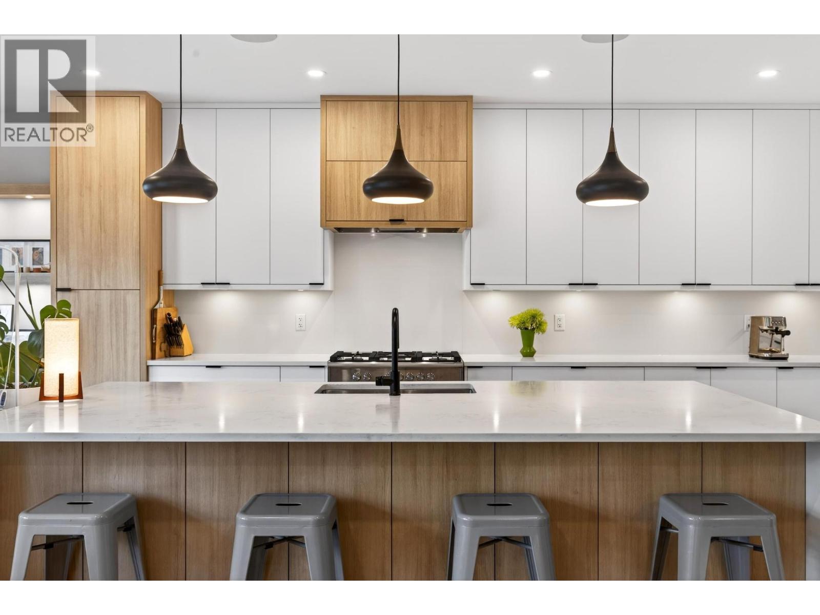 Rare 1,800 sq ft, 4-bed, 3-bath townhome in Downtown Kelowna — and this one comes completely turnkey! The sellers have added post-possession upgrades so you skip the landscaping, fencing, blinds, paint, and finish work that most new builds leave for year one. Upgrades include a custom fenced courtyard with gate and low-maintenance rock-scaping; automated blinds throughout; a designer paint package with accent walls and a full-height staircase feature wall; a custom mural wallpaper and black ceiling in the powder room; Ecobee thermostat; ceiling fan in the primary; added shelving in the foyer closet and kitchen; and a built-out garage with bike hangars. The entry level offers three bedrooms, a full bath, laundry, interior access to the private attached garage, and EV charger ready. Upstairs features 9-foot ceilings, oversized energy-efficient windows, a 10-foot quartz waterfall island, Fisher & Paykel panel-ready appliances, custom cabinetry, and a built-in bar with wine cooler. Living and dining open onto a covered patio with natural gas and built-in speakers. The primary suite is upstairs with a walk-through closet and 5-piece ensuite. Pet-friendly. Mountain and city views. Walking distance to everything downtown. (id:62999)