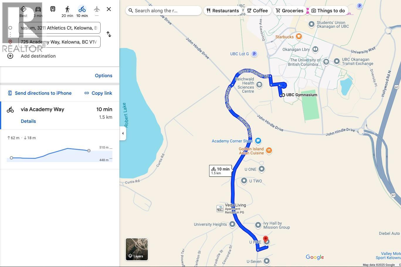 Don't miss this 'Vacant as of May 1st' Prime 3 Bed 3 Bath Fully Furnished 'Turn Key' 2nd floor quiet condo at the popular student housing area within walking distance to UBCO - Welcome to #211 - 725 Academy Way! Located just South of UBC Okanagan at U-Five in the University District – a thriving off-campus neighborhood where students can work, live and play. This beautiful and well appointed condo includes 915 sq. ft of living space with a 21 Ft covered deck overlooking the serene garden area on the quiet side of the building! The Kitchen features two-tone kitchen cabinets, island to prepare and dine at, with stainless-steel appliances, and all dishes and linens, that opens onto the living room with access to the outdoor patio (allows bbqs). Complete with in-suite laundry and a bathroom for each bedroom (two private en-suites and a third stand-alone bathroom). The University District offers direct access to restaurants, breweries, shopping, public transit, Kelowna International Airport, Bear and Quail Golf Courses, and Okanagan Rail Trail. This is an excellent opportunity to own if a family member attends UBCO, or you are looking for an great investment. Rentals are allowed, with restrictions (min. 30 days - Estimating $3,200 - $3,500 / month.) and pets are also allowed with restrictions (up to two dogs, or two cats, or one dog and one cat). 1 extra long secure Parkade stall allows for 2 smaller cars to be parked 'tandem', located close to the elevator. 24 hrs notice please. (id:62999)