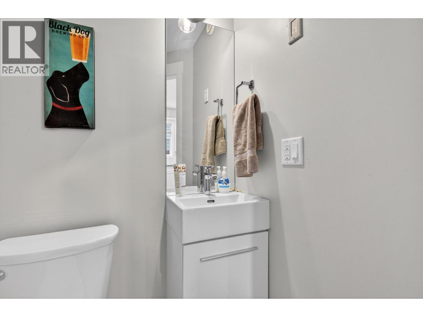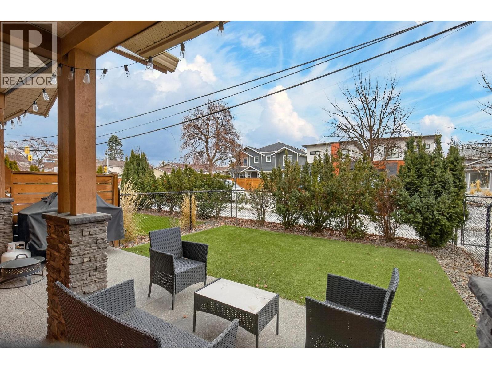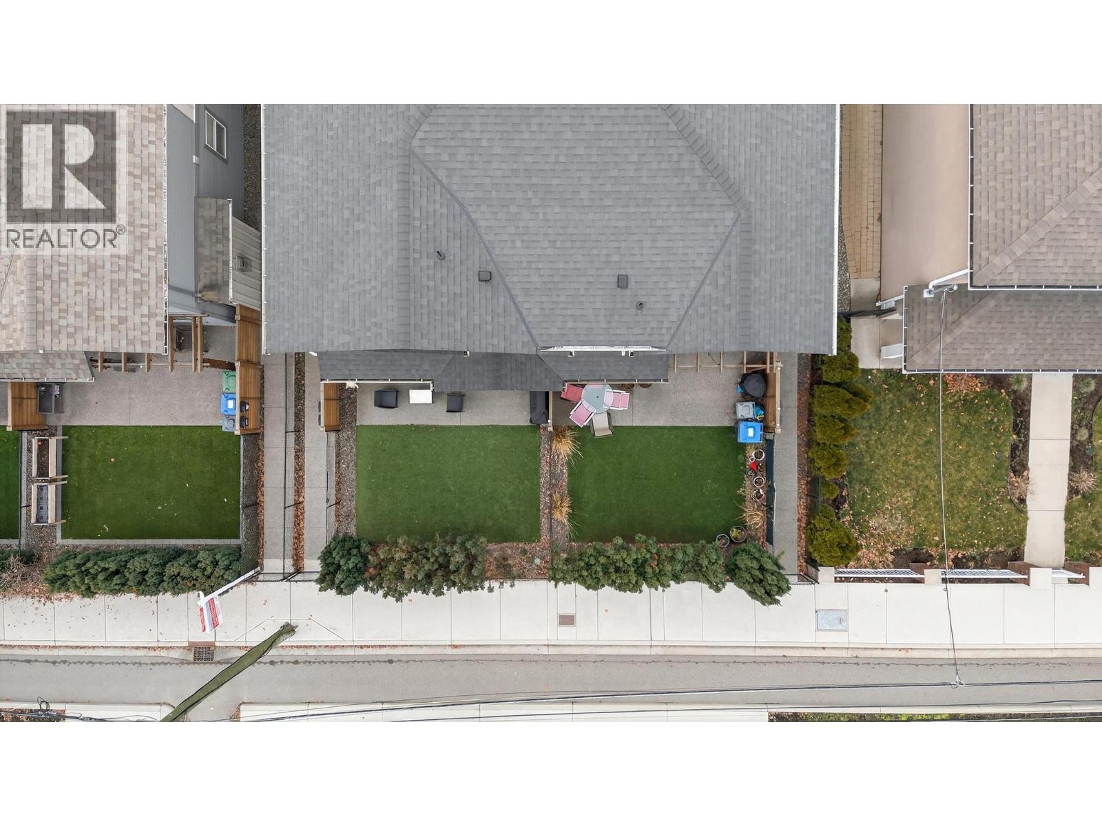 Experience stylish, low-maintenance living in this beautifully finished front unit in the heart of Kelowna South—one of Kelowna’s most desirable and walkable neighbourhoods. With no strata fees and pet-friendly living, this home is a standout opportunity. The bright, open-concept main floor showcases a modern kitchen with white cabinetry, quartz countertops, and stainless steel appliances. The kitchen is thoughtfully roughed-in for either a gas or electric range, offering flexibility for your cooking preference. The space flows into the open living room, highlighted by a cozy gas fireplace. Stylish vinyl plank flooring runs throughout, enhancing the contemporary design. Upstairs features two spacious bedrooms and two full bathrooms, plus a convenient powder room on the main level. The primary bedroom offers a spa-like ensuite and a large walk-in closet. Enjoy year-round comfort with natural gas heating, central air conditioning, and hot water on demand. Step outside to a fully fenced yard with low-maintenance SynLawn and a natural gas BBQ outlet—perfect for entertaining. A detached garage with storage above provides secure parking and extra space. Bike or stroll to Pandosy Village or downtown via direct access to the Ethel biking corridor. Beautifully maintained and move-in ready. (id:62999)