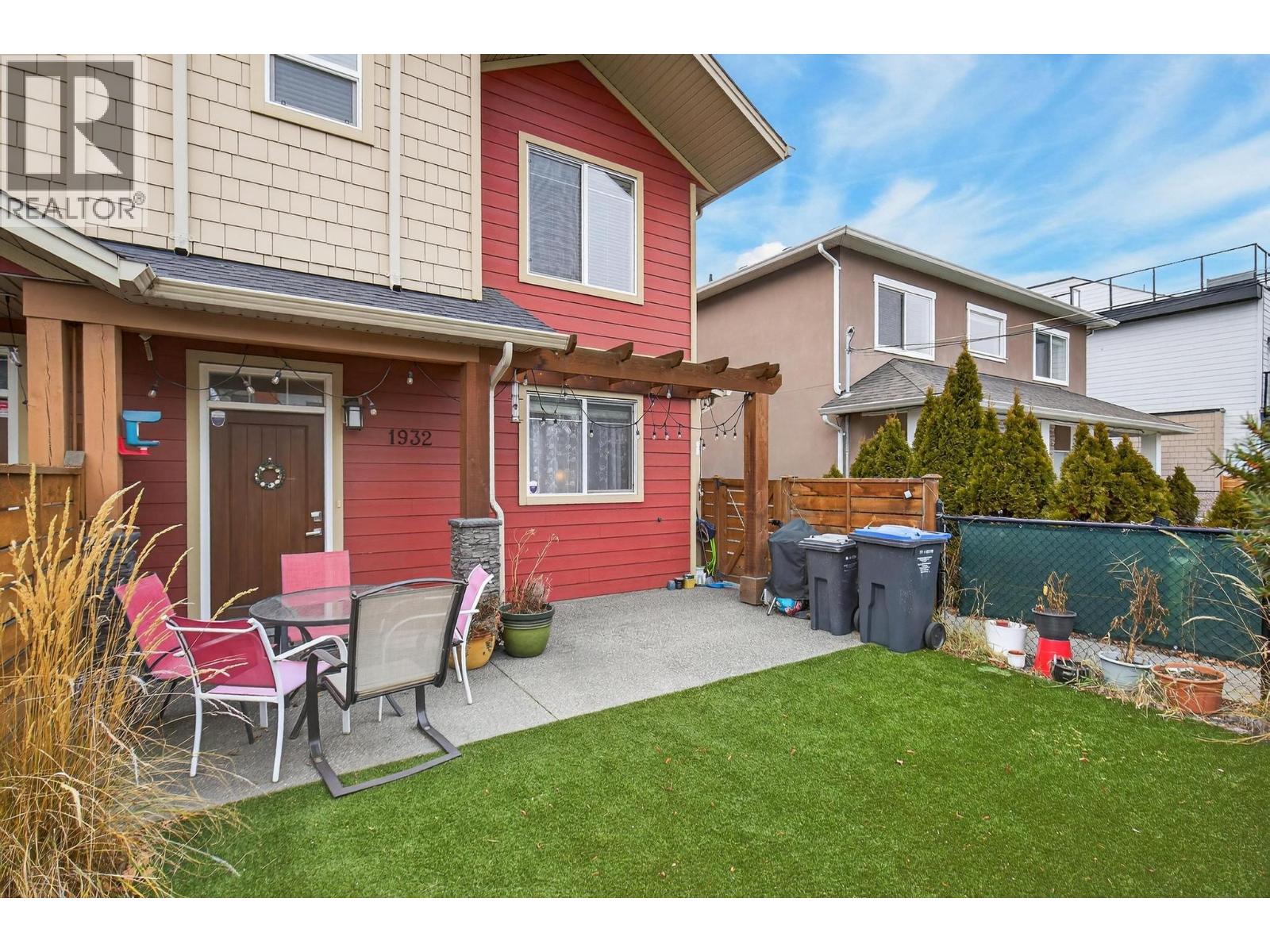 Discover refined urban living in this front unit in the heart of Kelowna South, one of Kelowna’s most desirable neighbourhoods. Built by Maraine Construction, this thoughtfully designed home offers quality craftsmanship, NO STRATA FEES, and an unbeatable central location steps to bike paths and daily amenities. The bright, modern kitchen features quartz countertops, stainless steel appliances, and ample cabinetry, all set over durable vinyl plank flooring. It is thoughtfully roughed-in for either a gas or electric range, offering flexibility for your cooking preference. The inviting living room is anchored by a cozy gas fireplace—perfect for relaxing evenings at home. This well-appointed layout offers 2 bedrooms and 2.5 bathrooms, including a convenient half bath on the main floor and two full bathrooms upstairs. The spacious primary bedroom includes a private ensuite and a large walk-in closet. Enjoy year-round comfort with natural gas heating, central air conditioning, and hot water on demand. A security alarm system adds peace of mind. Outdoors, enjoy a fully fenced yard with low-maintenance SynLawn and a natural gas BBQ outlet—ideal for entertaining. A detached garage provides secure parking plus extra storage. Located near transit, schools, and everyday amenities, and just minutes to Pandosy Village or downtown via the Ethel biking corridor, this home delivers a truly walkable lifestyle. (id:62999)