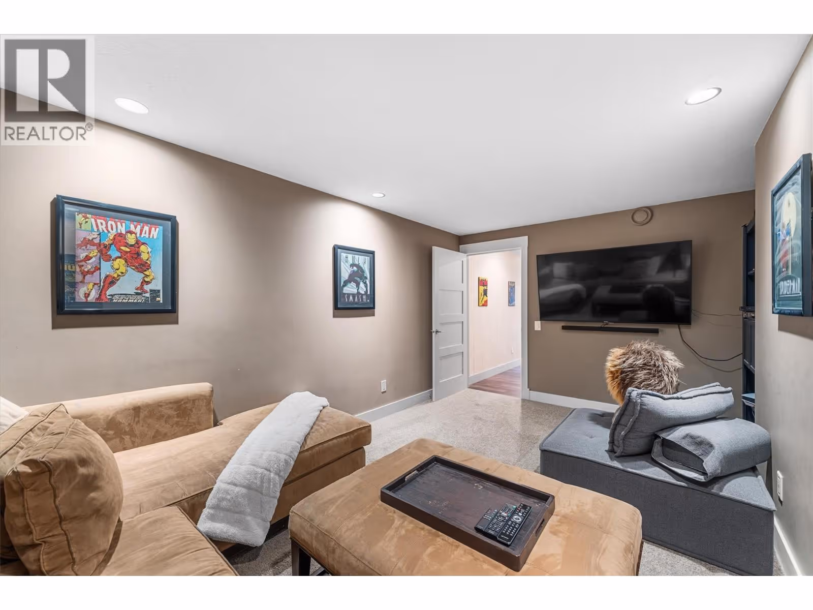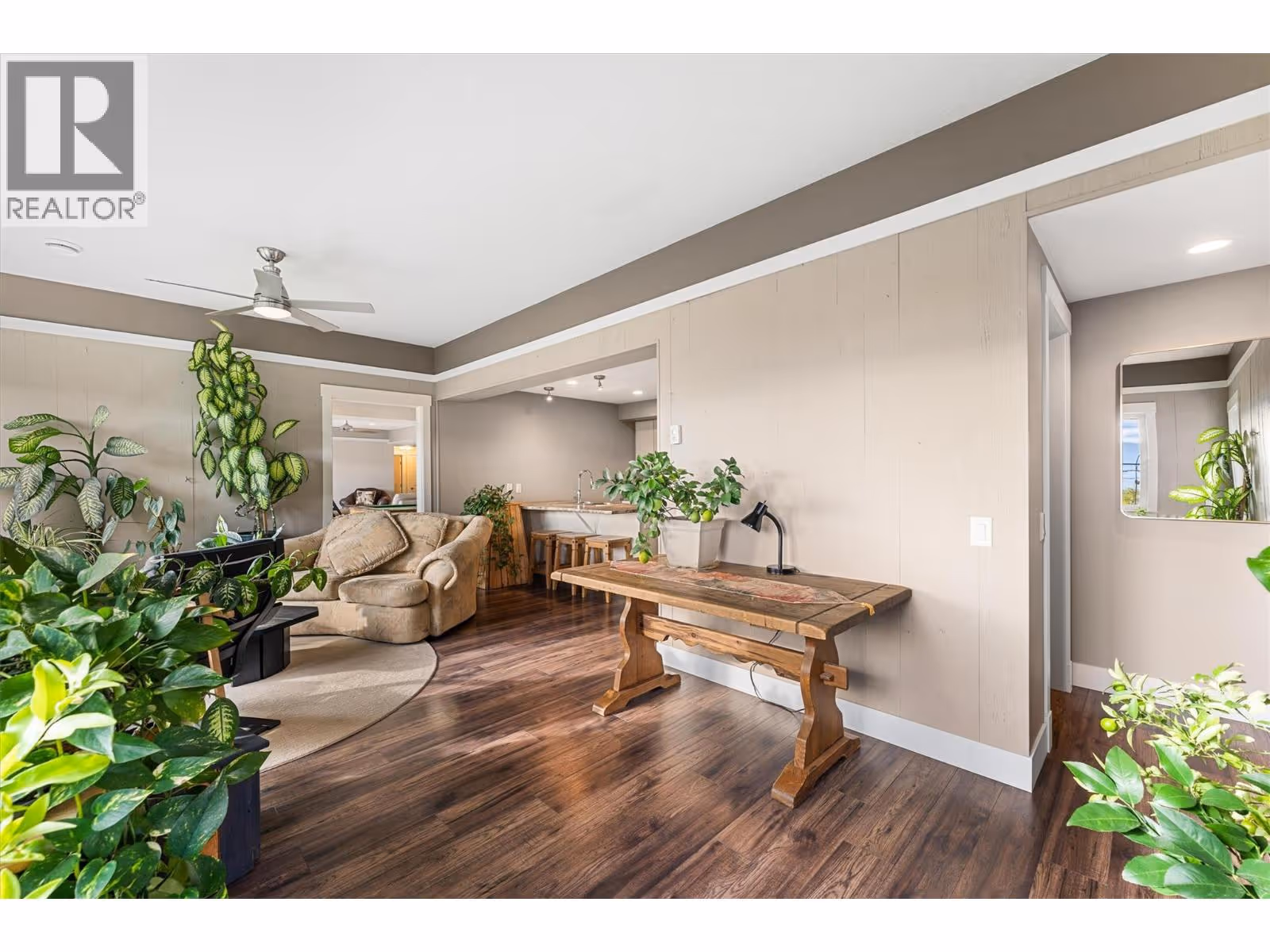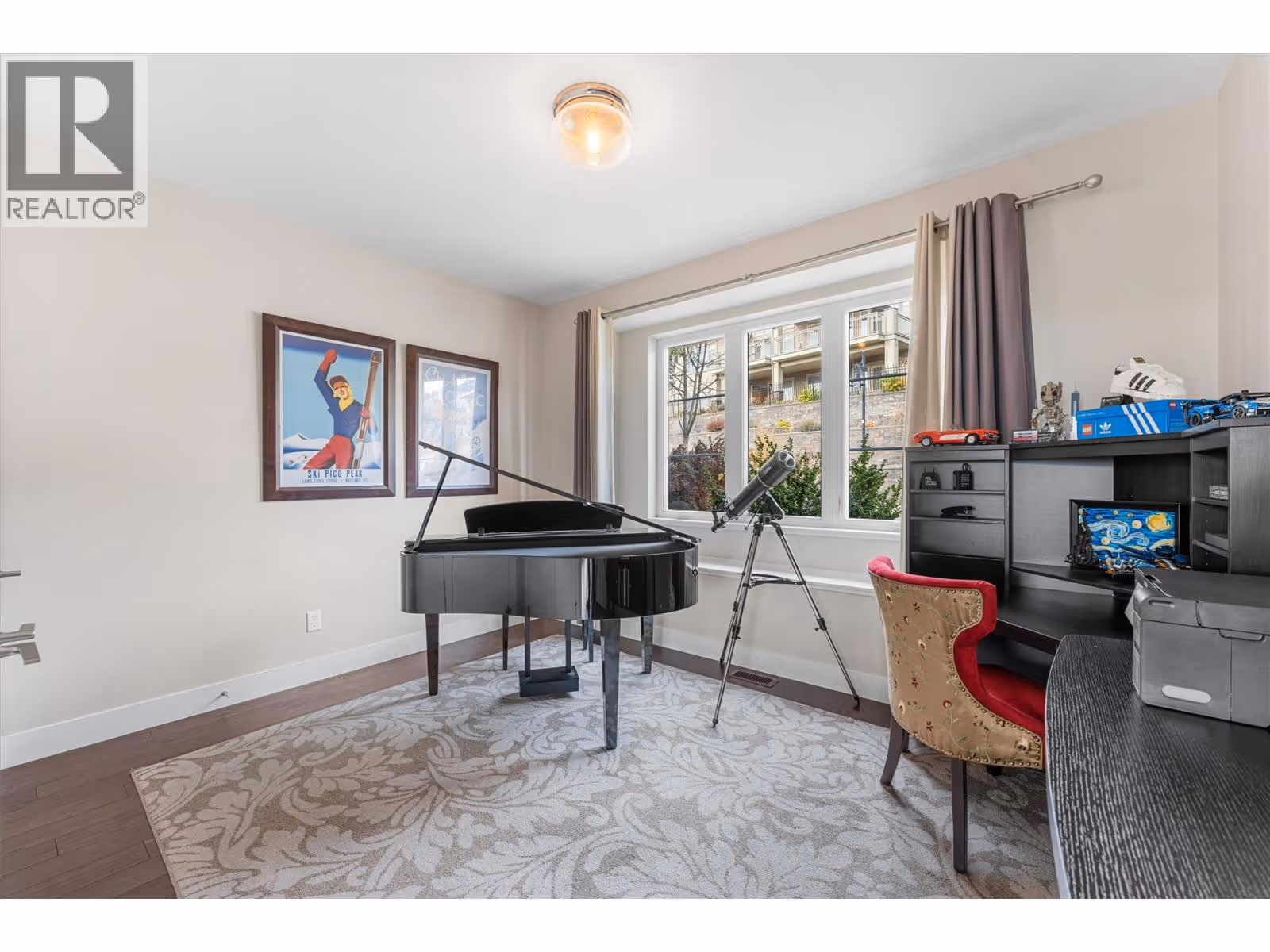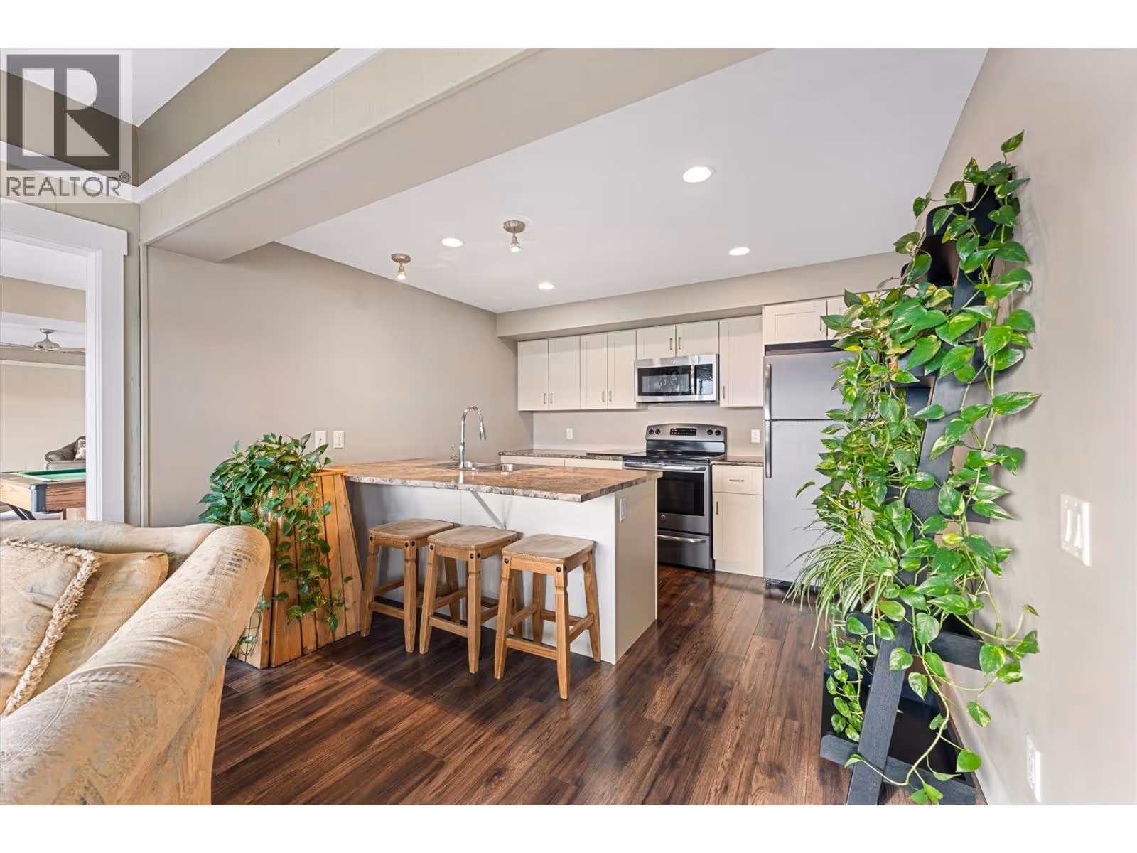This meticulously crafted walkout rancher offers the best of Okanagan living. A wall of windows frames views of Dilworth Mountain, the city skyline, and Okanagan Lake. The open-concept main level features hardwood floors, 11’ ceilings, and a wraparound sun deck perfect for morning coffee or evening wine. A gas fireplace and dual sliding doors with phantom screens enhance the bright, open feel. The chef’s kitchen is outfitted with GE Cafe appliances, a gas stove with pot filler, quartz counters, and a two-tiered island. Soft-close white oak cabinetry, open shelving, and hidden organizers elevate the functionality. The dining space includes built-in bench seating and access to the deck and BBQ area. The primary suite showcases city views, a spa-inspired ensuite, soaker tub, glass shower, heated tile floors, dual vanities, and a walk-in closet with custom built-ins. A second bedroom or office and powder room round out the main floor. Downstairs offers a bright rec room, wet bar, theater room, two bedrooms, and a 5-piece bath. Outside, enjoy your private oasis: in-ground heated pool, hot tub and a fully fenced yard. Other features include radiant in-floor heating on the lower level, Sonos speakers throughout, Navien instant hot water, triple car garage and multi-zone irrigation. A 1-bed legal suite with private entrance adds flexibility for guests or family. Close to downtown, bus routes and Knox Mountain hiking and biking trails, this home blends comfort, luxury, and location. (id:62999)