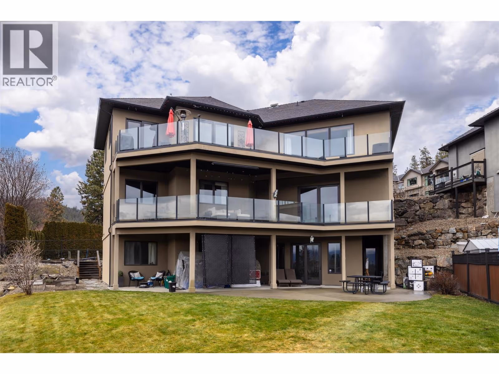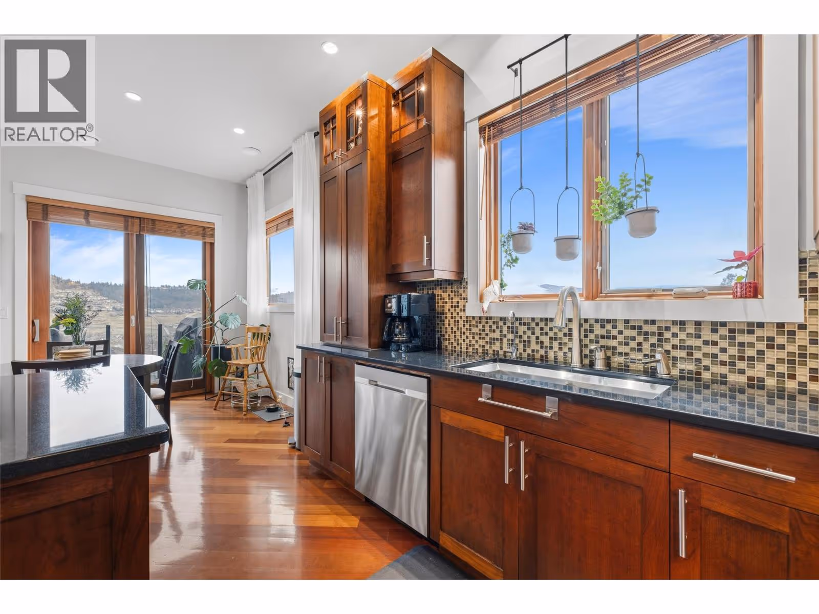 Experience over 6,000 sq ft of executive luxury in this exceptional home, perfectly situated on a quiet cul-de-sac backing onto Knox Mountain—ideal for hiking and outdoor adventures. Designed for comfort and grandeur, this spacious residence features two primary bedrooms with en-suites and four additional bedrooms, offering ample space for family and guests. Gorgeous 3/4-inch Brazilian cherry hardwood flooring, installed and finished on-site, flows throughout the main level. The bright, open-concept main floor boasts an expansive kitchen, a generous dining area, a cozy breakfast nook, and a large deck with views of Dilworth Mountain and the Kelowna Golf and Country Club. The main-level primary suite includes a walk-through closet and an ensuite. On the lower floor, discover a dedicated laundry room, a media room, two bedrooms, a full bath, and a luxurious primary wing—complete with a massive bedroom, private balcony, dressing room, and an ensuite featuring a steam shower and jet soaker tub. The walkout basement offers two additional bedrooms, a full bathroom, a spacious recreation area, a gym, an office, and abundant storage, plus direct access to a backyard with space for a pool. Enjoy the convenience of a prime central location in a welcoming neighbourhood—just a quick e-bike ride to downtown, minutes to Kelowna’s best amenities, and situated in a top-rated school district. (id:62999)