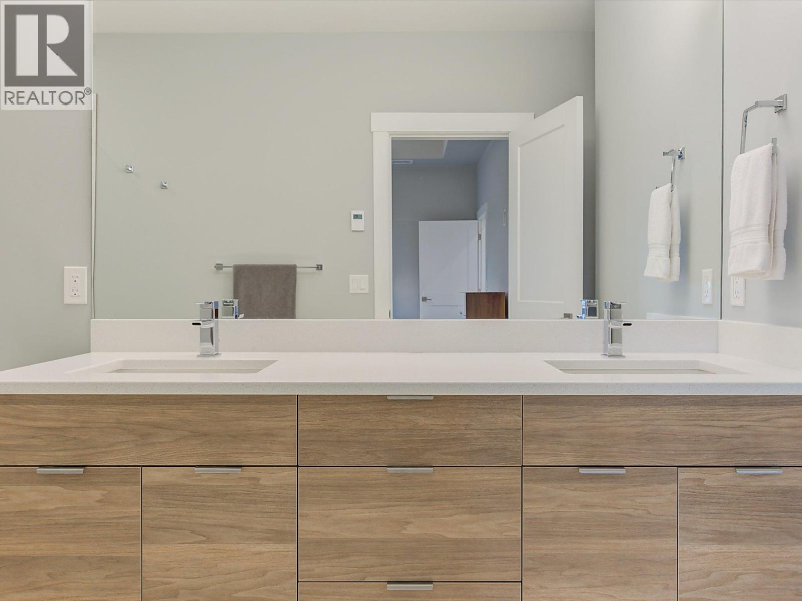 This impressive 2-bed plus den residence combines style, comfort, and exclusivity, all on a single floor. Perfect for pet owners, the complex allows 2 cats, 2 dogs, or one of each, no size restrictions for dogs. With soaring 11’ ceilings offering an open and luxurious feel. The home boasts high end finishes, stainless steel appliances and quartz countertops, while the ensuite features a double vanity and heated floors. Relax by the gas fireplace or take in stunning valley and mountain views from your covered patio, wired for a hot tub. Nestled next to the forest, this unit offers privacy, a serene setting, and access to a community garden. Located near parklands and walking trails, this home balances urban convenience with natural beauty. Access the unit from the lobby or park and walk down from the east side. Don’t miss this unique opportunity, schedule your viewing today! (id:62999)