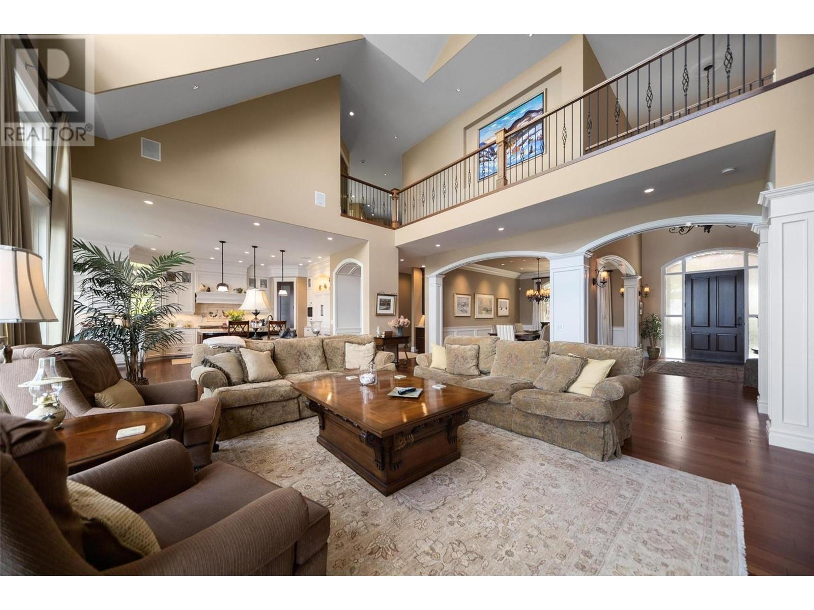 Lakefront vineyard estate home on 2.31 private acres w/160’ of sandy beach. State of the art geothermal heating/cooling and green living eco septic system. European chateau inspired boasts a new dock, elevator, wine cellar, private vineyard, office, gym + theatre. 8000 sq ft, 5 bdrm, 8 bath. Main floor primary suite w/ reading area + fireplace, luxury hotel like bath, great room w/soaring ceilings, stone fireplace and French doors that lead out to a lakefront patio w/ sunset views. The chateau kitchen w/ best in class Wolf/SubZero appliances, lakeview kitchen table along w/bar seating, formal dining room, main floor laundry and a wet bar round. The upper level w/2 large bdrms w/ensuites and huge family/guest suite w/ensuite, laundry, kitchenette. The lower level has a gym +spa bath, wine cellar, games rm, theatre, sauna, family rm and a large office w/ensuite. Elevator + accessible ramps. 4 car garage plus bonus storage. Explore your options to add a guest house. Outdoor kitchen/hot tub. Licenced dock w/power lift. Htd tile floors, Pella windows, state of the art water filtration/controls, htd driveway. Smart Lutron system w/power blinds, custom lighting, audio, alarm. Timeless design w/ tile roof, copper gutters and Kettle Valley stone exterior. A relaxing waterfall entrance. Private vineyard w/90 Chardonnay vines with room to expand vineyard. Mins to the award winning Cedar Creek + Martins Lake wineries, Bertram Park and the amenities of Lower Mission. Room for pool. (id:62999)
