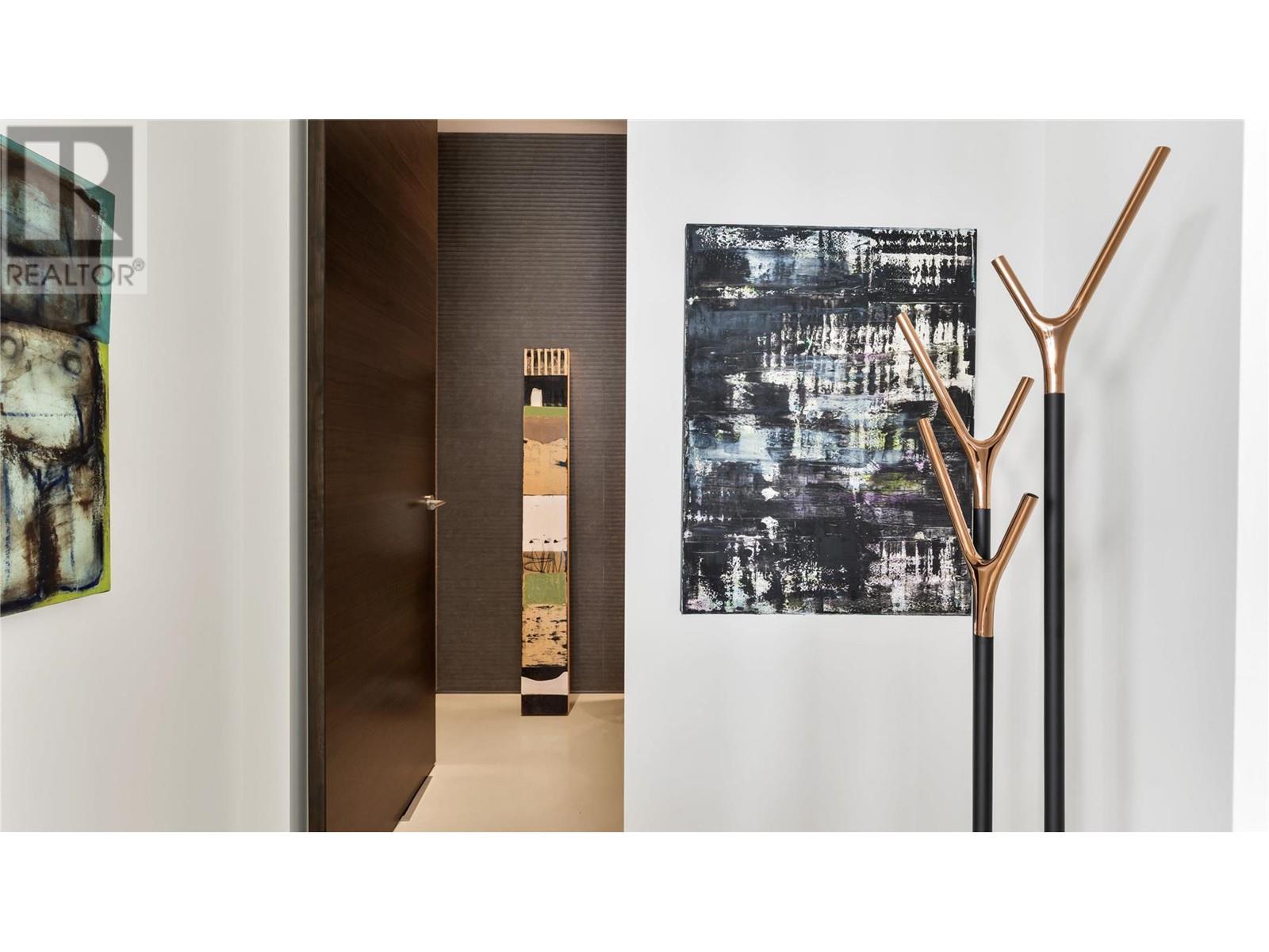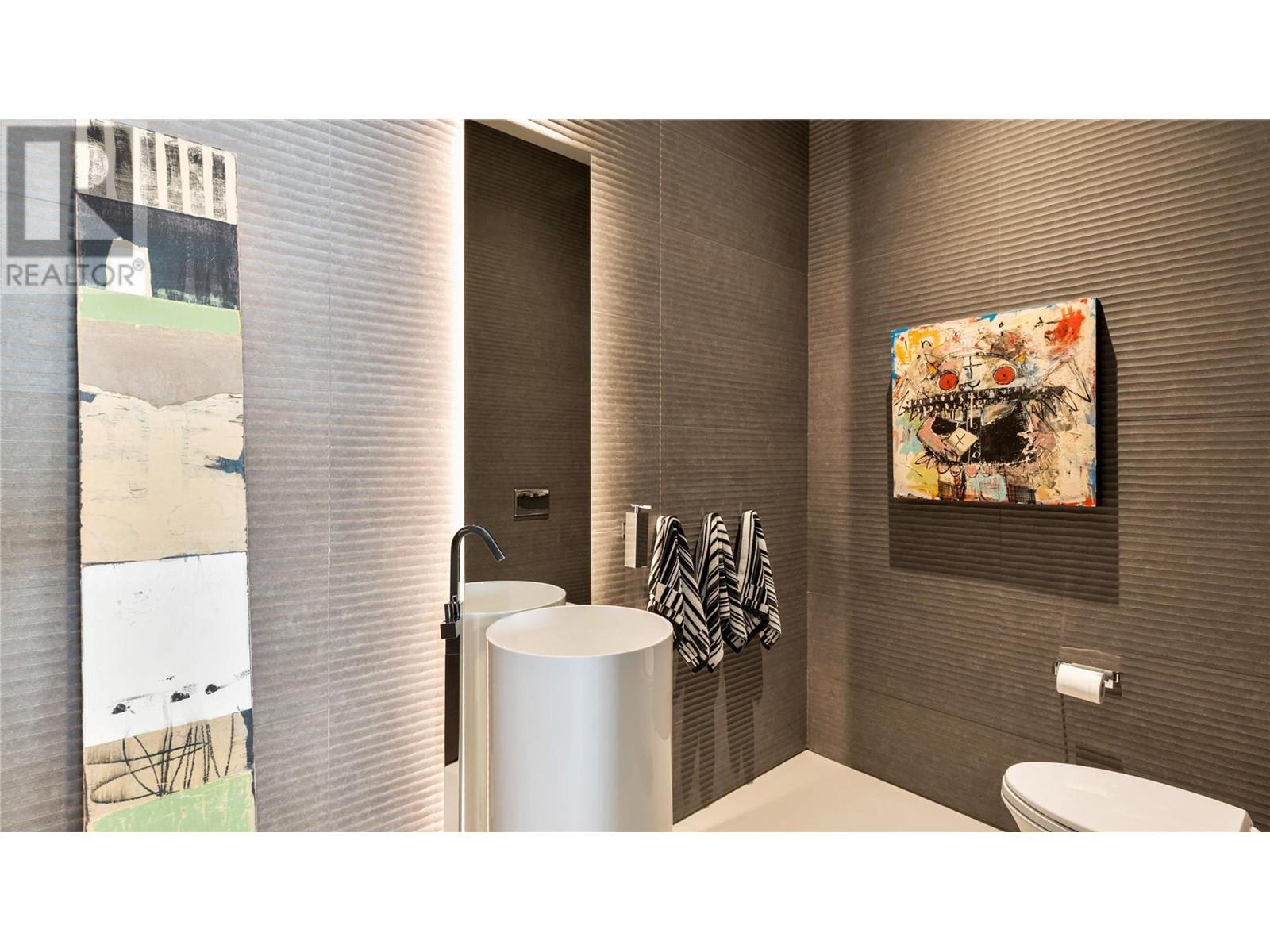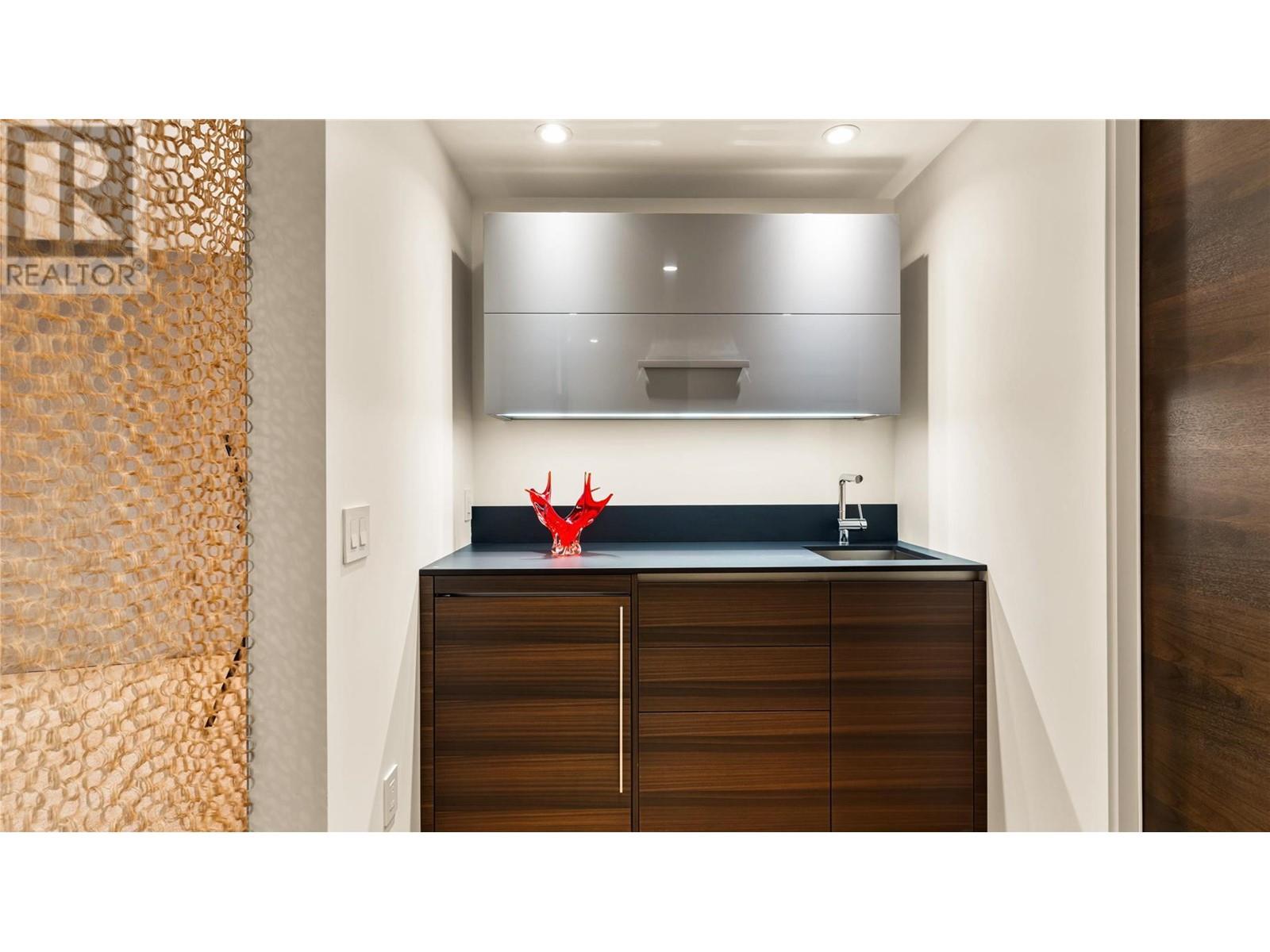 Welcome to this architectural home with world class attention to detail, in Kelowna’s exclusive enclave of Highpointe. The grand entryway greets with lush landscaping and corten steel water feature to enhance the luxurious Italian tile and polished concrete of the foyer. Immediately you are captivated by breathtaking views of the city and lake through the floor-to-ceiling windows. The main living space contains the great room which opens onto the kitchen, finished with custom Italian cabinetry and integrated Wolf & Sub-Zero appliances. The expansive patio & pool deck stretches the length of the home, providing limitless outdoor living. The primary suite is designed to take full advantage of the views, and flows seamlessly to the pool deck. Finishing this level are two more stunningly appointed bedrooms, and a large flex room perfect for a games room, bar/lounge, or gym - also with access to the pool deck. Downstairs is a stylish lounge with wet bar perfect for enjoying music and movies, plus an additional bedroom, bathroom, kitchenette, and recreation area. The entire home features radiant heated polished concrete flooring. The garage features a car elevator, which accesses the 2,690sqft finished lower level garage space, which could be customized to meet virtually any use, complete with independent heating and air filtration. This home was constructed mainly with concrete and steel, Incorporating extensive steel beams and cantilevered spaces. This masterpiece stands apart. (id:62999)