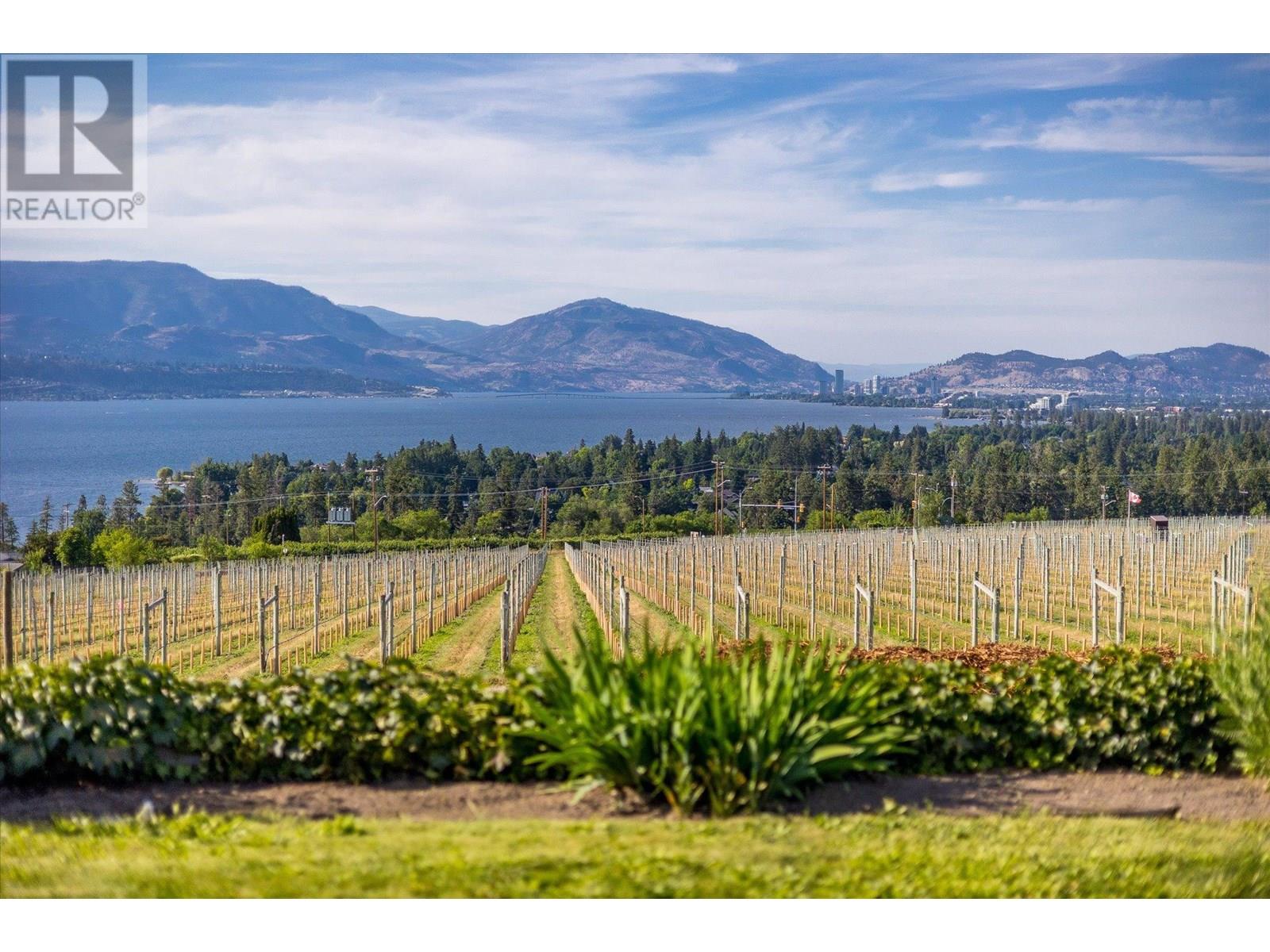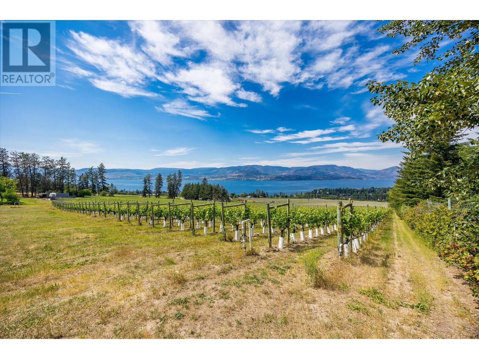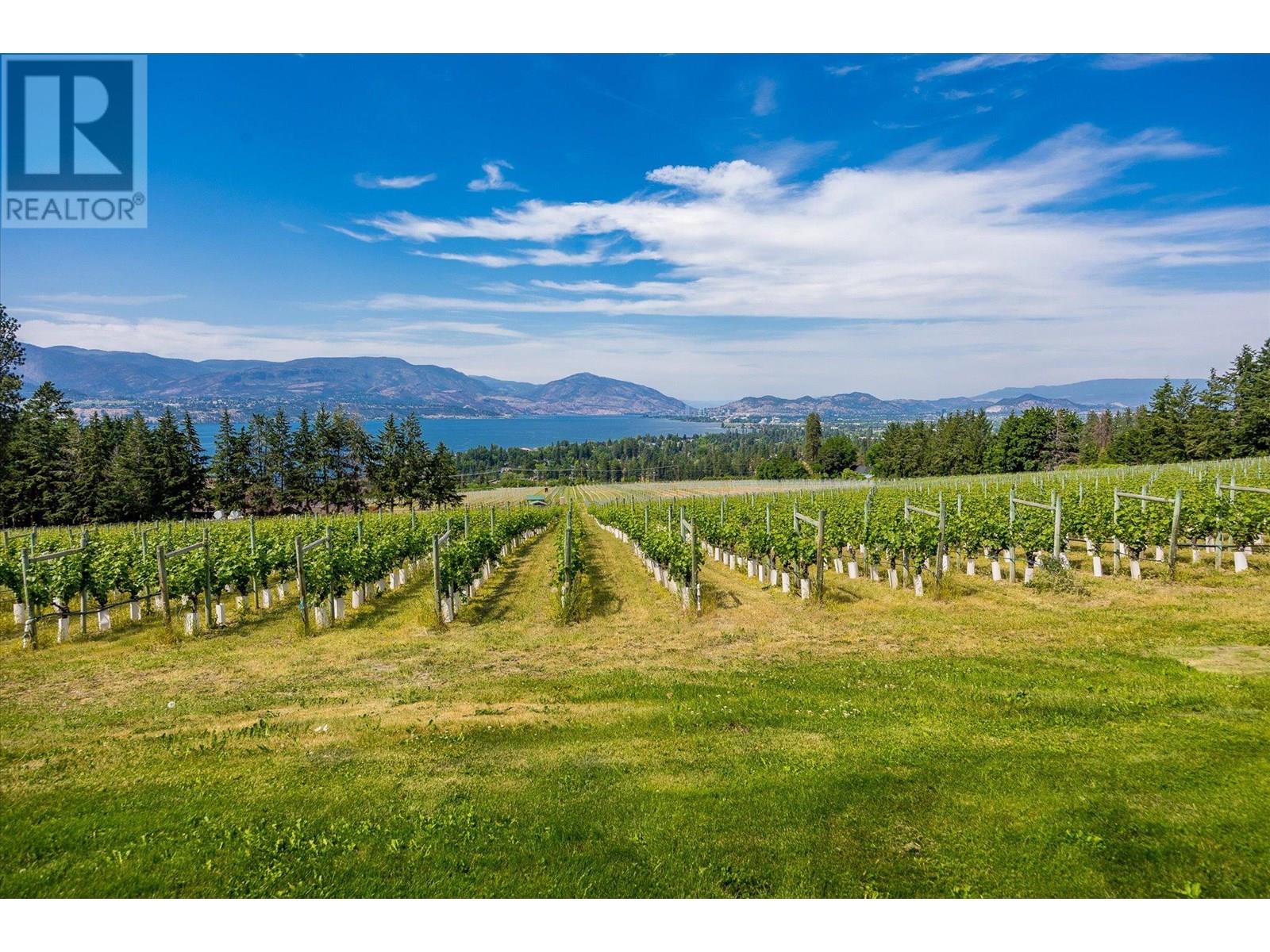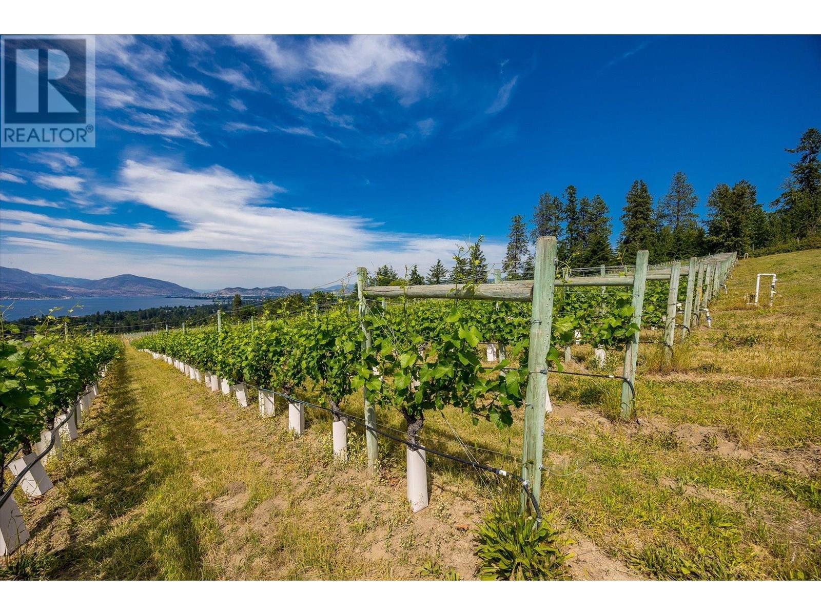 K & V Vineyards (4855 Chute Lake Rd. and 4895 Frost Rd.) is a 40-acre private estate located above Okanagan Lake, just minutes from downtown Kelowna. The property features a stunning European Craftsman residence with 7,442 SF of handcrafted living space, including 5 bedrooms, 6 bathrooms, and numerous custom details, all surrounding a spacious courtyard. An oversized garage and workshop are connected by a breezeway. The second residence is a 3,900 SF rancher with a covered backyard patio, perfect for enjoying sunset views and the natural beauty of the Okanagan. Additional structures include a renovated log cabin and a vintage red barn, adding character to the estate. The fully fenced and irrigated grounds sit on a gentle northwest-facing slope, with rows of vines aligned north-south for optimal sun exposure and mountain breezes, creating excellent growing conditions. The current plantings include 6 acres of Pinot Gris, 5 acres of Riesling, and 4 acres of Pinot Noir, established in May 2025, with plans for future plantings of Chardonnay and additional Pinot Noir. The estate is well-suited for managing and leasing to a reputable winery, offering a rare opportunity to enjoy luxurious living while operating an agricultural enterprise. (id:62999)