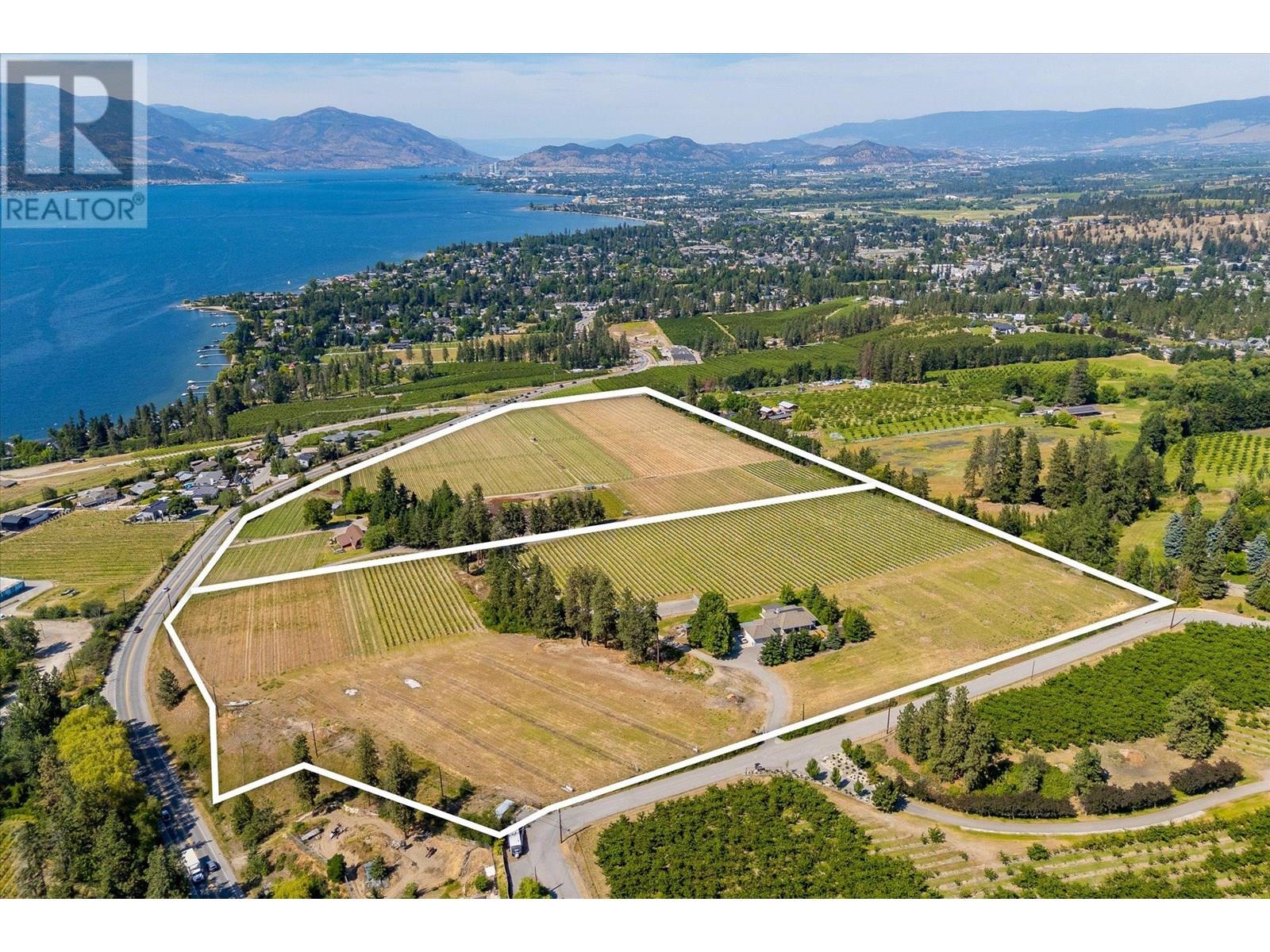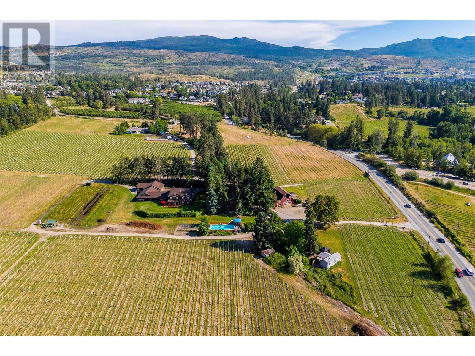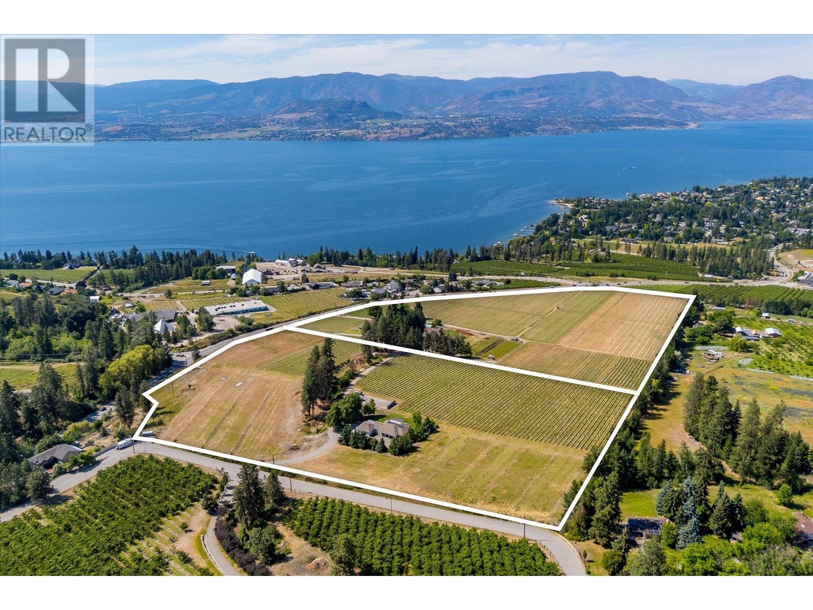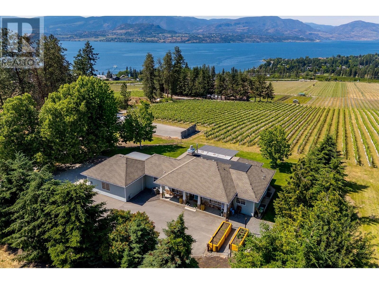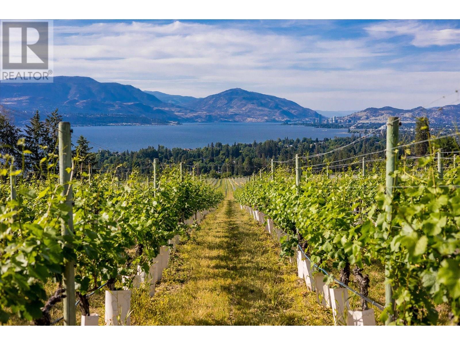 K & V Vineyards (4855 Chute Lake Rd. and 4895 Frost Rd.) is a 40-acre private estate located above Okanagan Lake, just minutes from downtown Kelowna. The property features a stunning European Craftsman residence with 7,442 SF of handcrafted living space, including 5 bedrooms, 6 bathrooms, and numerous custom details, all surrounding a spacious courtyard. An oversized garage and workshop are connected by a breezeway. The second residence is a 3,900 SF rancher with a covered backyard patio, perfect for enjoying sunset views and the natural beauty of the Okanagan. Additional structures include a renovated log cabin and a vintage red barn, adding character to the estate. The fully fenced and irrigated grounds sit on a gentle northwest-facing slope, with rows of vines aligned north-south for optimal sun exposure and mountain breezes, creating excellent growing conditions. The current plantings include 6 acres of Pinot Gris, 5 acres of Riesling, and 4 acres of Pinot Noir, established in May 2025, with plans for future plantings of Chardonnay and additional Pinot Noir. The estate is well-suited for managing and leasing to a reputable winery, offering a rare opportunity to enjoy luxurious living while operating an agricultural enterprise. (id:62999)