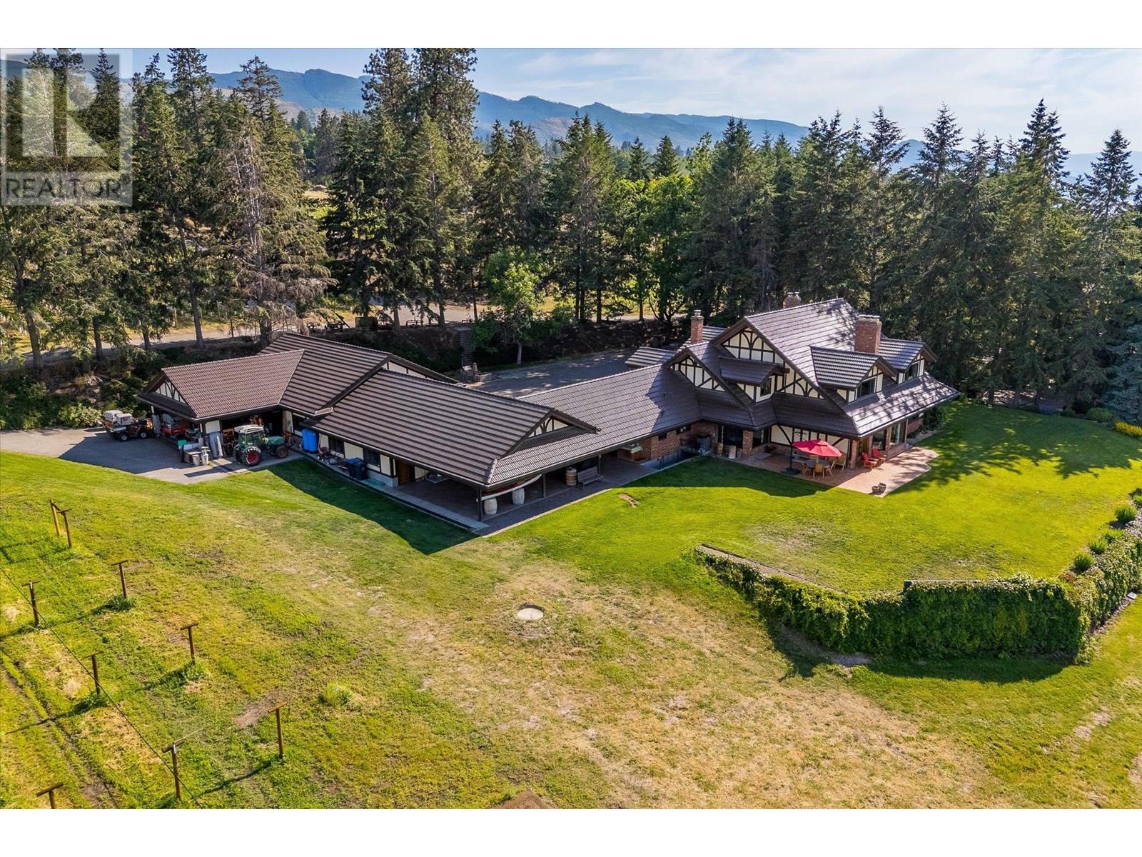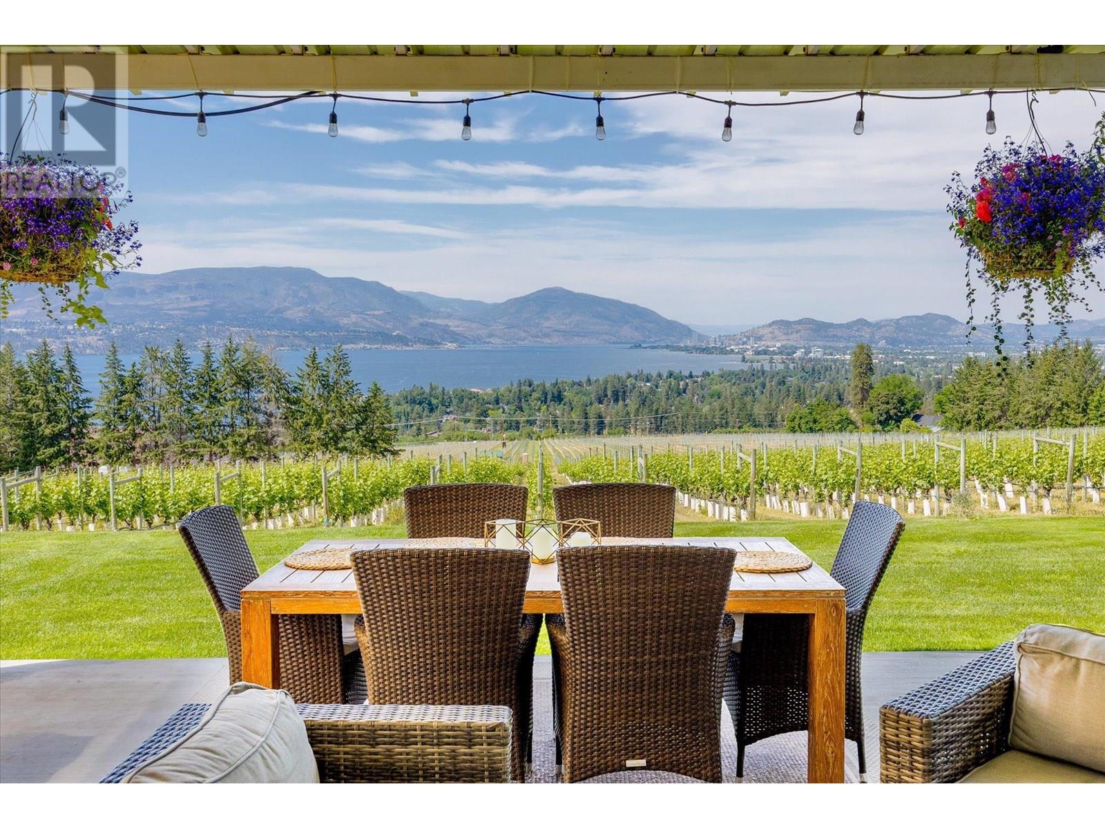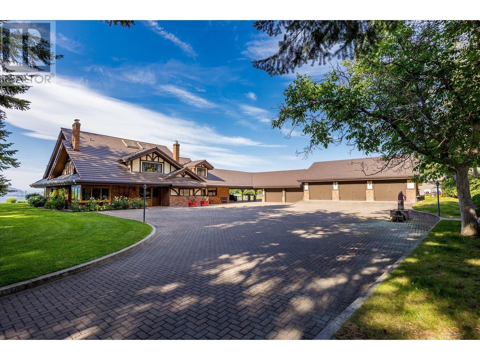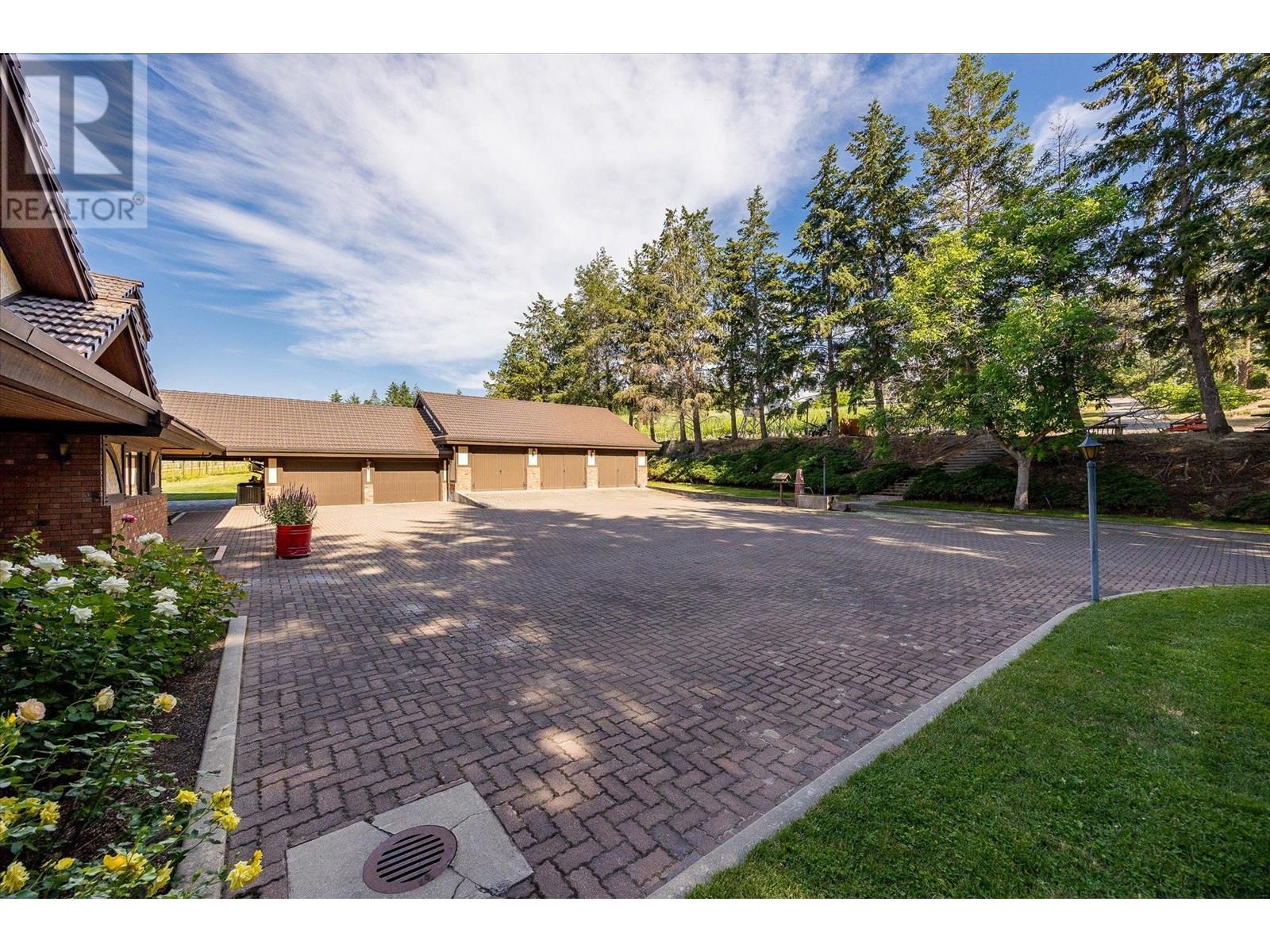 K & V Vineyards (4855 Chute Lake Rd. and 4895 Frost Rd.) is a 40-acre private estate located above Okanagan Lake, just minutes from downtown Kelowna. The property features a stunning European Craftsman residence with 7,442 SF of handcrafted living space, including 5 bedrooms, 6 bathrooms, and numerous custom details, all surrounding a spacious courtyard. An oversized garage and workshop are connected by a breezeway. The second residence is a 3,900 SF rancher with a covered backyard patio, perfect for enjoying sunset views and the natural beauty of the Okanagan. Additional structures include a renovated log cabin and a vintage red barn, adding character to the estate. The fully fenced and irrigated grounds sit on a gentle northwest-facing slope, with rows of vines aligned north-south for optimal sun exposure and mountain breezes, creating excellent growing conditions. The current plantings include 6 acres of Pinot Gris, 5 acres of Riesling, and 4 acres of Pinot Noir, established in May 2025, with plans for future plantings of Chardonnay and additional Pinot Noir. The estate is well-suited for managing and leasing to a reputable winery, offering a rare opportunity to enjoy luxurious living while operating an agricultural enterprise. (id:62999)