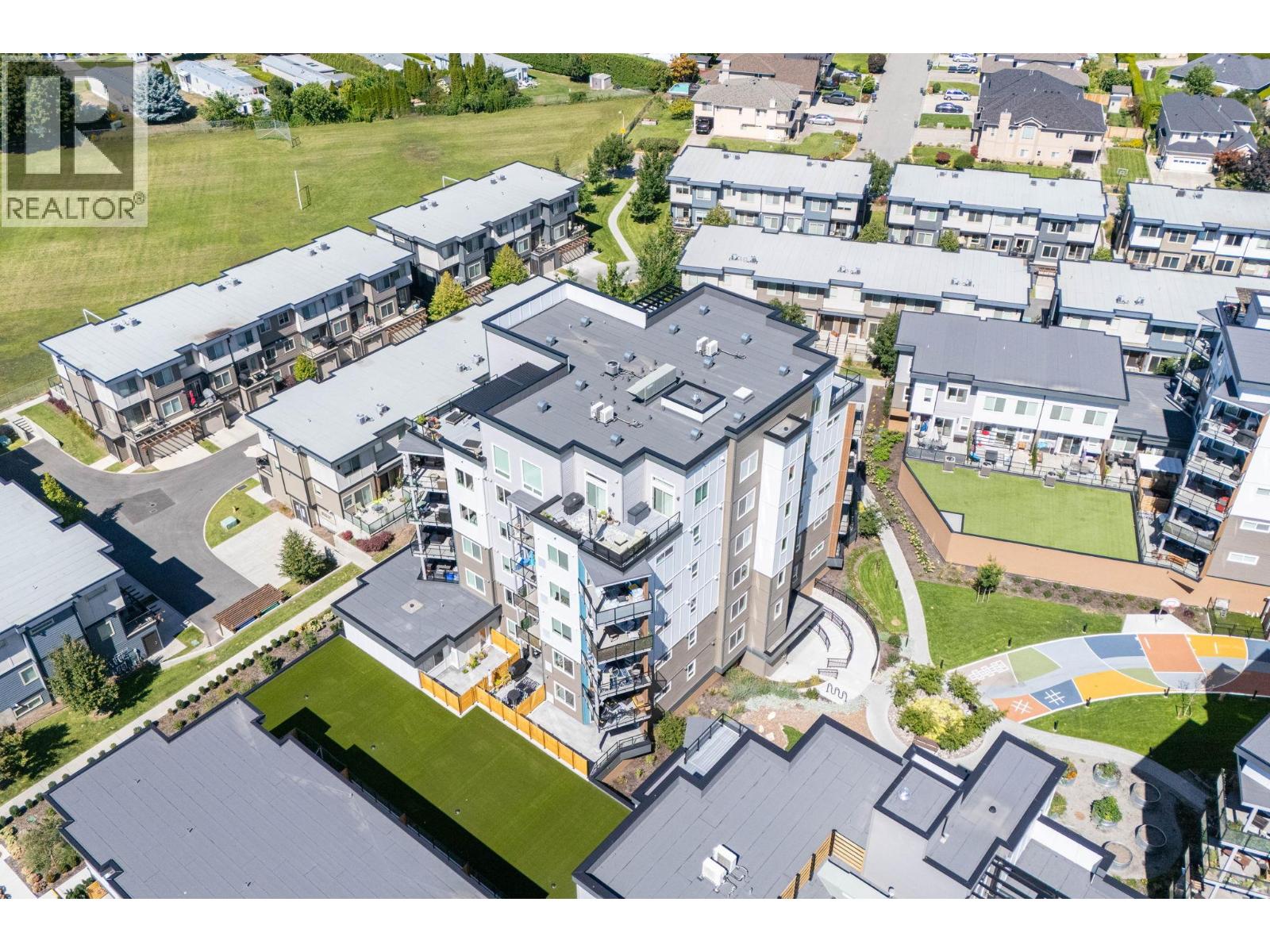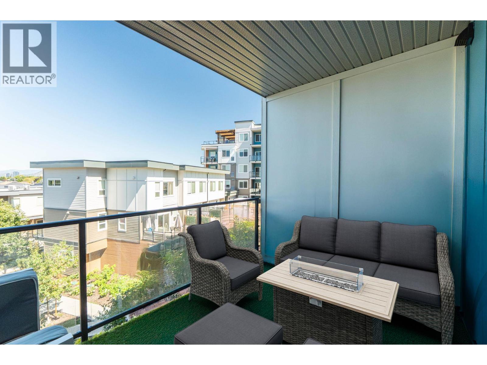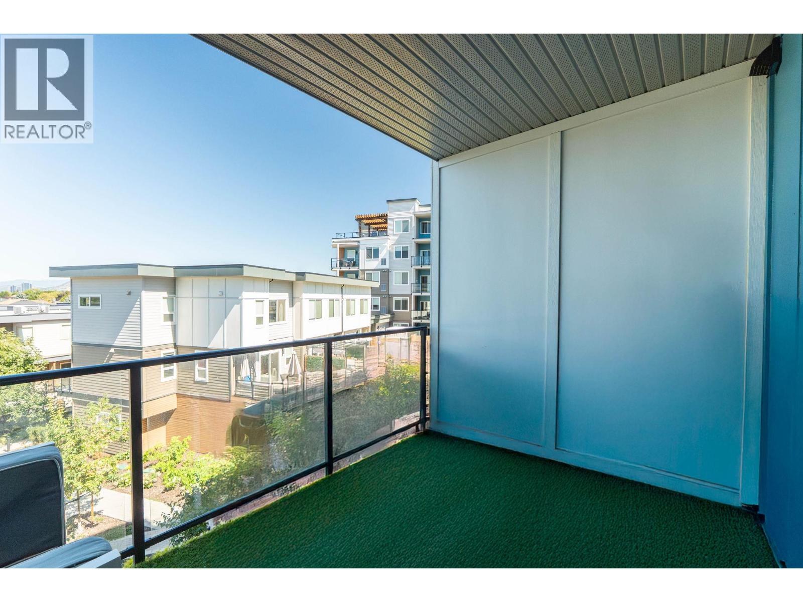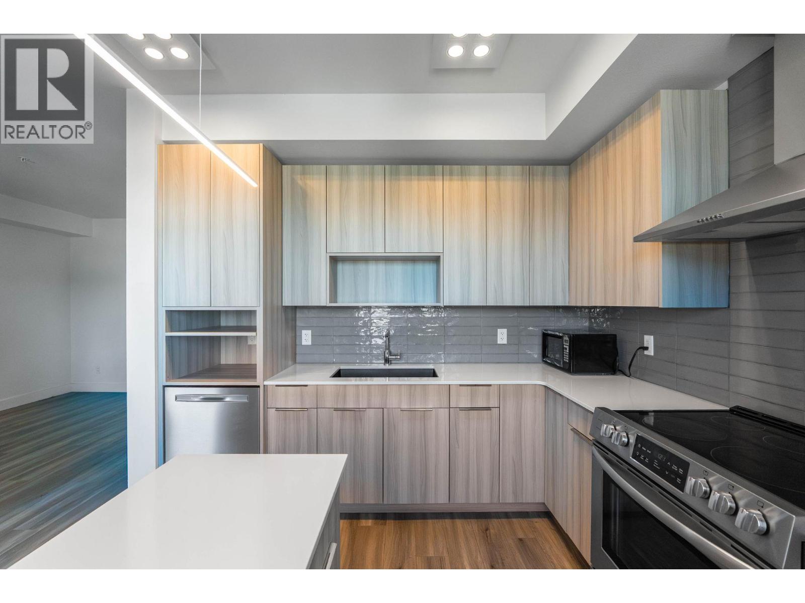 Experience the best of Lower Mission living at Green Square Vert, a 2022 year-built community. This 1-bedroom plus large den, 1-bath condo offers beautiful city and mountain views within an ultra-quiet setting. The bright, open floor plan features a modern kitchen with quartz countertops and ceiling-height cabinetry, designed for both style and function. The primary bedroom is a true retreat with a custom walk-in closet leading into a thoughtfully designed ensuite. The large den is spacious and versatile—perfect as a home office, guest room, or flex space. Step out onto your private patio, ideal for relaxing or BBQing with friends. Community amenities include a fitness centre with cardio machines and a weight rack, a kids’ playground, garden plots, dog/bike wash station, and secure bike storage. Conveniently located near grocery stores, restaurants, Gyro Beach, trails, wineries, and golf, this home perfectly blends lifestyle, comfort, and modern design. Lockbox at the front metal rail. Backed by a 2-5-10 Home Warranty for peace of mind, this home ensures lasting quality and protection. (id:62999)
