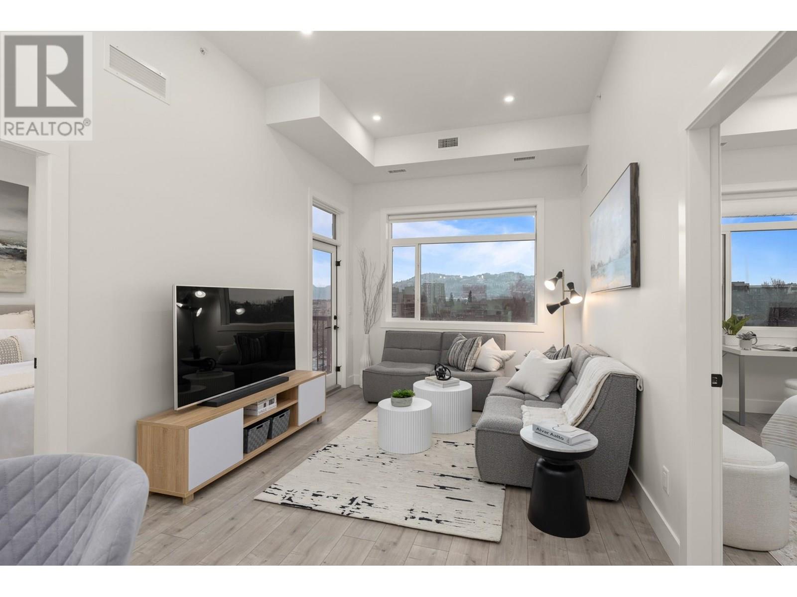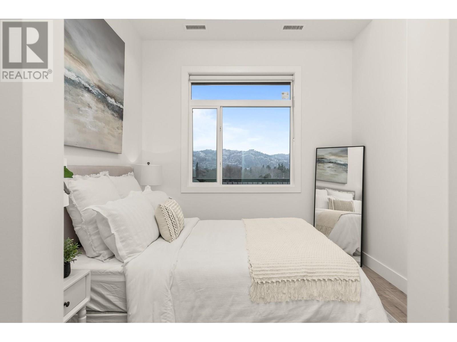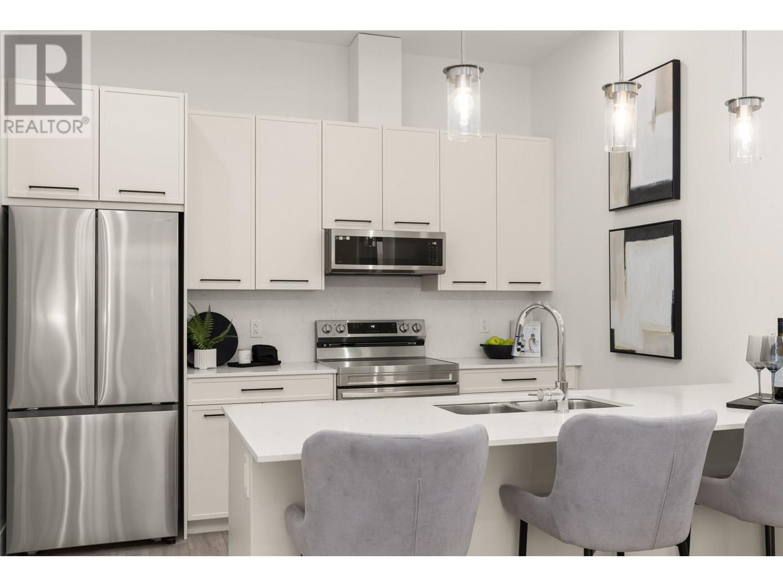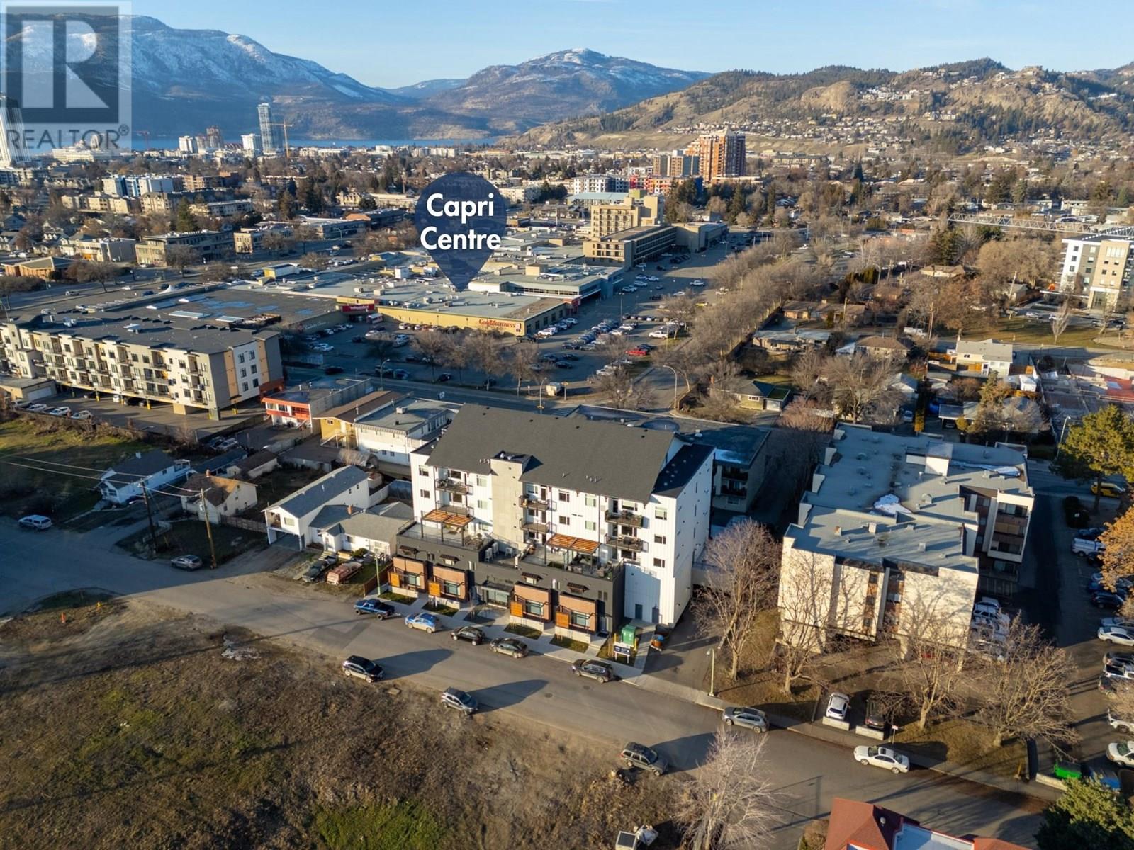 Newly constructed by VLS Developments, this award winning building is just one block from the Capri Centre (slated for redevelopment to densify and attract more shopping/amenities). Enjoy walking to grocery stores, coffee shops, restaurants, GoodLife Fitness, and more! Sutherland Avenue features a dedicated, protected bike lane connecting directly to the Landmark District and the Parkinson Recreational Centre, with a new multi-million dollar facility currently under construction. Thoughtfully designed, the building includes secure bike storage, e-bike charging, a wash and tune-up station, and a community clubroom with a kitchenette and an expansive BBQ patio. Pet-friendly policies allow up to two dogs (under 25 pounds each), two cats, or one of each —if you have just one dog, there is no size restriction. This unit comes with one dedicated and secured parking stall, and guests can take advantage of secure visitor parking or free street parking while they can! This top floor unit offers incredible views and impressive 11 foot ceilings, in a split-bedroom layout with large north-facing windows that fill the space with natural light. Each bedroom has its own walk-in closet, while the second bedroom offers the perfect setting for a home office or library. The spacious kitchen features elegant quartz countertops and backsplash, seating for three, and a sleek Samsung stainless steel appliance package. Take immediate possession! This unit has never been occupied, therefore GST is applicable. Take advantage of incentives such as a three year interest rate buy down & VTB options available from the seller. (id:62999)