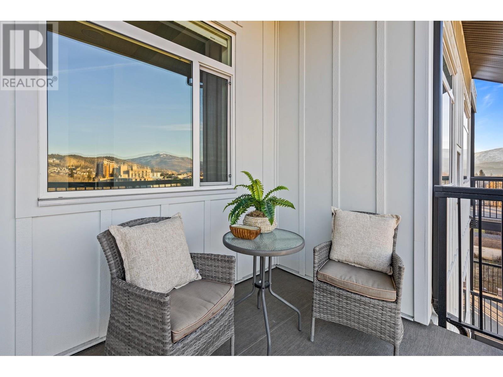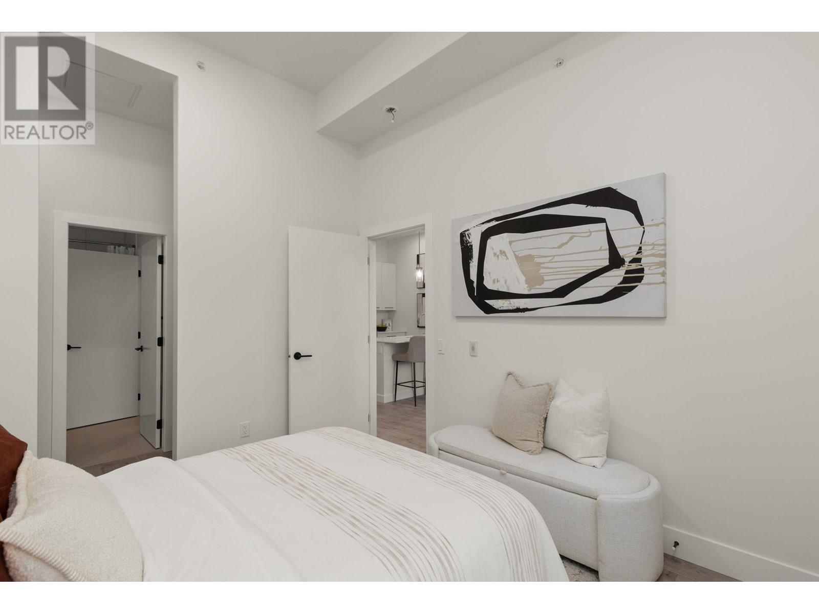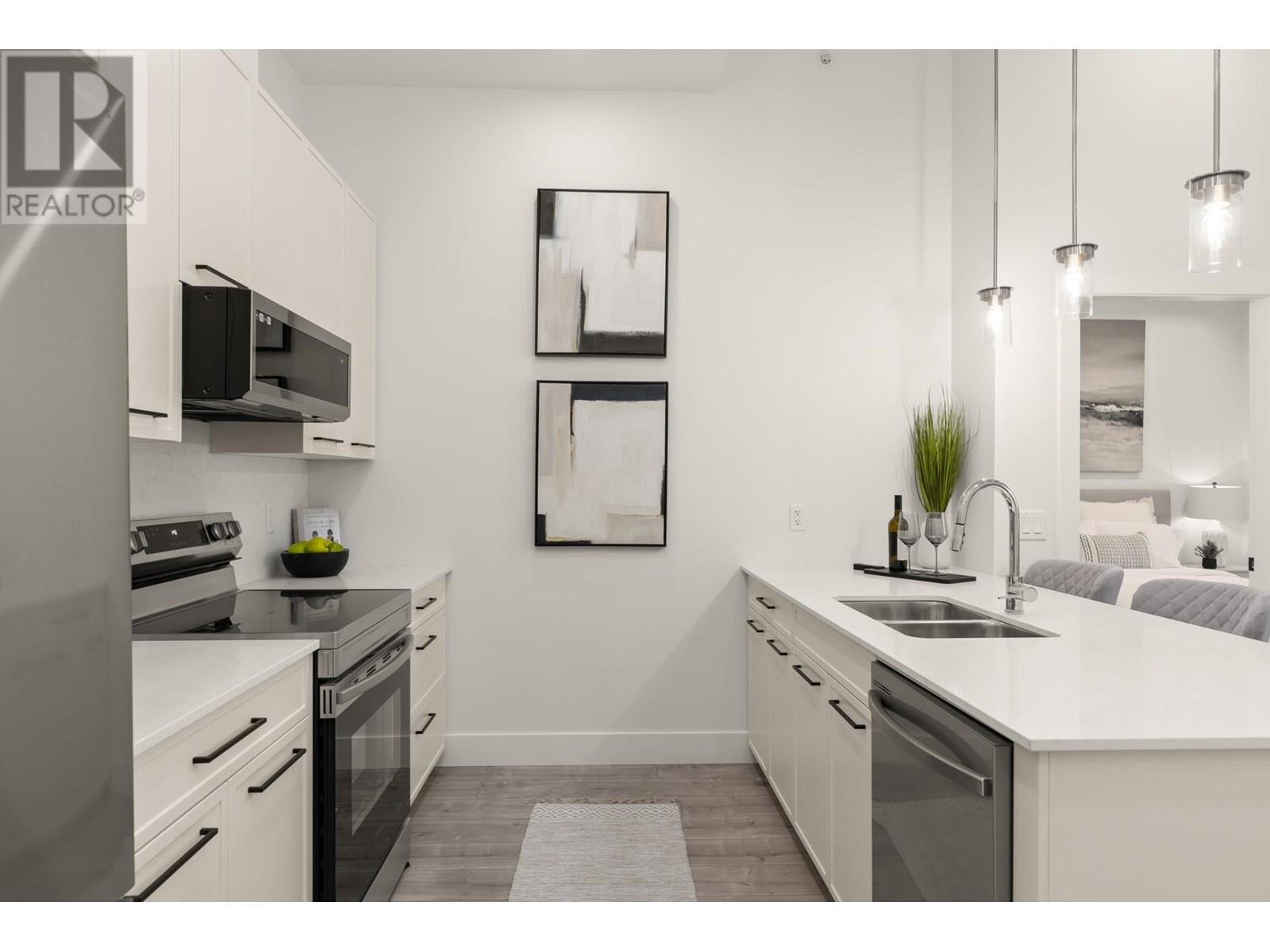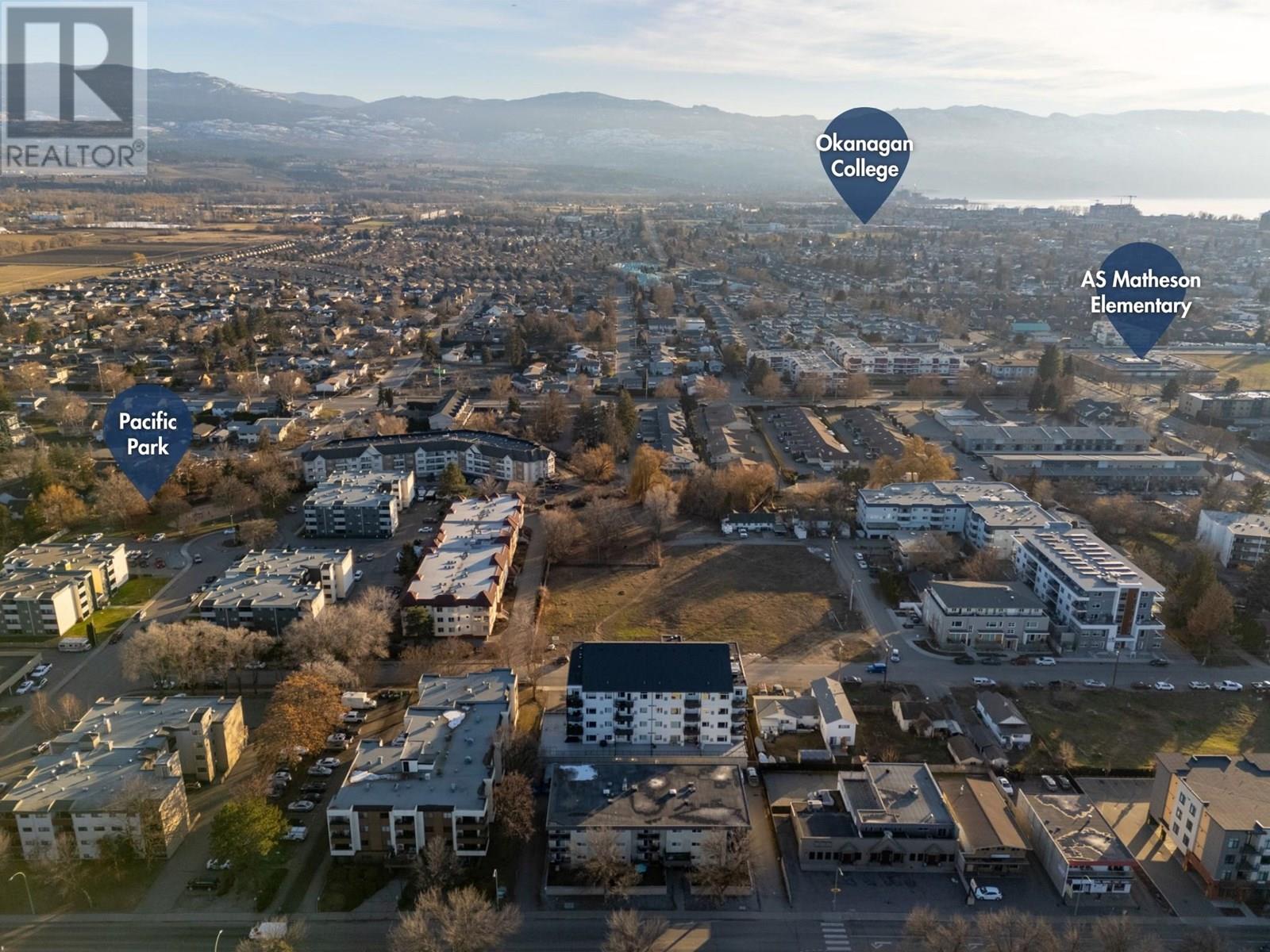 Newly constructed by VLS Developments, this award winning building is just one block from the Capri Centre (slated for redevelopment to densify and attract more shopping/amenities). Enjoy walking to grocery stores, coffee shops, restaurants, GoodLife Fitness, and more! Sutherland Avenue features a dedicated, protected bike lane connecting directly to the Landmark District and the Parkinson Recreational Centre, with a new multi-million dollar facility currently under construction. Thoughtfully designed, the building includes secure bike storage, e-bike charging, a wash and tune-up station, and a community clubroom with a kitchenette and an expansive BBQ patio. Pet-friendly policies allow up to two dogs (under 25 pounds each), two cats, or one of each —if you have just one dog, there is no size restriction. This unit comes with one dedicated and secured parking stall, and guests can take advantage of secure visitor parking or free street parking while they can! This top floor unit offers incredible views and impressive 11 foot ceilings, in a split-bedroom layout with large north-facing windows that fill the space with natural light. Each bedroom has its own walk-in closet, while the second bedroom offers the perfect setting for a home office or library. The spacious kitchen features elegant quartz countertops and backsplash, seating for three, and a sleek Samsung stainless steel appliance package. Take immediate possession! This unit has never been occupied, therefore GST is applicable. Take advantage of incentives such as a three year interest rate buy down & VTB options available from the seller. (id:62999)