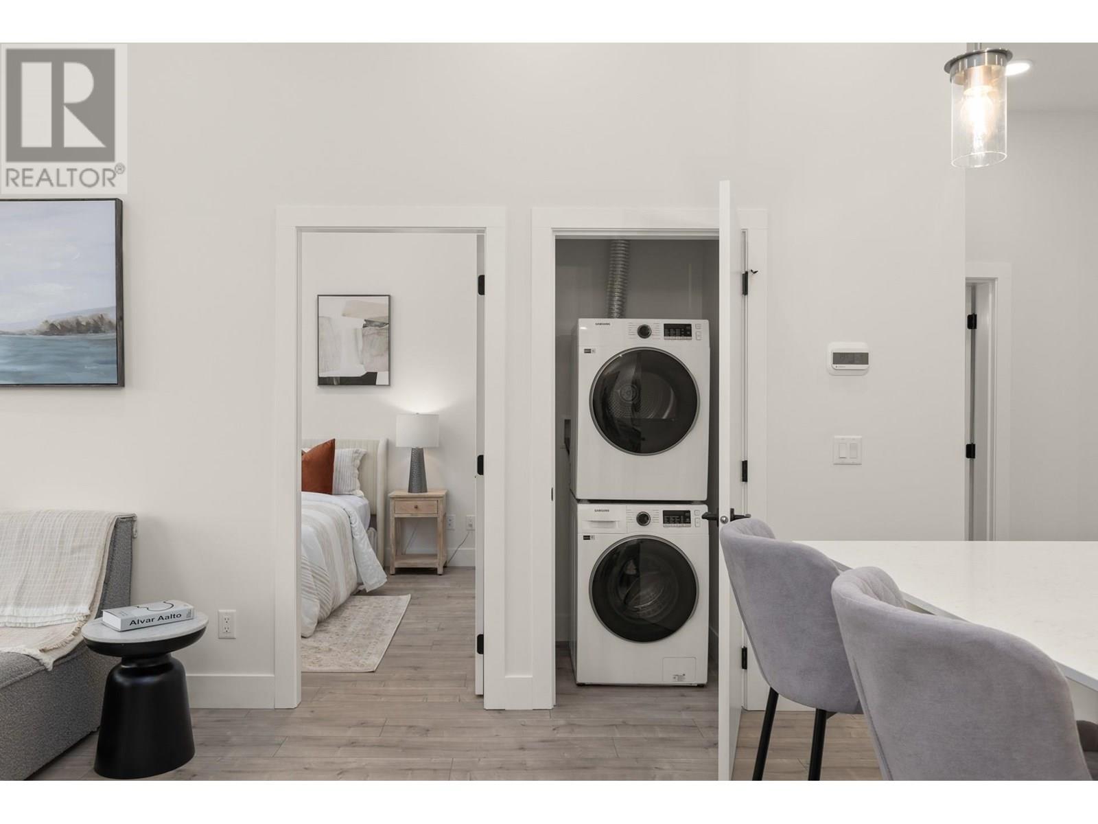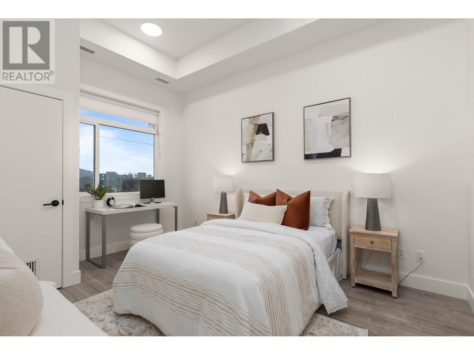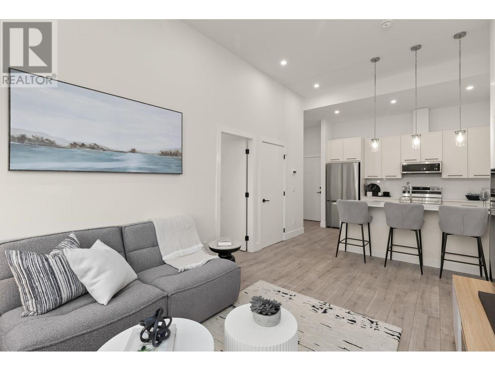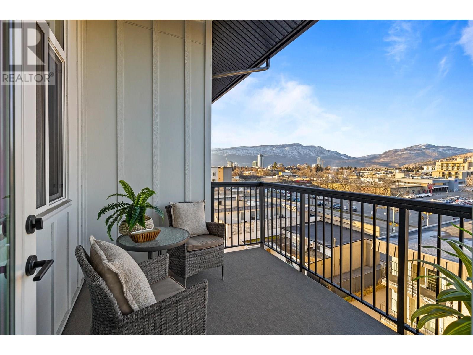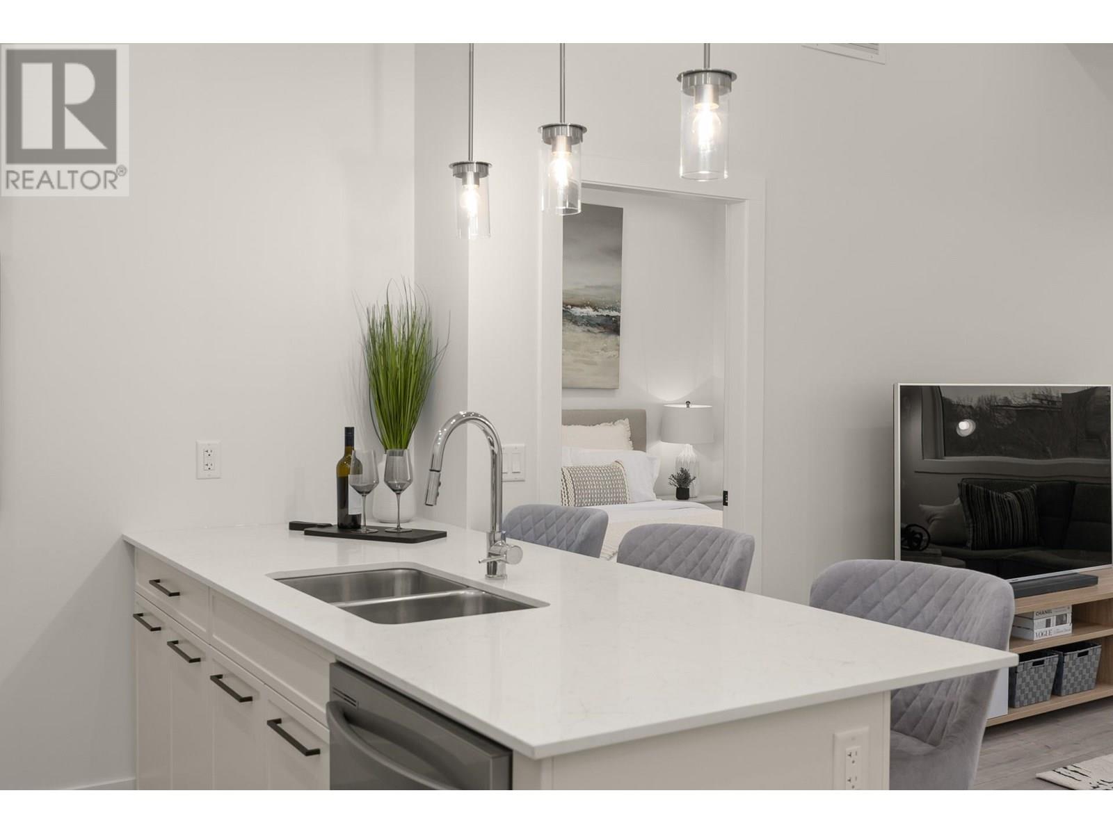 Newly constructed by VLS Developments, this award winning building is just one block from the Capri Centre (slated for redevelopment to densify and attract more shopping/amenities). Enjoy walking to grocery stores, coffee shops, restaurants, GoodLife Fitness, and more! Sutherland Avenue features a dedicated, protected bike lane connecting directly to the Landmark District and the Parkinson Recreational Centre, with a new multi-million dollar facility currently under construction. Thoughtfully designed, the building includes secure bike storage, e-bike charging, a wash and tune-up station, and a community clubroom with a kitchenette and an expansive BBQ patio. Pet-friendly policies allow up to two dogs (under 25 pounds each), two cats, or one of each —if you have just one dog, there is no size restriction. This unit comes with one dedicated and secured parking stall, and guests can take advantage of secure visitor parking or free street parking while they can! This top floor unit offers incredible views and impressive 11 foot ceilings, in a split-bedroom layout with large north-facing windows that fill the space with natural light. Each bedroom has its own walk-in closet, while the second bedroom offers the perfect setting for a home office or library. The spacious kitchen features elegant quartz countertops and backsplash, seating for three, and a sleek Samsung stainless steel appliance package. Take immediate possession! This unit has never been occupied, therefore GST is applicable. Take advantage of incentives such as a three year interest rate buy down & VTB options available from the seller. (id:62999)