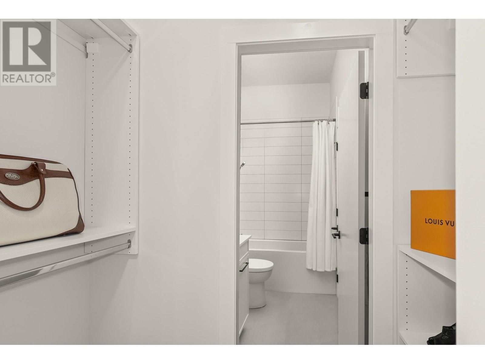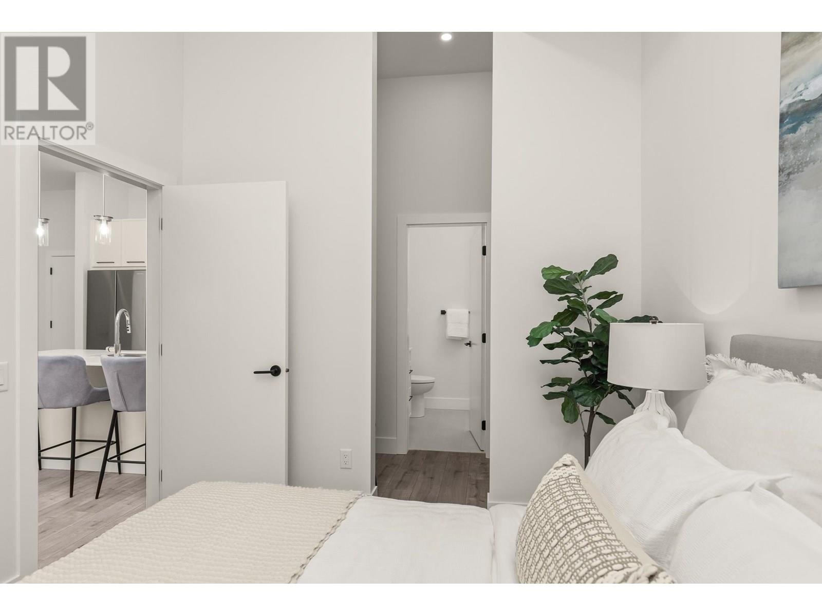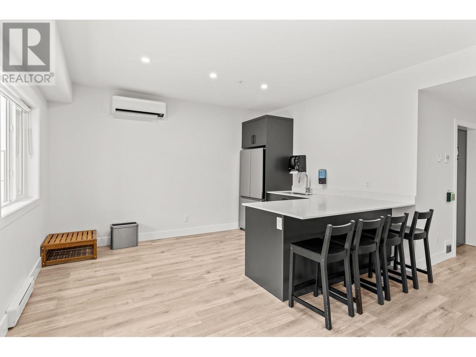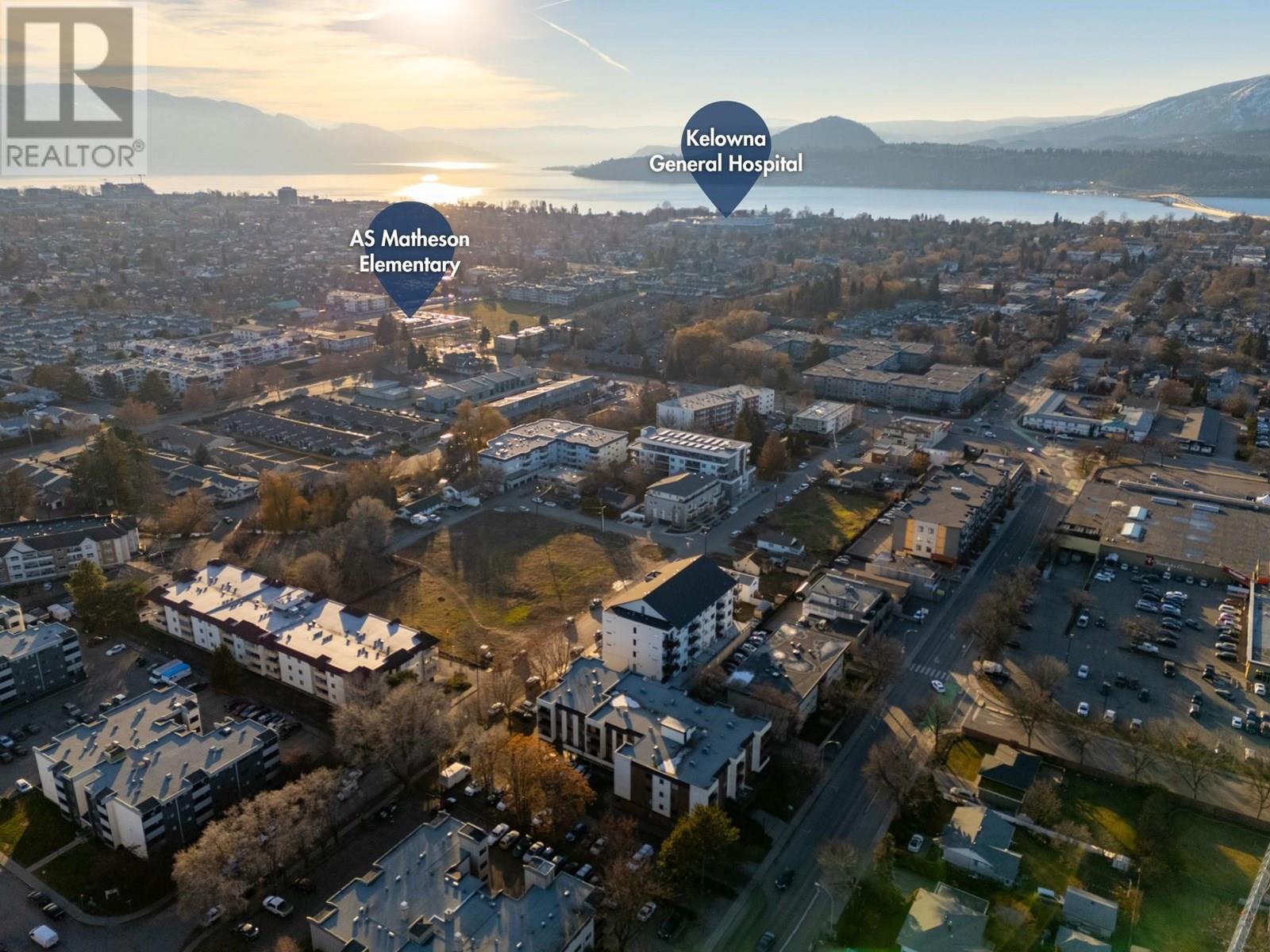 Newly constructed by VLS Developments, this award winning building is just one block from the Capri Centre (slated for redevelopment to densify and attract more shopping/amenities). Enjoy walking to grocery stores, coffee shops, restaurants, GoodLife Fitness, and more! Sutherland Avenue features a dedicated, protected bike lane connecting directly to the Landmark District and the Parkinson Recreational Centre, with a new multi-million dollar facility currently under construction. Thoughtfully designed, the building includes secure bike storage, e-bike charging, a wash and tune-up station, and a community clubroom with a kitchenette and an expansive BBQ patio. Pet-friendly policies allow up to two dogs (under 25 pounds each), two cats, or one of each —if you have just one dog, there is no size restriction. This unit comes with one dedicated and secured parking stall, and guests can take advantage of secure visitor parking or free street parking while they can! This top floor unit offers incredible views and impressive 11 foot ceilings, in a split-bedroom layout with large north-facing windows that fill the space with natural light. Each bedroom has its own walk-in closet, while the second bedroom offers the perfect setting for a home office or library. The spacious kitchen features elegant quartz countertops and backsplash, seating for three, and a sleek Samsung stainless steel appliance package. Take immediate possession! This unit has never been occupied, therefore GST is applicable. Take advantage of incentives such as a three year interest rate buy down & VTB options available from the seller. (id:62999)