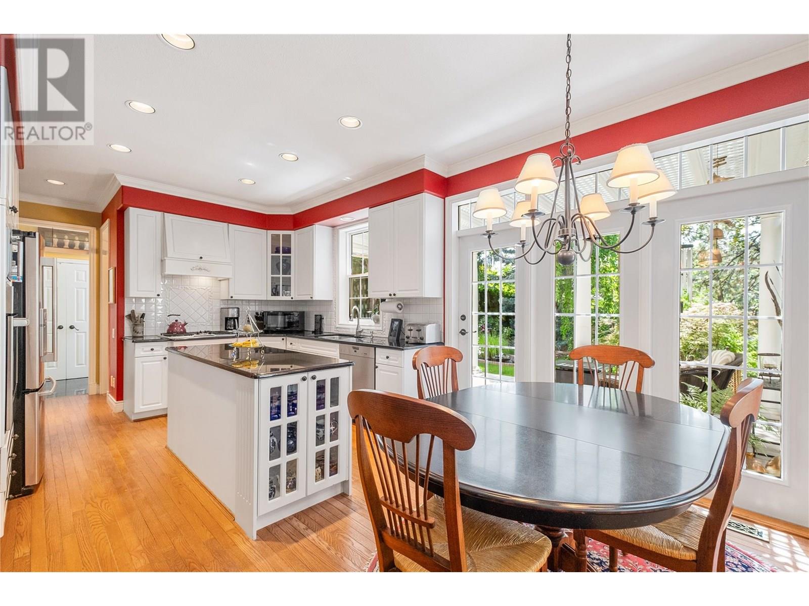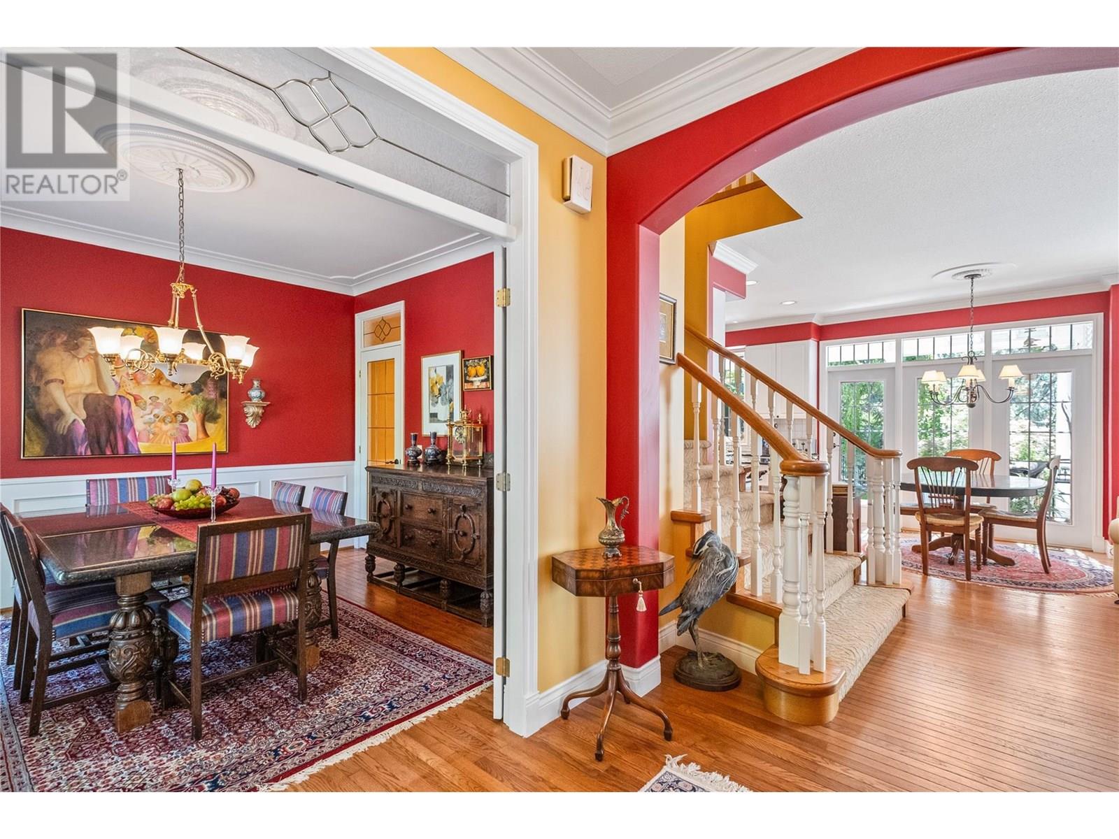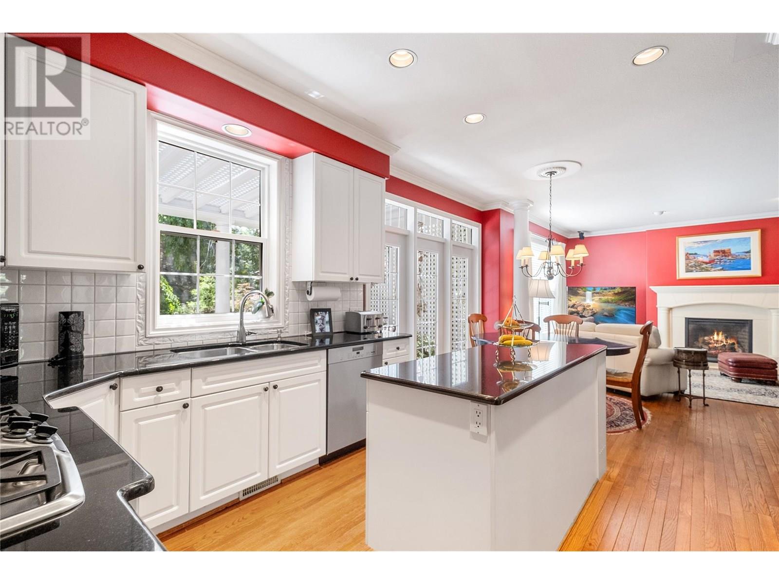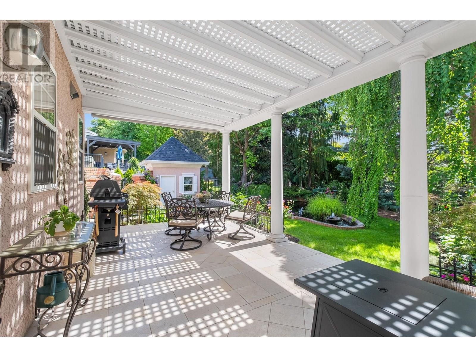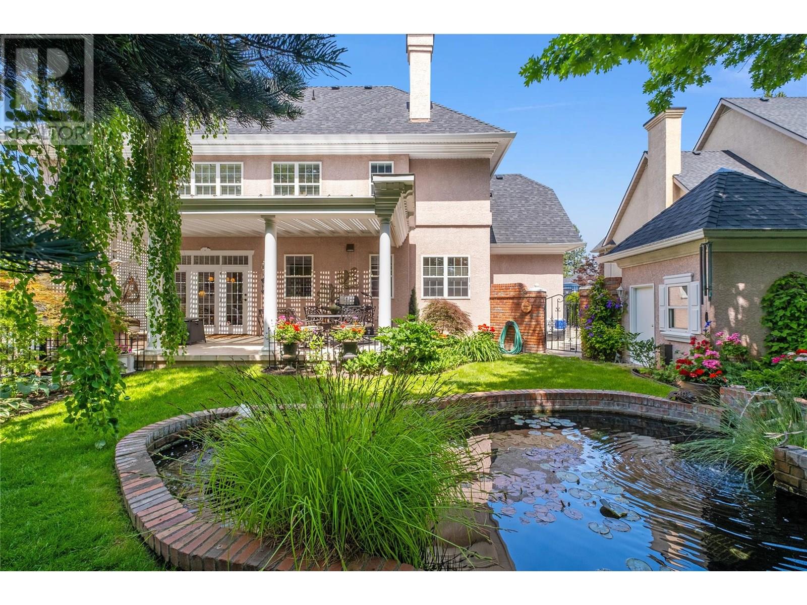 Welcome to 2087 Lillooet Court —""MUST SEE"" an elegant and impeccably maintained three-story French Provençal-style home, tucked away in a quiet cul-de-sac in the prestigious Dilworth Mountain community. Offering over 3,800 sq. ft. of bright, refined living space, this 5-bedroom, 4-bath home features four bedrooms and two full bathrooms on the upper level, including a luxurious master suite with breathtaking mountain views. The main level boasts gorgeous hardwood floors, a spacious living room, a cozy family room with a gas fireplace, and a formal dining area ideal for entertaining. The chef-inspired kitchen includes granite countertops, custom cabinetry, premium appliances, and a generous-sized island—perfect for everyday living and hosting. The walk-out lower level adds versatile space with a large family room, additional bedroom and bathroom, and suite potential—ideal for guests or multigenerational living Outside, enjoy beautifully landscaped, and a backyard complete with calming gardens, peaceful waterfalls & pond, and just off the kitchen a glass-covered patio with a gas BBQ hookup—your private oasis for relaxation and entertaining. Additional features include a welcoming wide and long driveway offering ample parking, multi-zone irrigation system, Located just minutes from downtown Kelowna, UBCO, top schools, golf courses, and renowned wineries, this exceptional property blends timeless style, comfort, and convenience. (id:62999)