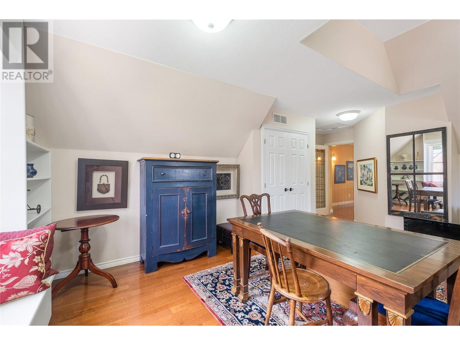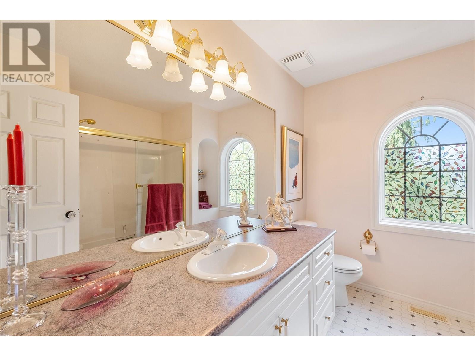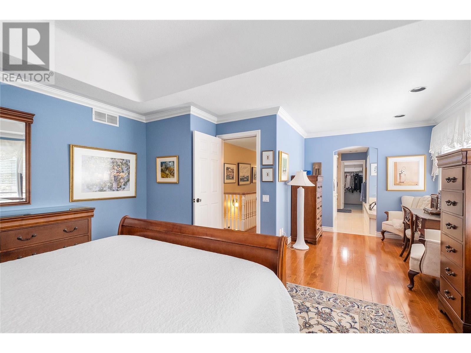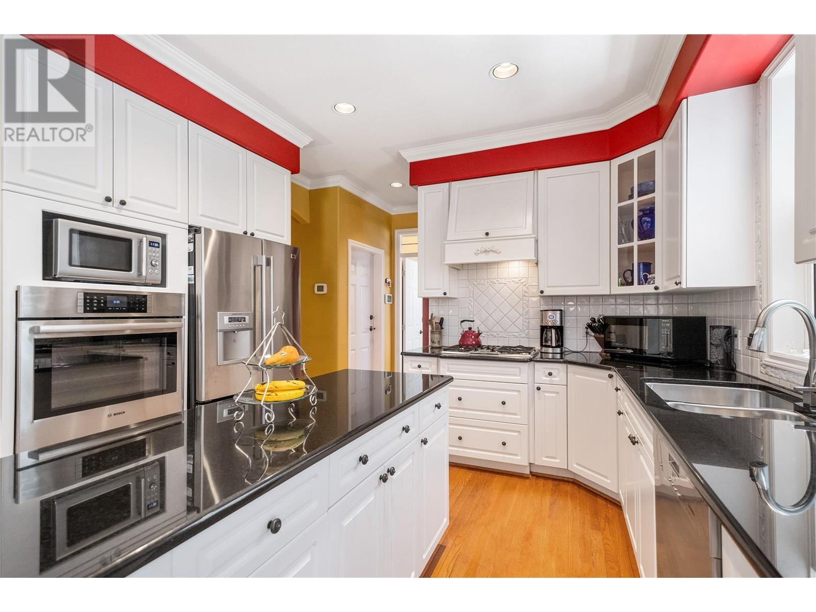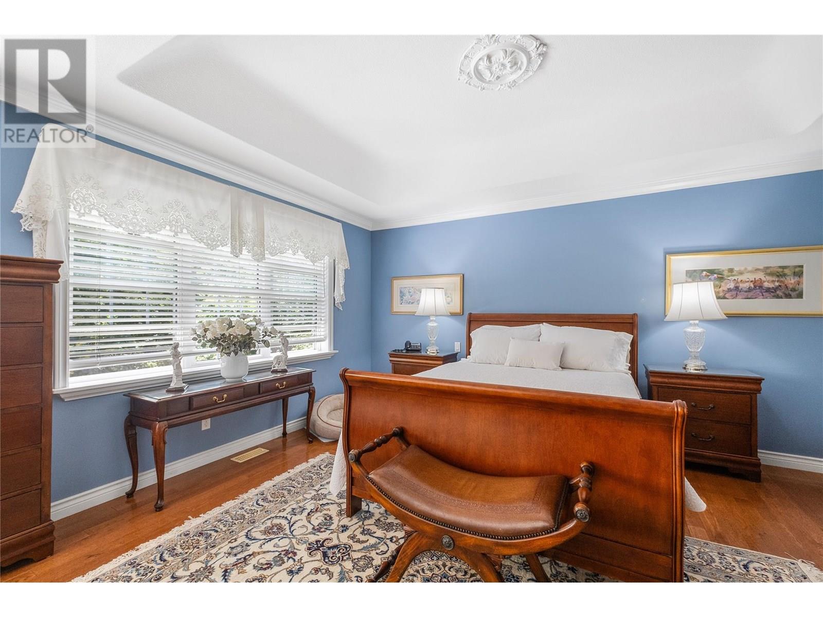 Welcome to 2087 Lillooet Court —""MUST SEE"" an elegant and impeccably maintained three-story French Provençal-style home, tucked away in a quiet cul-de-sac in the prestigious Dilworth Mountain community. Offering over 3,800 sq. ft. of bright, refined living space, this 5-bedroom, 4-bath home features four bedrooms and two full bathrooms on the upper level, including a luxurious master suite with breathtaking mountain views. The main level boasts gorgeous hardwood floors, a spacious living room, a cozy family room with a gas fireplace, and a formal dining area ideal for entertaining. The chef-inspired kitchen includes granite countertops, custom cabinetry, premium appliances, and a generous-sized island—perfect for everyday living and hosting. The walk-out lower level adds versatile space with a large family room, additional bedroom and bathroom, and suite potential—ideal for guests or multigenerational living Outside, enjoy beautifully landscaped, and a backyard complete with calming gardens, peaceful waterfalls & pond, and just off the kitchen a glass-covered patio with a gas BBQ hookup—your private oasis for relaxation and entertaining. Additional features include a welcoming wide and long driveway offering ample parking, multi-zone irrigation system, Located just minutes from downtown Kelowna, UBCO, top schools, golf courses, and renowned wineries, this exceptional property blends timeless style, comfort, and convenience. (id:62999)