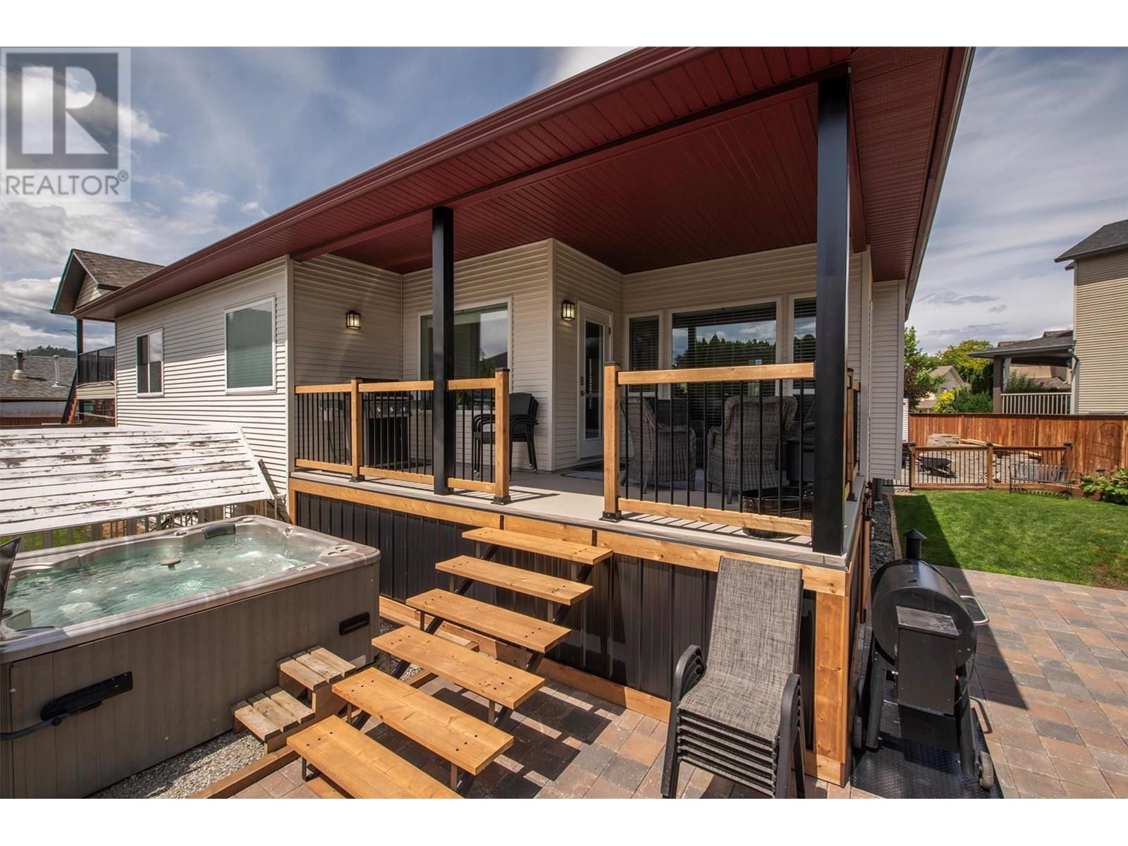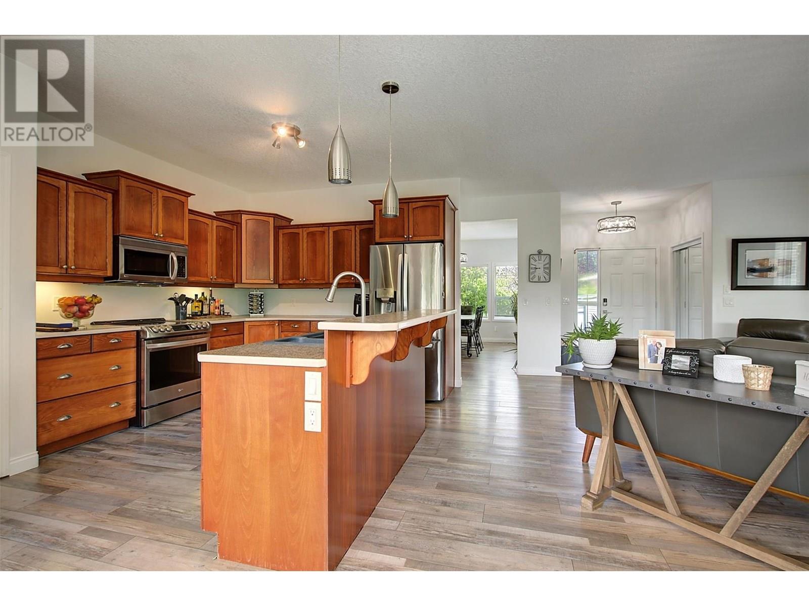 This beautifully kept, custom-built home is tucked away on a quiet cul-de-sac in the heart of Rutland, offering comfort, convenience, and plenty of space for family or extended living. The main floor features a bright open-concept layout designed for entertaining, with rich Beachwood cabinets, a large island with a granite sink, a separate pantry, a solar tube, and large windows that flood the space with natural light. You'll also find a cozy eating nook, formal dining area, family room, den/office, powder room, and a spacious primary bedroom with a walk-in closet and an ensuite with a separate tub and shower. Step outside to a large covered deck with a gas BBQ hookup overlooking the professionally landscaped, fully irrigated backyard. The bright, fully finished basement includes three bedrooms, a full bath, a kitchenette, and a spacious family room with a separate entrance—easily suitable (not legal)—plus sound insulation between floors for added comfort. A double-attached garage and a central location, close to schools, parks, shopping, and transit, make this the perfect home for families. (id:62999)