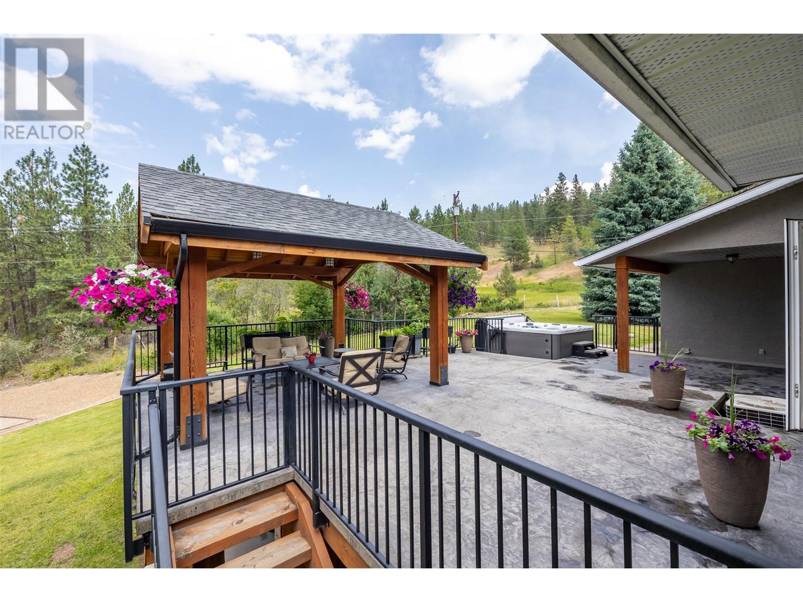 Welcome to your private paradise—an exceptional 6+ acre package nestled in nature. The walkout rancher offers well over 3,000 sq ft of thoughtfully designed living space. The main level features 3 bedrooms, including a luxurious oversized primary with a 4-piece ensuite, under cabinet lighting and a jetted rain shower. A formal dining room, cozy living area with a striking stone fireplace, and a chef’s kitchen with wall oven, quartz counters and a massive island take family gatherings to the next level. Step directly onto your stamped concrete patio, where two covered seating areas—including a custom fir pergola—and a hot tub await. Perfect for hosting or relaxing in total privacy. The walkout lower level offers a den, full bath, spacious games/rec room, gym, and ample storage, all with a wall of windows showcasing the peaceful, tree-lined yard. The fully fenced yard is a picture perfect 10/10. The property features several flat areas and provides space to create your dream lifestyle. Many other extras here including a Big Blue R/O & UV filtration system, central A/C, irrigation, new HWT, and don't forget the 4-car attached garage. Peace, privacy, and possibility await. (id:62999)
