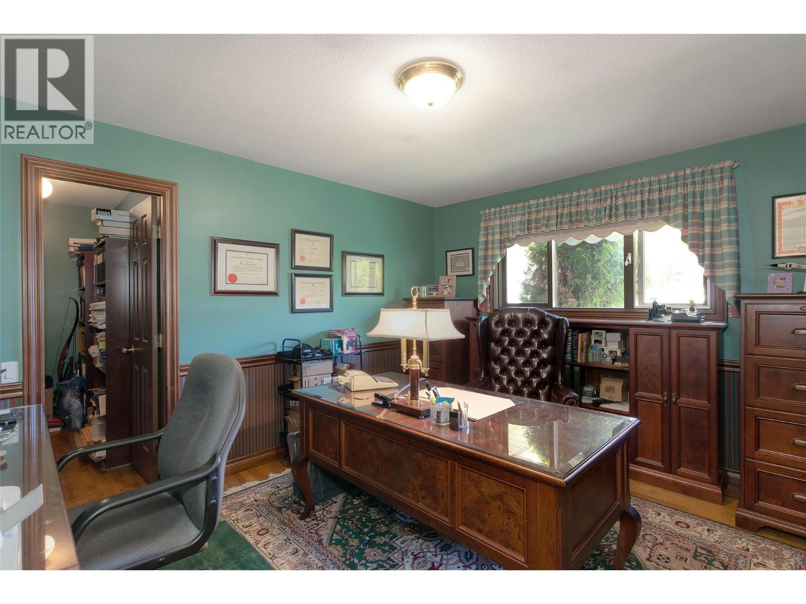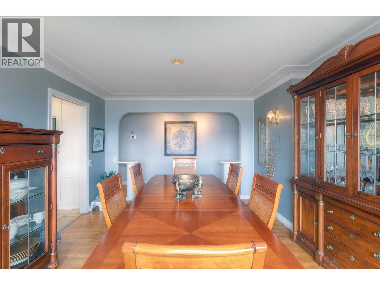 Set on a quiet cul-de-sac in the desirable Dilworth Mountain community, this spacious 4,799 sq. ft. walk-out rancher offers an exceptional blend of space, privacy, and panoramic views. Thoughtfully designed for main-level living, this immaculately maintained residence captures sweeping views of the valley, city, and surrounding mountains from nearly every principal room. The chef’s kitchen is both functional and elegant, appointed with granite countertops, soft-close cabinetry, premium KitchenAid appliances, and a charming bay-window breakfast nook. Seamless indoor-outdoor flow leads to a covered upper deck. The main floor also features a vaulted-ceiling family room with a gas fireplace, a formal dining area, a versatile office or bedroom, and a generously sized primary suite with a private 5-piece ensuite. The fully finished walk-out lower level extends the home’s appeal, offering two spacious bedrooms, a renovated bath, a large recreation room, and an impressive theatre with coffered ceilings and a private kitchenette. Outside, the covered lower patio with hot tub invites quiet relaxation, while the expansive, tiered backyard—complete with mature landscaping and underground irrigation—offers space for a future pool. Situated on a rare, oversized lot in one of Kelowna’s most coveted neighbourhoods, this home blends timeless comfort with boundless potential. Just minutes to downtown, top schools, golf, and trail networks—this is Dilworth living at its finest. (id:62999)