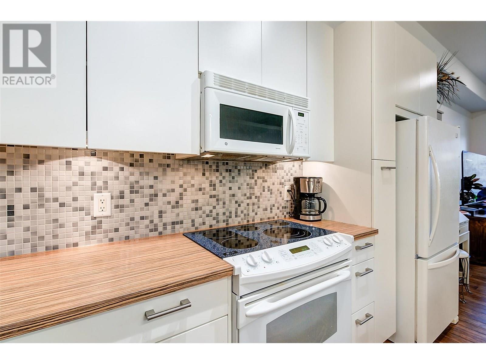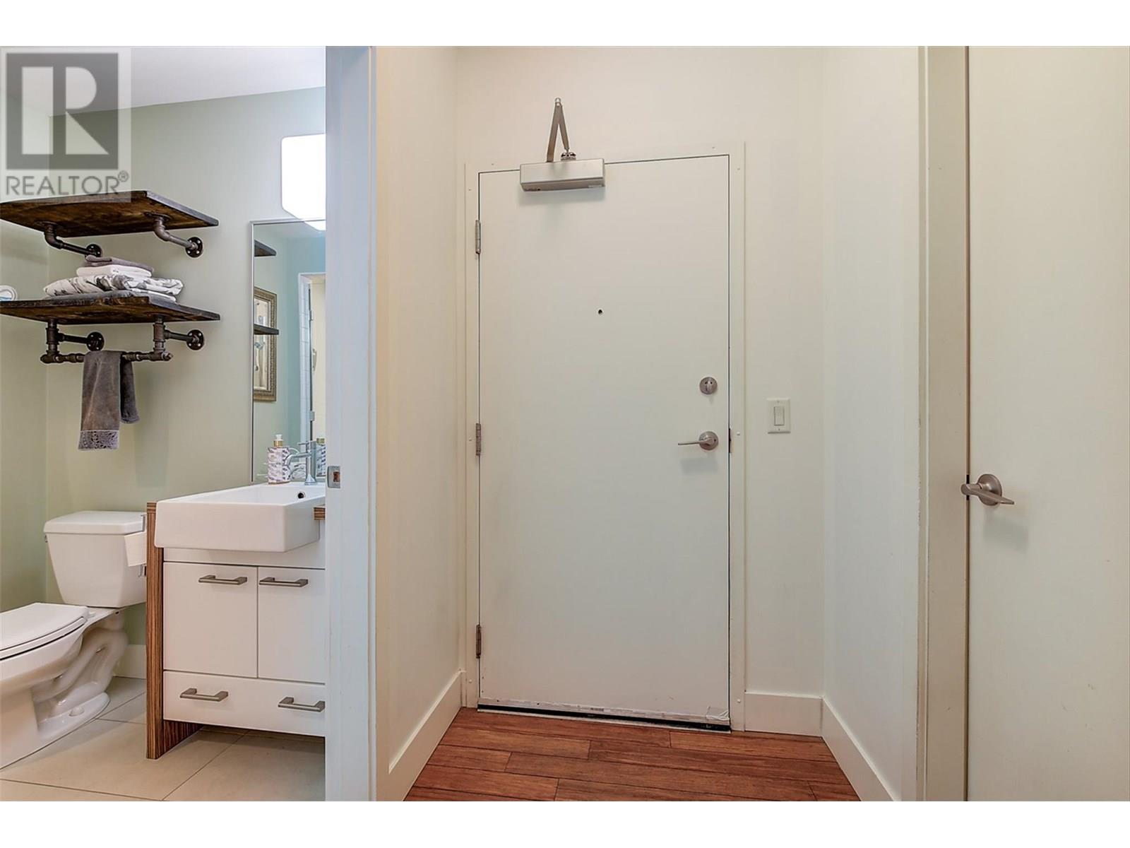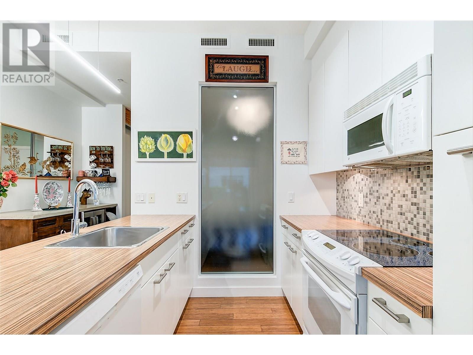 **WELCOME HOME** Live, work and play Downtown Kelowna with ownership in one of Kelowna’s only true loft buildings located in the heart of the Arts and Entertainment district. Constructed in wood frame and concrete with exterior Gullah detailing, Cannery Lofts is a mix-used development boasting an ‘Urban-Okanagan’ aesthetic that successfully explores the use of wood and concrete. Arrive home to your sanctuary of combined architectural talents that offers 9’ ceilings, a custom built-in credenza with a poured concrete countertop and wine cooler, as well as an expansive wall of windows that welcomes ample light and inspiring vistas. This 2 bedroom, 2 full bathroom unit is an immaculate and well-cared for living space situated a stones throw from the sandy shores of Lake Okanagan, world-class wineries and breweries, an international art gallery and a plethora of quaint boutiques and delectable cafes. Thoughtful energy conservation measures include: reflective laminated low E glass, high R-value construction and in-suite heat pumps. Experience why Kelowna is the preferred destination of many via the communal roof top patio~ the ideal space to bbq, entertain and experience the the phenomenal views of the Okanagan Valley. PLEASE NOTE: Cannery Lofts offers very generous rules regarding pets & rentals. Pet allowance: one dog (max 30” @ shoulder, or 2 dogs with combined shoulder height of 30” with strata approval), or 2 cats. (id:62999)