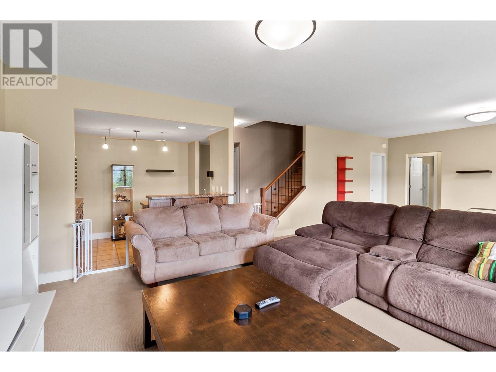 Enjoy peace and quiet with this fantastic 4 bedroom townhome that feels like a single family home. Situated at an end of the complex, this unit is in the perfect location for privacy and extra yard space. Take in the beautiful mountain and valley views from the large deck or the patio below. Access the Rail Trail from your home and take a 15 minute bike ride to the beach- or for the more adventurous, all the way to Vernon! Built in 2010, this walk out rancher features hardwood floors, 2 gas fireplaces and a 2 car garage with space to park 2 more vehicles on the driveway. The main floor boasts an open concept kitchen/dining and living area. On top of that is a gorgeous primary bedroom with walk in closet and large ensuite with bathtub, shower and 2 sinks. Completing the level is a bedroom or office and a 3 piece bathroom. Downstairs is a family games room, wet bar, 2 more bedrooms and a full bathroom. Laundry on both floors and plenty of storage space as well. (id:62999)