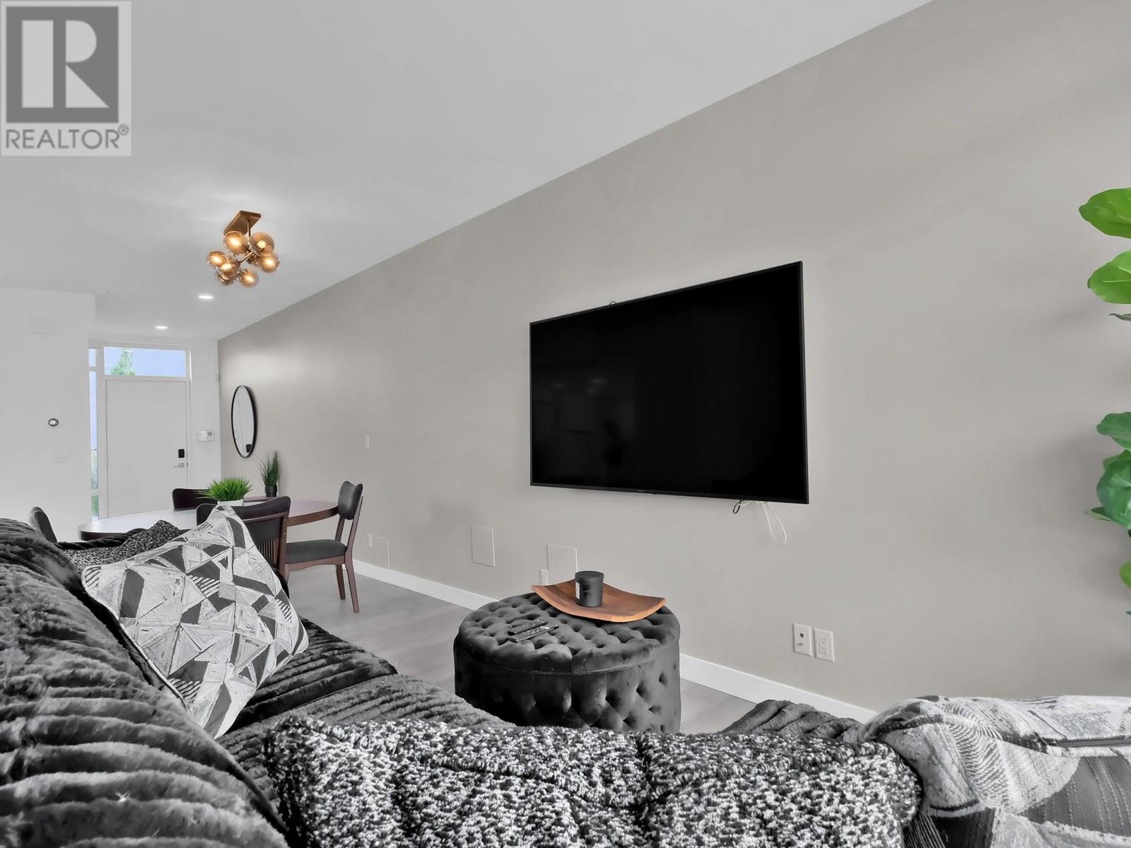 Stunning luxury townhouse in the heart of downtown, just steps from the lake and surrounded by top-tier amenities including the yacht club, coffee shops, restaurants, shopping, beaches, hiking trails, and a bird sanctuary. With a fabulous floor plan and high-end finishings throughout, this home is flooded with natural light. The gourmet chef’s kitchen boasts waterfall granite countertops, soft-close cabinetry, and a beverage center with bar fridge. The open-concept living and dining area extends to a private patio overlooking a tranquil water feature—perfect for BBQs and entertaining. Upstairs, the king-sized primary suite offers mountain views, a walk-in closet, and a spa-inspired ensuite with a soaker tub, walk-in glass shower, and double vanity. Two additional bedrooms, a full bathroom, and a convenient laundry area complete the upper level. This home offers the convenience of two parking stalls, one underground and one uncovered, along with being pet-friendly ( 2 pets with max of 50 lbs each). It's ideally situated in a highly sought-after, walkable downtown location, providing ideal urban living! (id:62999)