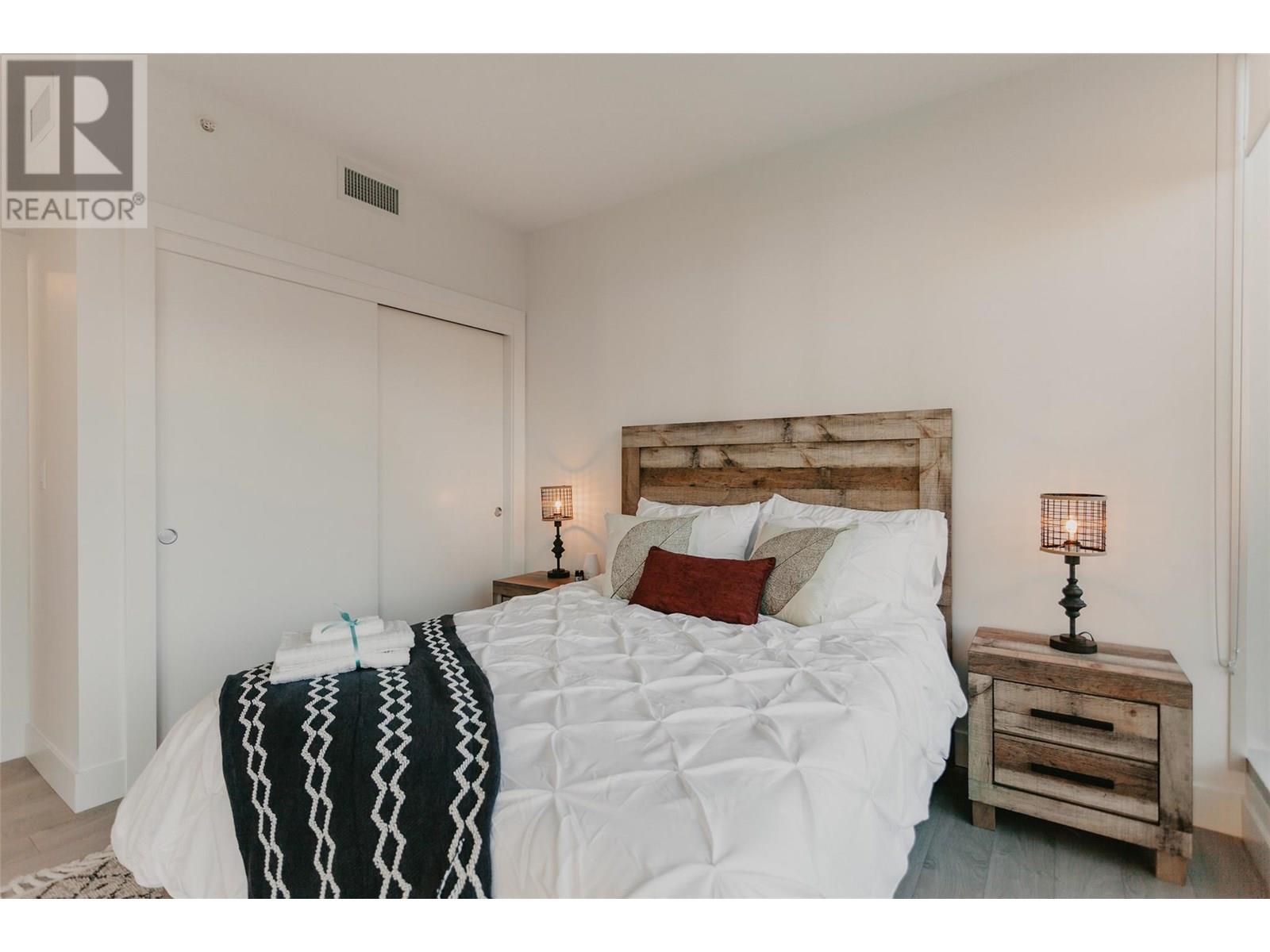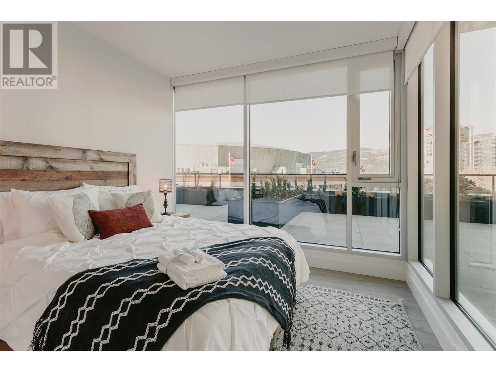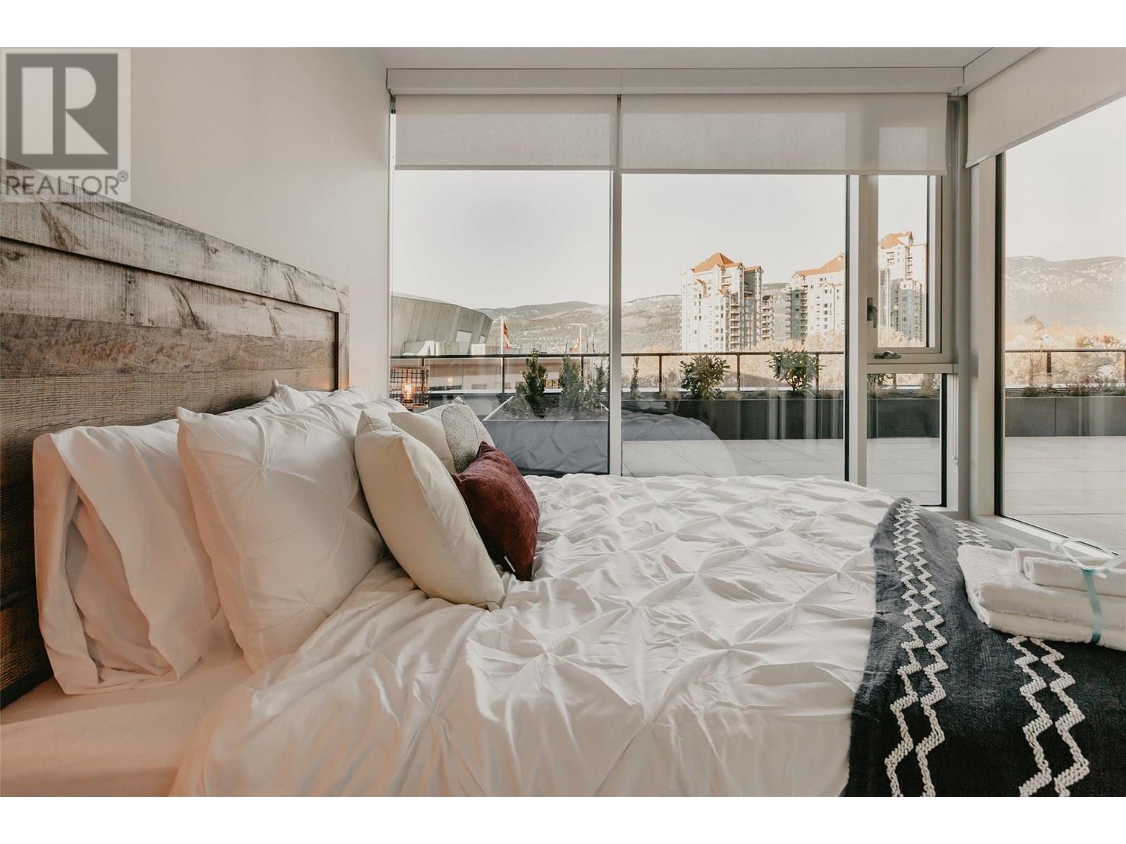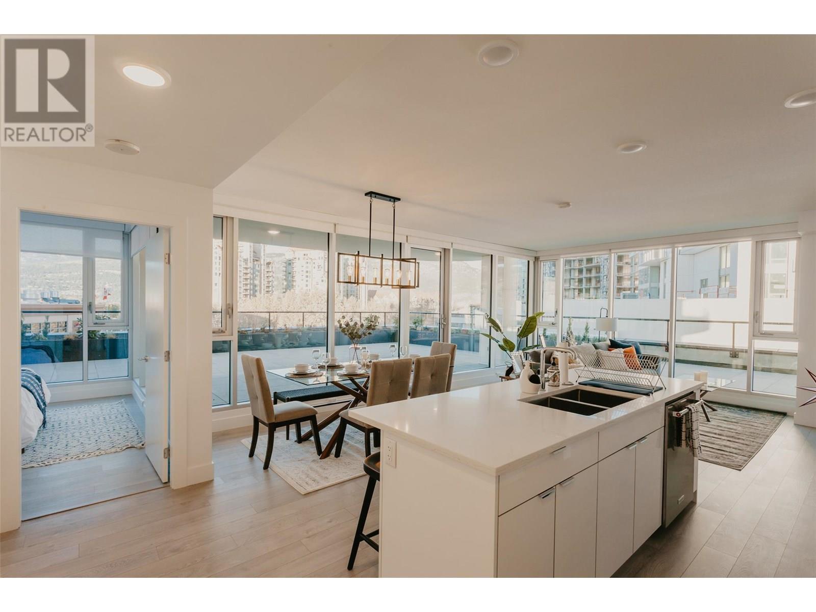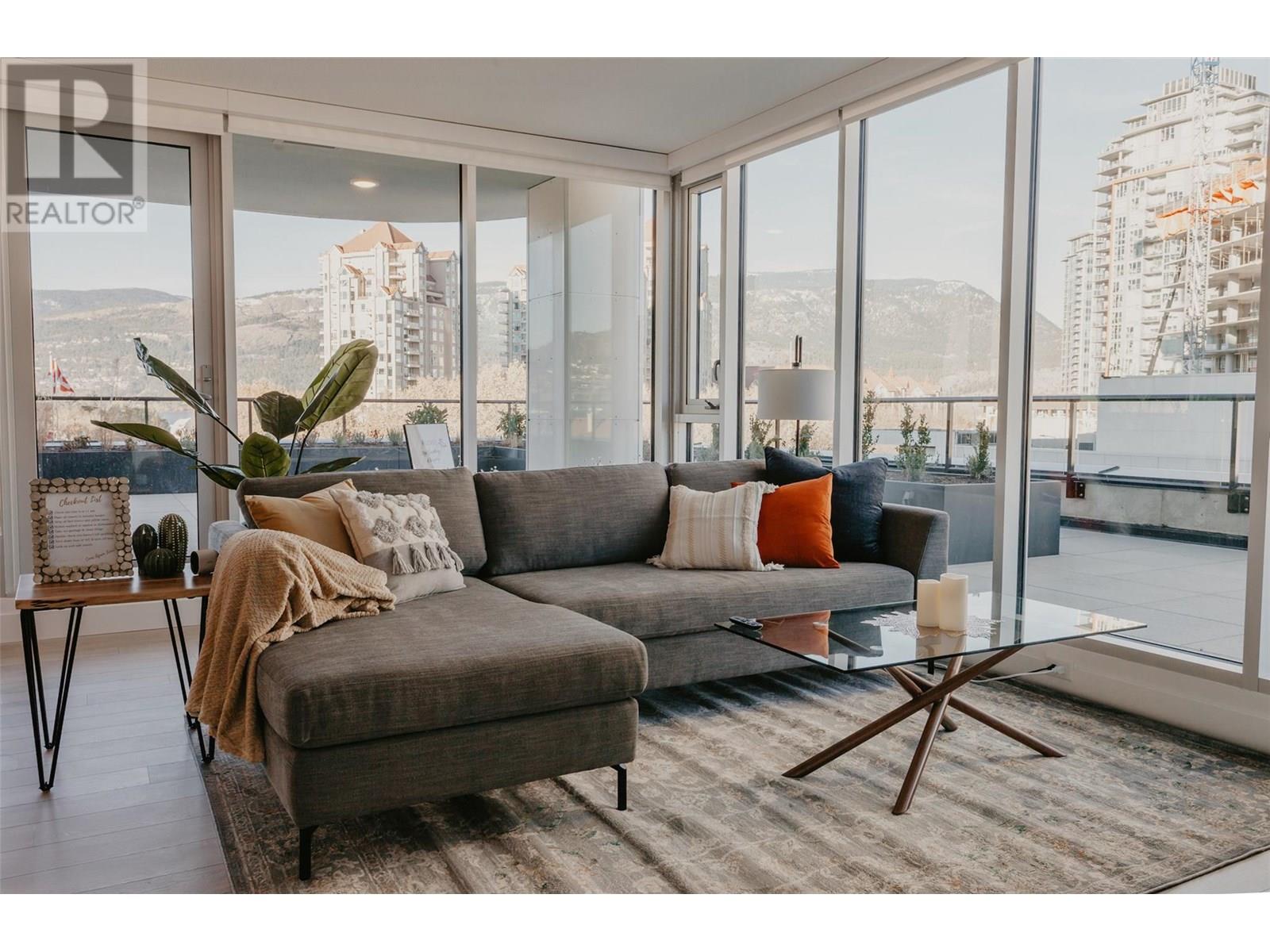 UNWIND. ENTERTAIN. REPEAT. | For those that trades weekends away for evenings on the patio, this is home. A modern 2 bed + den CORNER HOME in the heart of downtown Kelowna with clean lines, floor-to-ceiling windows, and a RARE HUGE PRIVATE PATIO - that changes everything. Lounge with a coffee, host friends for dinner, sip something cold under the stars, or stretch out in the sunshine, this space turns every day into a vibe. Inside, the layout flows effortlessly: two spacious bedrooms, a versatile den for your WFH setup, reading nook, or Peloton zone, and a sleek kitchen designed for real life and elevated hosting. Natural light floods the living space, while in-suite laundry, durable modern finishes, and secure building access make things easy. Outside your door? Everything Kelowna offers is within reach, walk to the lake, brunch spots, yoga studios, wine bars, breweries, boutiques, concerts, and the boardwalk. This is the perfect blend of low-maintenance luxury, lifestyle freedom, and downtown energy. Whether you’re downsizing with intention or upgrading your every day. THIS IS THE ONE. (id:62999)