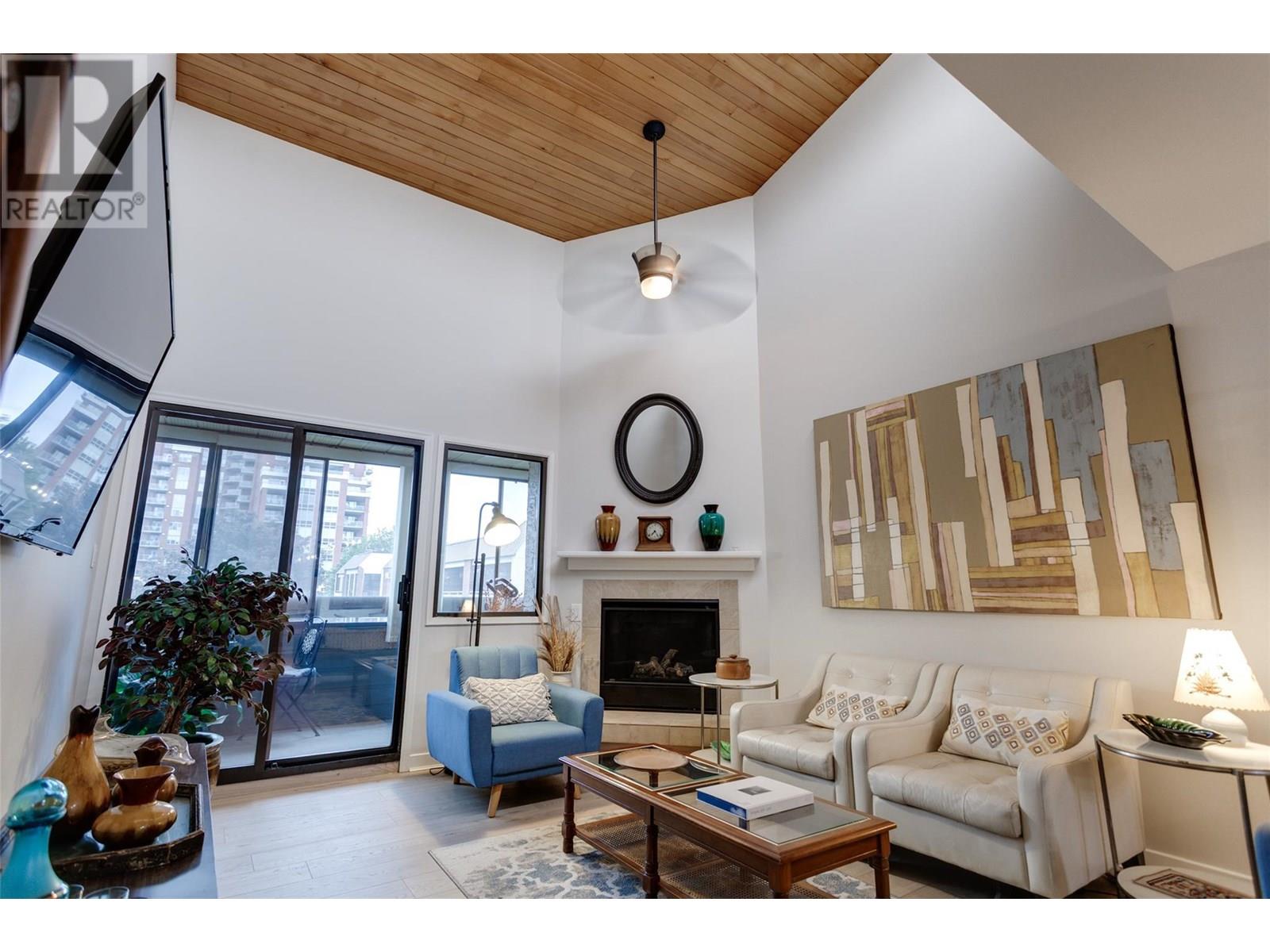 Welcome to 1056 Bernard Avenue – Downtown Kelowna’s Hidden Gem! Discover this beautifully updated top-floor condo in a quiet and well-cared-for 55+ community, just steps from all that downtown Kelowna has to offer. This bright and spacious 2-bedroom, 2-bathroom home features vaulted ceilings, a cozy gas fireplace, and an enclosed balcony with new screens. Recent upgrades include ""smart"" ac unit, new laminate flooring as well as contemporary lighting and plumbing fixtures, giving the home a modern, move-in-ready feel. Enjoy peace of mind and a low-maintenance lifestyle with secure underground parking, private storage, and exceptional amenities: outdoor inground pool, indoor hot tub, indoor sauna, carpenter's workshop, and landscaped and beautifully maintained grounds, all within a friendly and welcoming community atmosphere. The unbeatable central location puts you within easy walking distance of shops, restaurants, breweries, live entertainment, and the sparkling waterfront. Mature trees and a picturesque walk down Bernard Avenue make the journey to downtown a true pleasure. This pet-friendly building allows up to two pets (with size restrictions), making it easy to bring your furry companions along. Don’t miss this rare opportunity to enjoy comfort, convenience, and community all in one exceptional home! (id:62999)