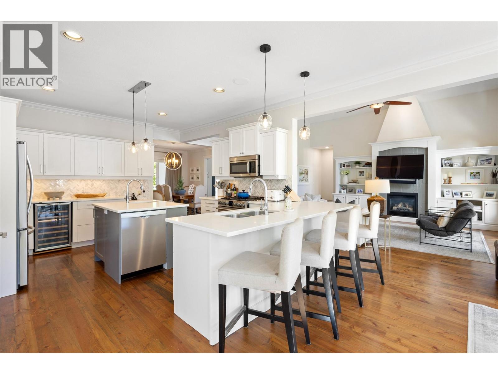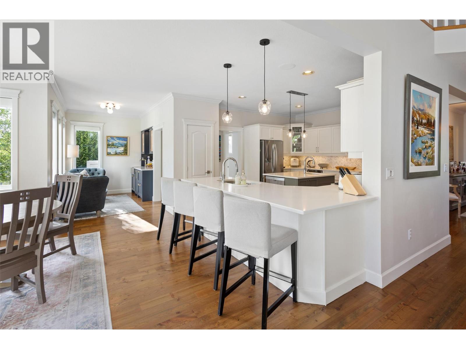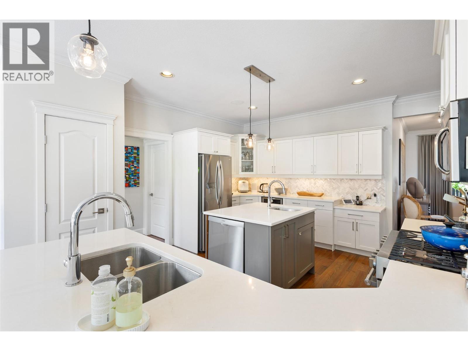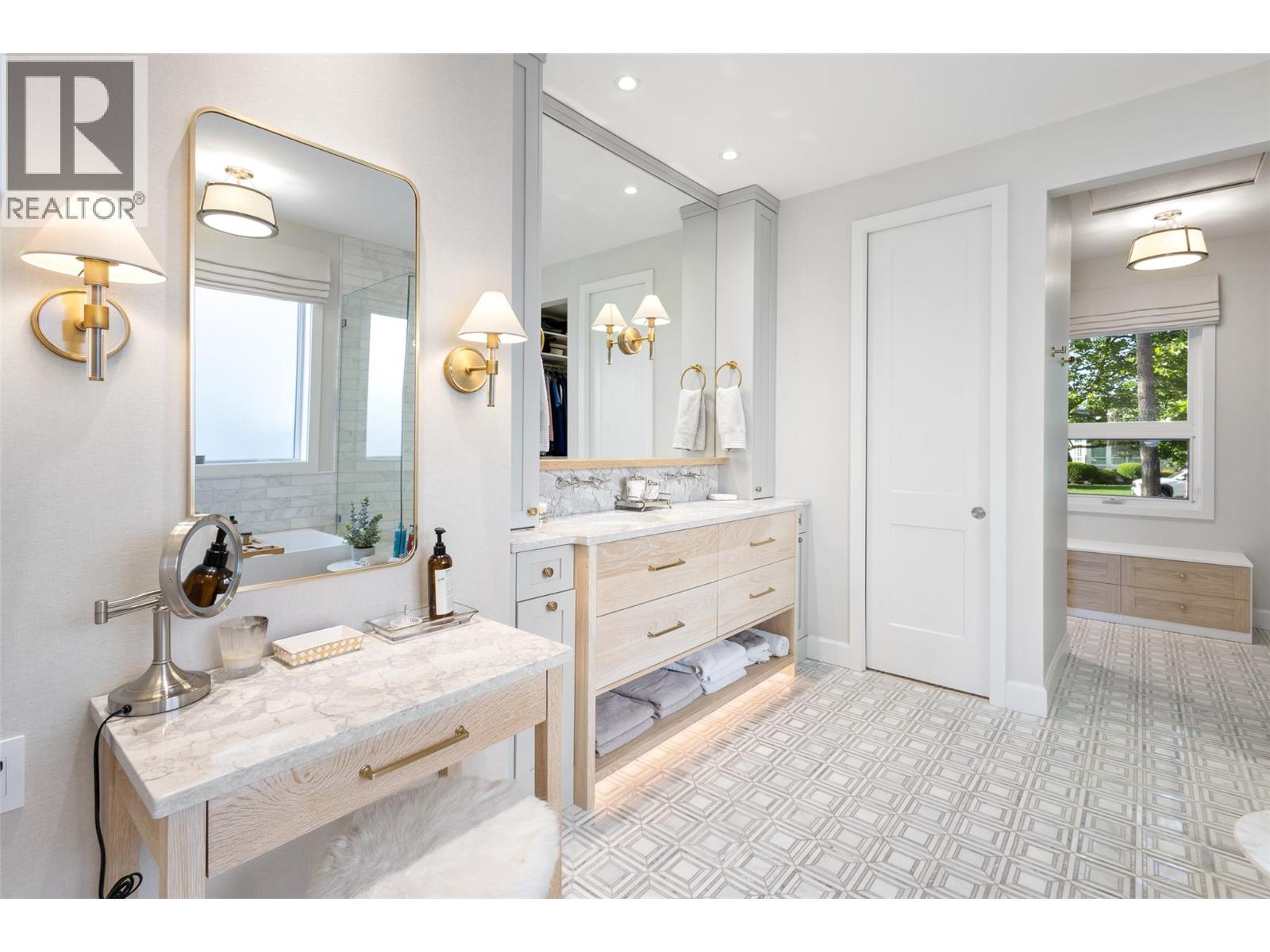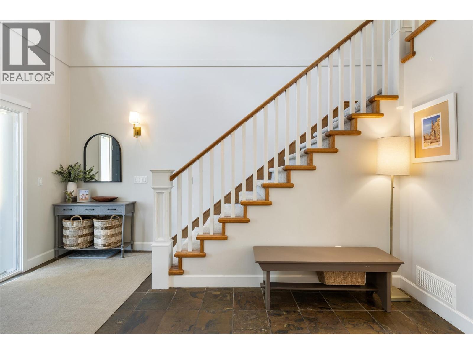 Located in Kelowna’s prestigious Lower Mission, this exceptional 6-bed, 5-bath home offers nearly 5,200 sq. ft. of refined living on a private 0.31-acre lot. Just a short stroll to the lake, beaches, and top-rated schools, the location offers both convenience and a serene lifestyle. Surrounded by mature evergreens and refreshed landscaping, the property blends architectural presence with thoughtful modern upgrades. Recent updates include new flooring, paint, lighting, appliances, and enhancements to the kitchen, laundry, primary suite, and lower level—reflecting pride of ownership and timeless style. The layout suits family living, with a dramatic Great Room featuring 17-foot ceilings, a main-floor primary bedroom suite, four upper bedrooms, and a flexible lower level with a rec room, family room, and a guest room. Potential for an in-law suite with private walkout. Outside, the backyard has been reimagined for relaxation and entertaining—complete with a hot tub, lush gardens, and ample space to unwind. A custom wet bar anchors the main floor, offering a perfect gathering space. The Italian marble-clad ensuite and updated powder room add a touch of luxury while preserving the home's warmth and livability. A rare opportunity to own a beautifully upgraded home in one of Kelowna’s most sought-after neighborhoods. (id:62999)