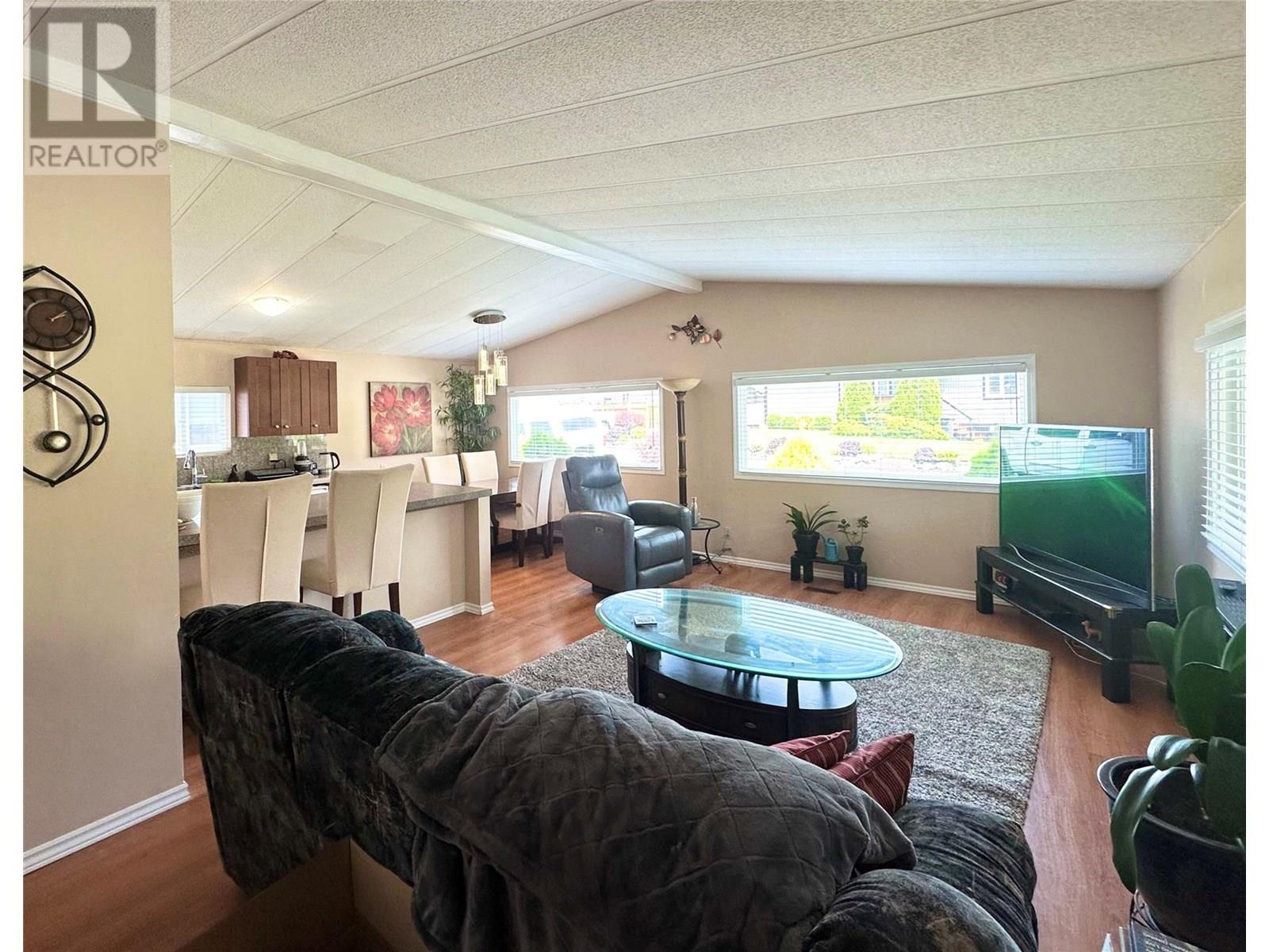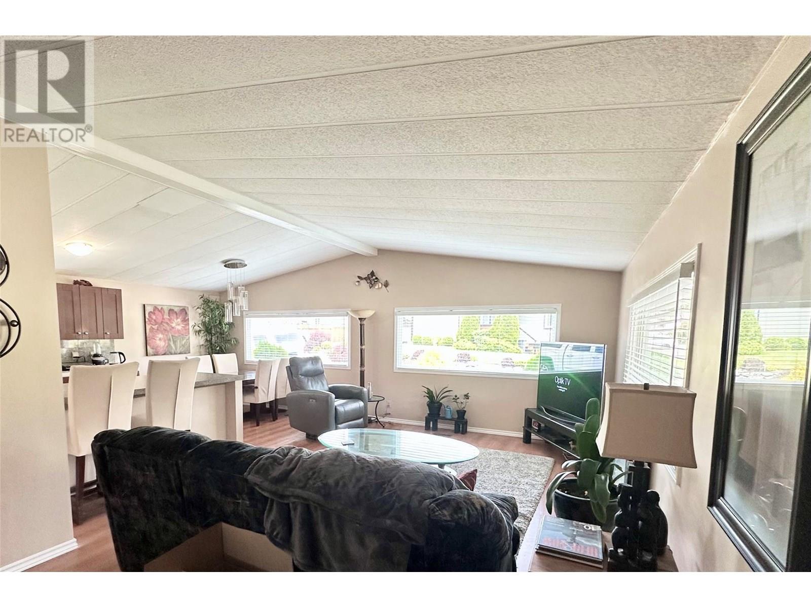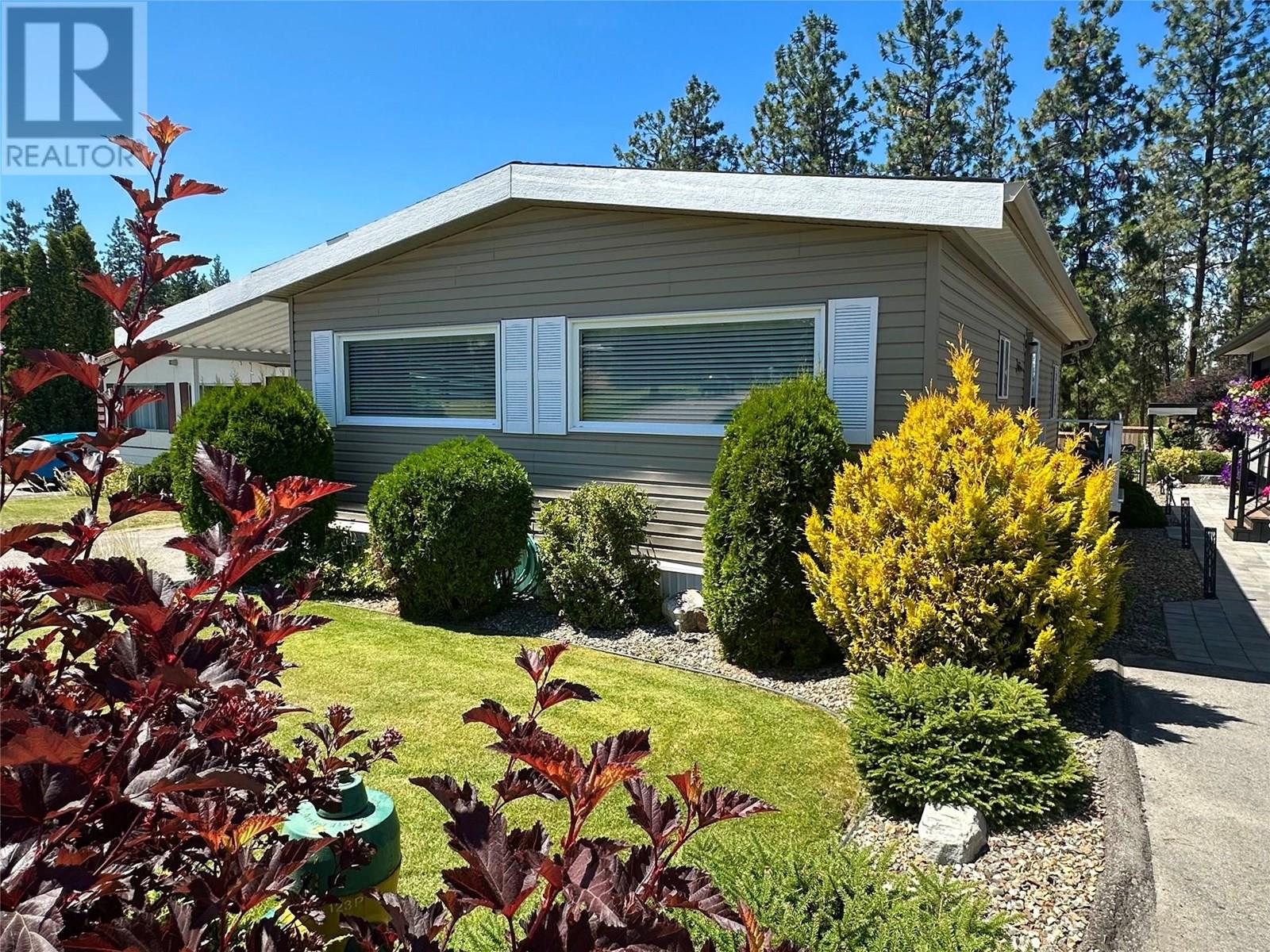 1154 sq ft 2 bedroom + den/sun/bonus room, beautifully updated and meticulously cared for home in a premier 55+ community in prestigious southeast Kelowna. Updates include roof trusses, shingles & gutters, windows, siding, some plumbing, flooring, kitchen, with granite counters massive eat-in (attached) breakfast island, Spacious open floor plan with vaulted ceilings. Incredible bonus with the addition of a large den/sun/bonus room overlooking the beautiful backyard with U/G irrigation, wired shed, lush lawns, and even. a little vegetable garden with raspberries and rhubarb. Private covered porch with room to entertain, and recent addition of a carport. Turn key & ready for care-free living. Quick possession available. Call for a private showing! (id:62999)