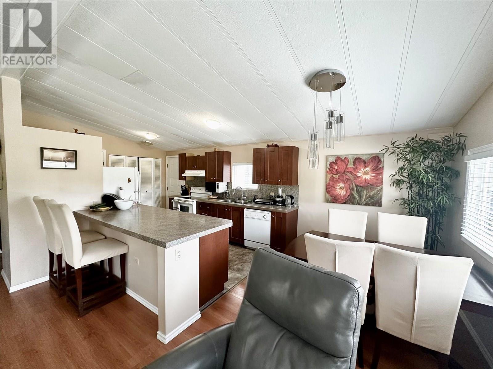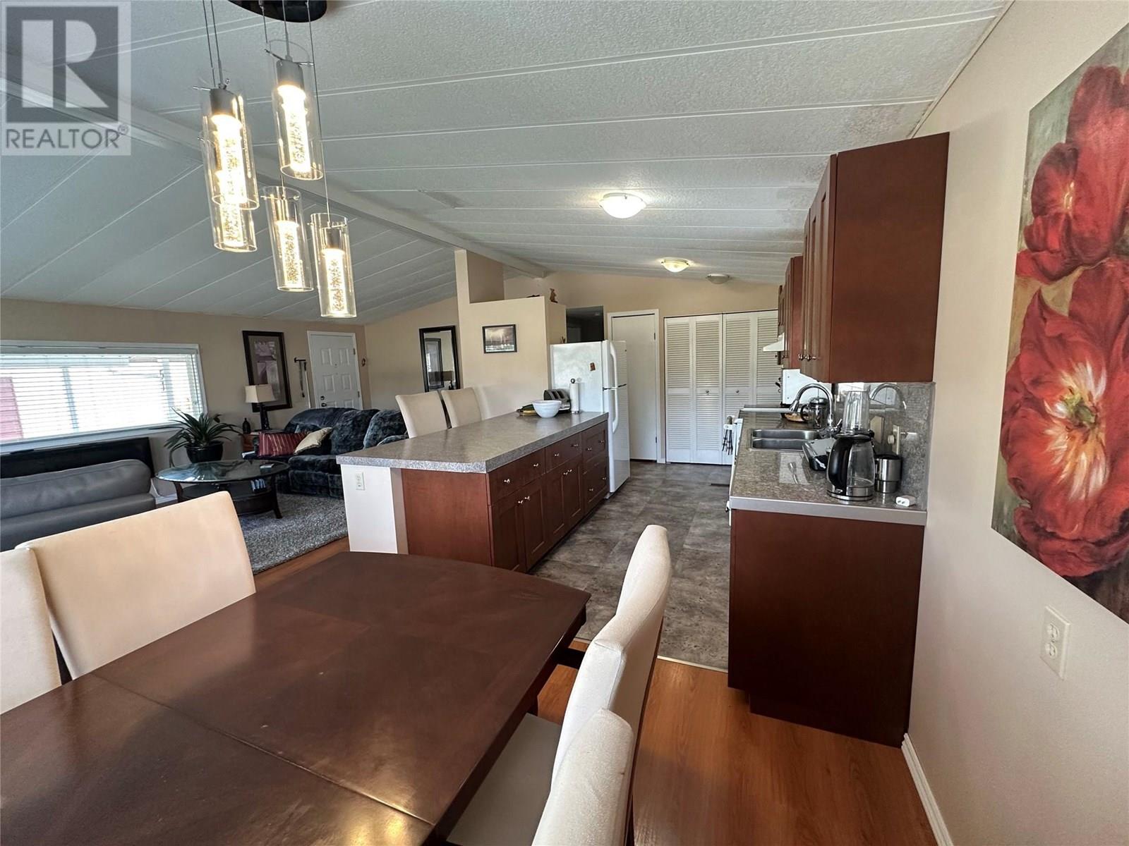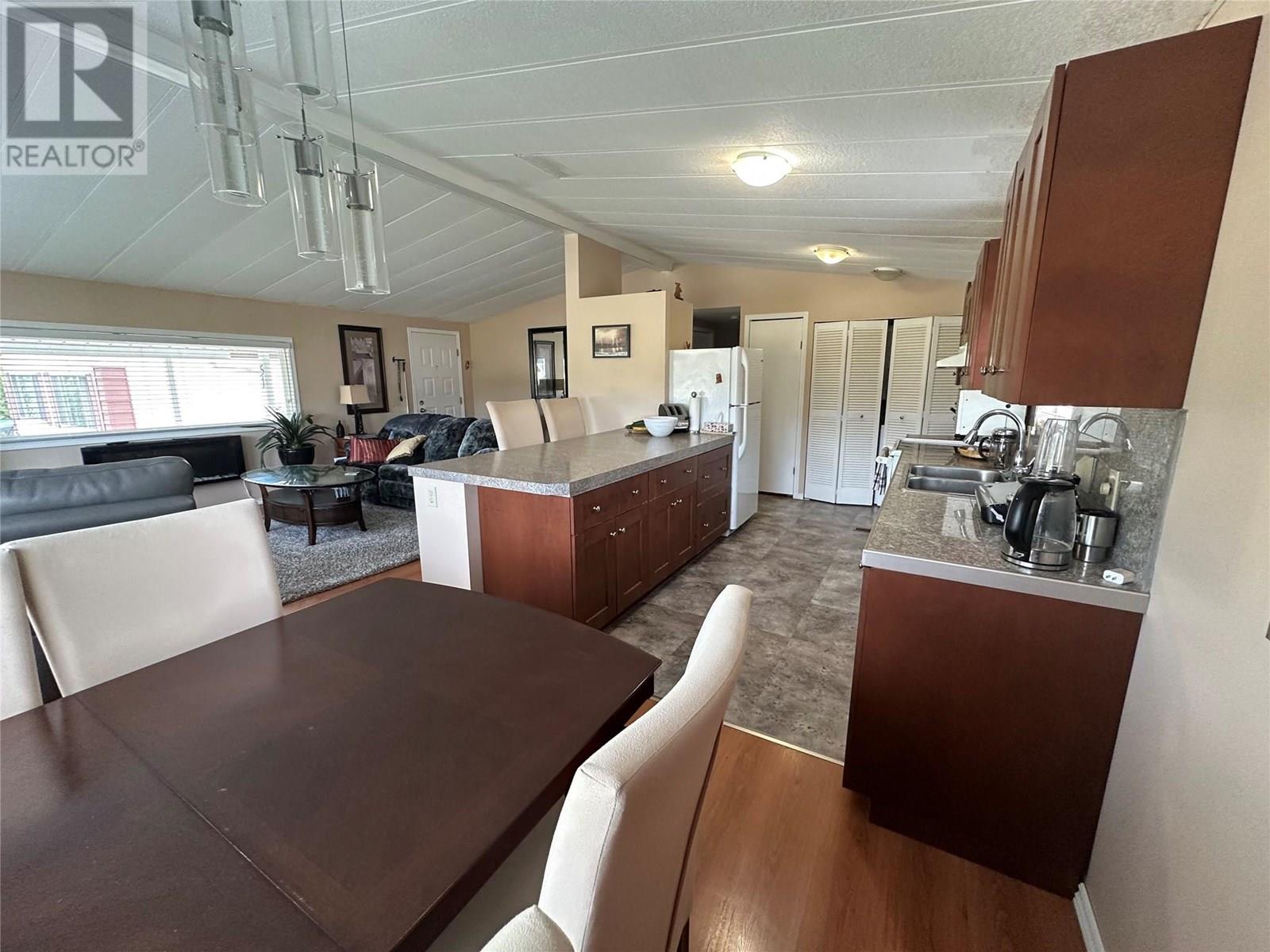 1154 sq ft 2 bedroom + den/sun/bonus room, beautifully updated and meticulously cared for home in a premier 55+ community in prestigious southeast Kelowna. Updates include roof trusses, shingles & gutters, windows, siding, some plumbing, flooring, kitchen, with granite counters massive eat-in (attached) breakfast island, Spacious open floor plan with vaulted ceilings. Incredible bonus with the addition of a large den/sun/bonus room overlooking the beautiful backyard with U/G irrigation, wired shed, lush lawns, and even. a little vegetable garden with raspberries and rhubarb. Private covered porch with room to entertain, and recent addition of a carport. Turn key & ready for care-free living. Quick possession available. Call for a private showing! (id:62999)