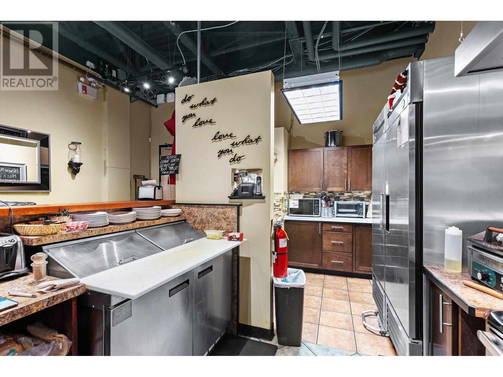 Located in the heart of Lower Mission, this fully built-out 664 sq ft café space is tenanted until 2026—offering immediate rental income with the flexibility to transition into your own office, clinic, wellness studio, or boutique retail concept. Positioned within the South Richter Professional Building, the unit enjoys strong visibility along Richter Street and steady foot traffic from nearby medical and dental offices. With lease rates currently below market value and the newly opened Caban by Cressey bringing elevated foot traffic and luxury clientele to the neighbourhood, this property stands out as a smart commercial real estate investment in one of Kelowna’s fastest-growing hubs. Just a short walk to the beach, Okanagan Lake, and major transit routes, this location blends lifestyle, convenience, and long-term upside. Zoned UC5 – Pandosy Urban Centre, the unit includes two secured parking passes and sits in a high-demand area surrounded by wellness professionals, residential density, and destination retail. Whether you're an investor seeking cash flow or a business owner planning ahead, this is a rare opportunity to secure a prime piece of commercial property in Kelowna's Lower Mission—a neighbourhood known for its walkability, strong demographics, and consistent growth. (id:62999)