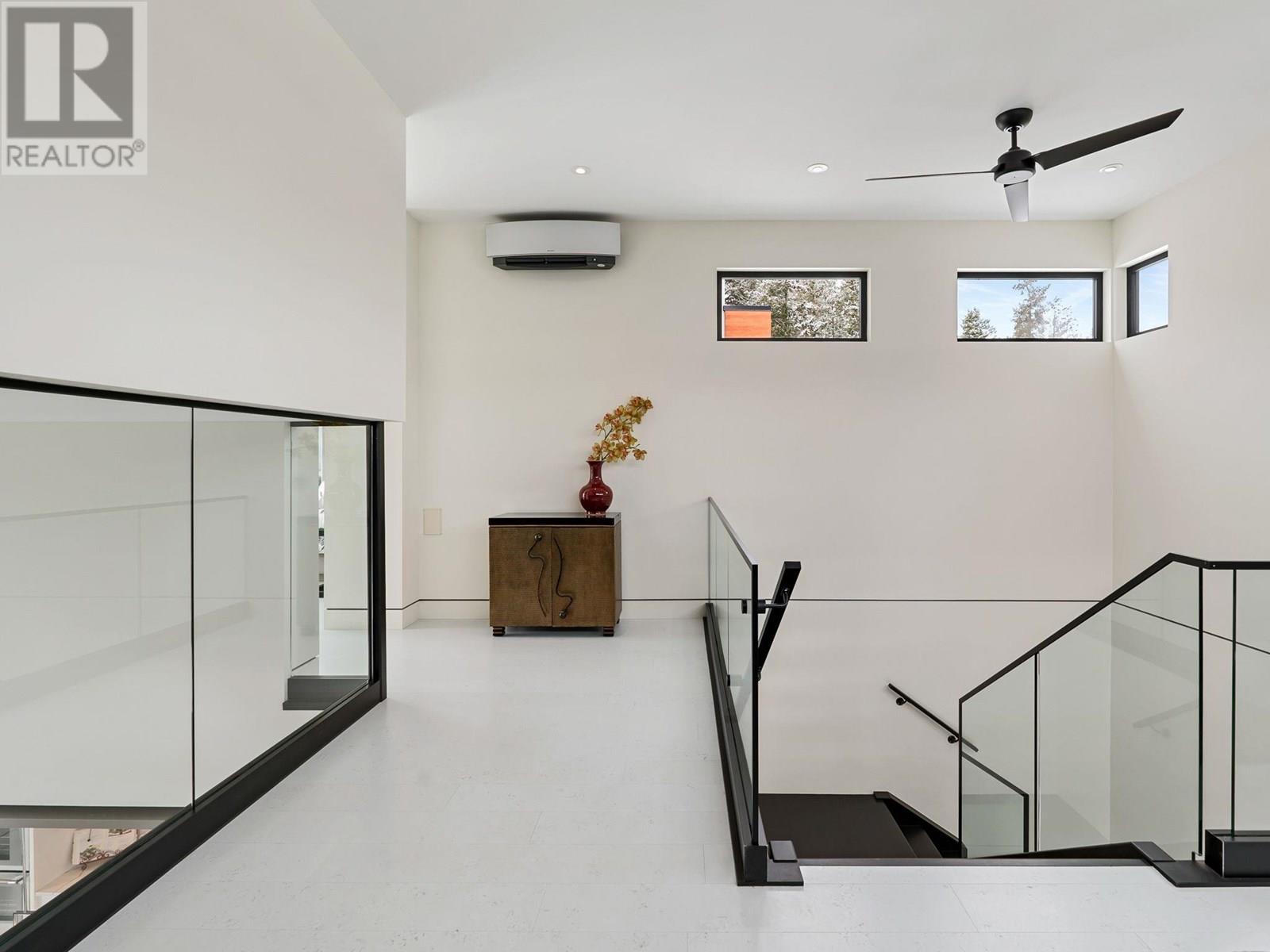 Nestled in the prestigious Highpointe community of Kelowna, this architectural masterpiece redefines modern luxury with views of the city, Okanagan Lake and surrounding mountains. This home is a visual showpiece, with striking geometric lines, floor-to-ceiling windows and meticulous landscaping. The interior boasts an impressive design, double-height ceilings, and seamless negative baseboards that exude elegance. The open-concept living space centers around a stunning linear fireplace, while the gourmet kitchen is a chef’s dream with high-end appliances, a waterfall-edge island, and a butler’s pantry for effortless entertaining. A custom elevator provides convenient access to all levels, and two separate garages accommodate up to 9 vehicles, perfect for car enthusiasts. Each bedroom is a private retreat with designer finishes and spa-like ensuites, including the luxurious primary suite with a walk-in closet and private outdoor access. The professionally landscaped exterior features a dazzling pool, an outdoor kitchen, and multi-tiered terraces, ideal for entertaining or relaxation. SMART home technology ensures convenience, and the property’s location offers both privacy and proximity to downtown Kelowna, world-class wineries, golf courses and recreational trails. This home is a statement of sophistication and lifestyle. Contact Team Simpson Real Estate for your private tour of this extraordinary property. (id:62999)