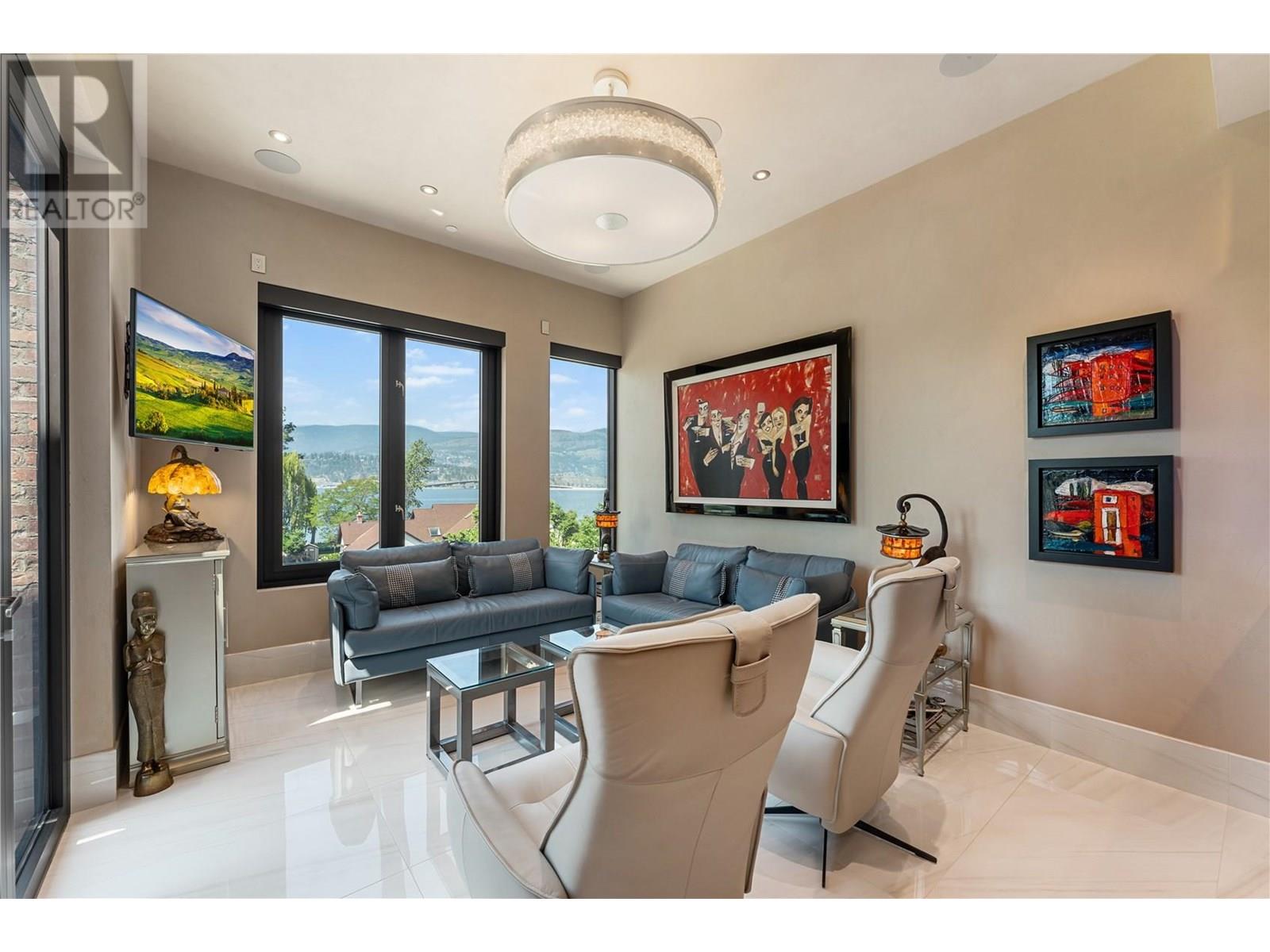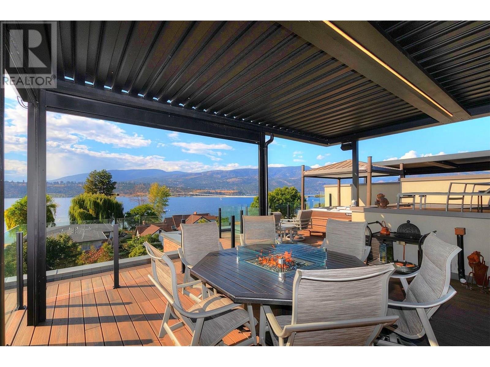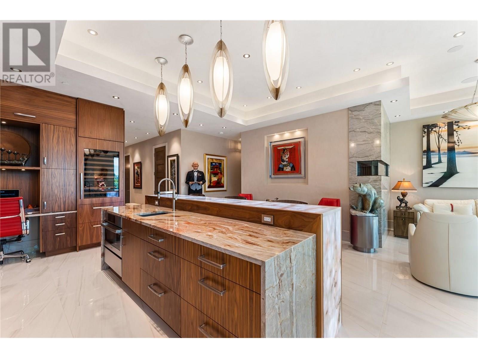 Rare opportunity to own a custom bespoke penthouse along the desirable Abbott Street Corridor. This exquisite and one-of-a-kind home boasts remarkable attention to detail with luxurious finishing touches at every turn that are sure to delight the most discerning buyer. Dynamic View Glass with an IQ has been used throughout which anticipates the sun’s movement and continuously adjusts the tint levels based on glare, heat and daylight. A notable feature is the 2500 sq. ft. of wrap around decks with phenomenal Okanagan Lake views. Take the private elevator to enjoy an entertainer’s rooftop sanctuary featuring a hot tub, tv, automated zoned louvred roof with Phantom screens, a full kitchen center with cabinetry in Trex Transcend, granite counter and a built in 36” Wolf Gas BBQ. Quality is beyond comparison through out this one-of-a-kind penthouse. Conveniently located to nearby sandy beach, parks, a short stroll to nearby restaurants and amenities. (id:62999)